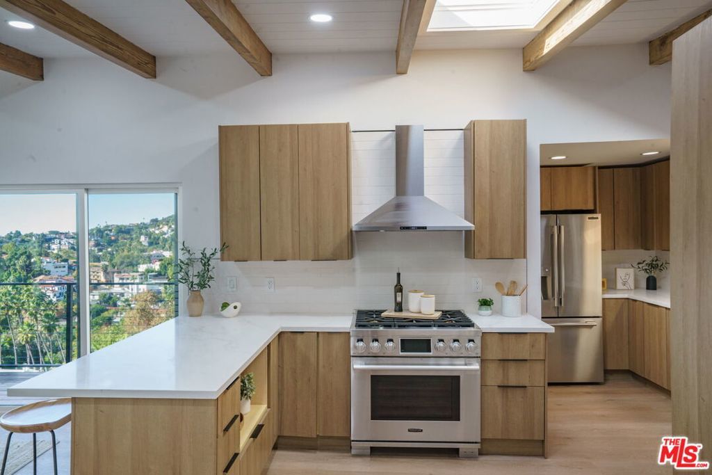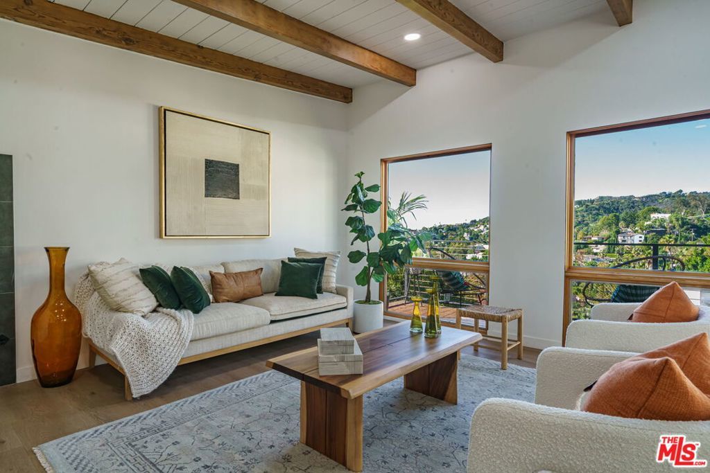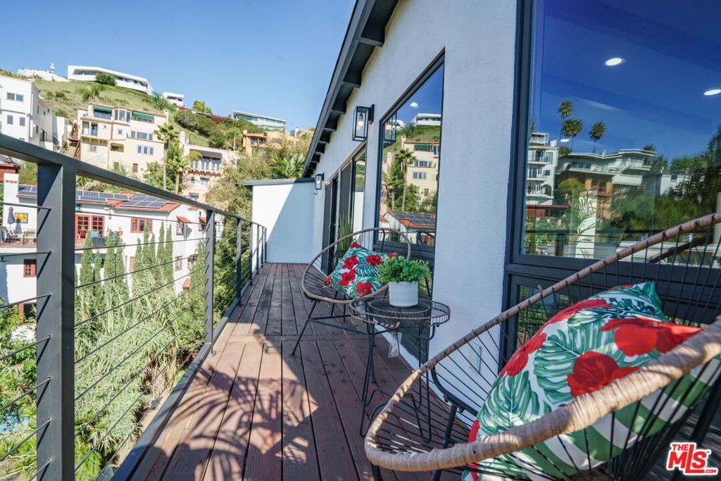 Welcome to 6374 Macal Pl a Hollywood Hills hideaway that feels like you're living on top of LA. Perched on a private street shared with just one other home, this modern-meets-classic retreat delivers completely unobstructed views and four full west-facing exposures for some of the best sunsets in all of Hollywood. Oversized sliders open the main living area to the outdoors, creating that effortless indoor outdoor flow everyone wants in the Hills.The kitchen was designed for people who love to cook and entertain custom wood cabinetry, soft-close throughout, sleek surfaces, and ample storage (with bonus storage below). Gather friends for cocktails at golden hour, host game night, or unwind with a quiet morning coffee in complete hillside silence. Original wood beams, vaulted ceilings, and natural light warm up every space.The primary suite sits privately on its own wing with a spa-like bath and potential for direct access to the lower deck. Custom closets elevate the bedroom for a true his-and-hers (or his-and-his / hers-and-hers) wardrobe setup.Sitting on a rare double-parcel lot, the outdoor possibilities are endless: build your dream deck, expand your entertainment space, set up a hammock or volleyball net, or explore ADU potential buyer to verify. Lush greenery, bright natural light, and panoramic views make this property feel like your own hillside escape.Close to local favorites like Beachwood Caf, The Front Yard, and nearby markets, with iconic hikes such as Runyon Canyon and the Hollywood Reservoir just a few miles away. DTLA sits roughly 8 to 10 miles out, and the nearest beaches are about 18 to 22 miles from your front door the perfect blend of nature, nightlife, and convenience. This is Hollywood Hills living with room to dream, play, entertain, and grow.