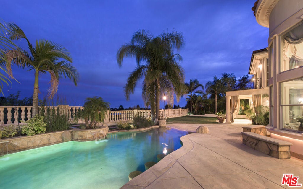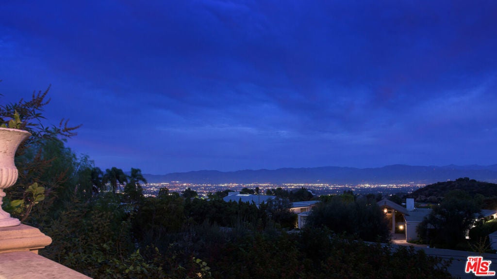 Situated in the coveted Bel Air Skycrest neighborhood, this elegantly modern yet traditional-style home was envisioned for grand-scale living and entertaining. Capturing panoramic city, canyon, and mountain views, the home seamlessly blends indoor and outdoor living, offering the ideal space to host family and friends. Arrive at the home, where the ivy-clad facade and lush landscaping frame the towering, arched front door. Enter into the magnificent formal living and dining room with soaring 30-foot ceilings, an entertainer's bar, regal fireplace, and floor-to-ceiling arched windows and glass doors framing views of the property and mountains beyond. Off the entertaining space is the expansive gourmet chef's kitchen with spacious island, premier Viking appliances and an adjacent family room with fireplace. Glass doors connect the living and entertaining spaces to the extraordinary backyard retreat, where tall palms and mature trees hold court over the swimming pool, heated spa, built-in BBQ kitchen and lawn. Expansive terraces and a covered loggia offer ample space for lounging, dining and entertaining amidst the far-reaching views. Completing the first floor is a plush media room with a wet bar and an office that may serve as an additional bedroom or staff quarters. The stairs ascend to the sweeping terraced hallway, which overlooks the living room below. At one end are three bedrooms, each with ensuite baths and walk-in closets, and on the other, the stunning primary suite boasting a wet bar with fridge, soaring ceilings, marble fireplace, a soaking tub and private balcony with fantastic views. Featuring a two-car garage and plenty of additional parking, the home offers a quiet, tranquil setting in a central location close to the Westside and L.A.'s best private schools, including Curtis, Buckley, Mirman and Milken. With convenient nearby access to the 405, the home is minutes from Brentwood, Beverly Hills, Santa Monica and the Valley.