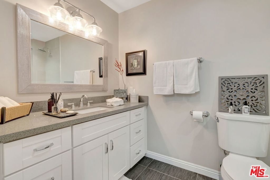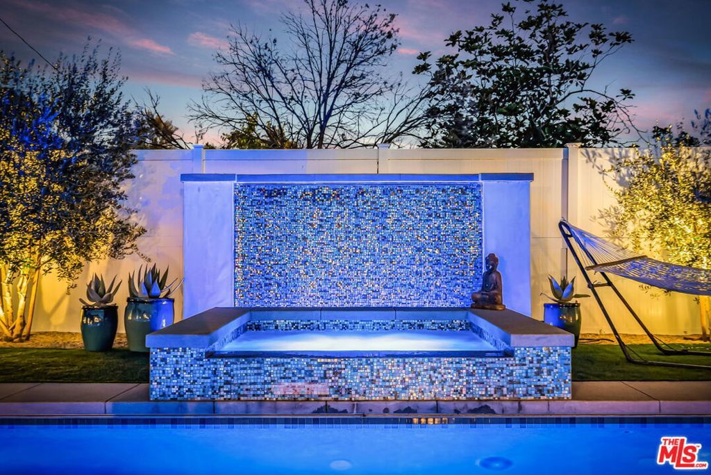 **Available for the first time this summer**Experience upscale living in this beautifully remodeled Toluca Woods estate. The rare six-bedroom, four-bathroom layout blends modern comfort with thoughtful design throughout. A bright open floor plan creates seamless flow between the living spaces and the completely redesigned kitchen, featuring custom quartz countertops, soft-close cabinetry, stainless-steel appliances, and refined finishes that are both functional and visually striking. Soft natural light fills the home, enhancing the airy atmosphere and highlighting the hand-carved engineered hardwood floors. French doors open wide to embrace the coveted California indoor-outdoor lifestyle. The flexible layout includes two bedrooms on the main level and four upstairs, ideal for families or those seeking versatile space. Privately positioned on the opposite side of the main floor is the spacious primary suite, complete with a large walk-in closet, a dual-vanity bathroom with water closet, and a charming flex area perfect for reading, relaxing, or unwinding at the end of the day. French doors from the primary bedroom open directly to the backyard, creating a seamless connection between the private suite and the outdoor retreat. A second downstairs bedroom currently used as an office offers additional flexibility as a guest room, nursery, workout space, or creative studio. The grounds of the property have been completely reimagined. A circular driveway, lush landscaping, and meticulous care by the homeowners elevate the home's curb appeal to a true storybook setting. Also custom redesigned, the stunning backyard brings together the best elements of a private oasis and a secluded retreat. Resort-style details include a sparkling heated pool with a Baja shelf, in-water loungers, and an umbrellaperfect for cooling off on warm days. A tranquil water-feature wall provides a serene backdrop, while manicured landscaping and clean-lined stepping paths reinforce the home's modern aesthetic. Mature olive, apple, and lemon trees add charm and character to the yard, creating a garden-like setting that enhances the property's relaxed California feel. The covered outdoor pavilion extends the living space with a comfortable lounge area, overhead lighting, and built-in heaters for year-round enjoyment. At its center, a fully equipped outdoor kitchen and barbecue island make hosting effortless, while a massive 100-inch flat-screen TV with surround sound transforms the pavilion into the ultimate outdoor entertainment spaceperfect for movie nights, game days, or gathering with friends and family. Surrounded by privacy fencing and lush greenery, the backyard offers a peaceful and stylish setting for entertaining, dining, or simply enjoying the quiet privacy of the space. Some photos digitally enhanced.