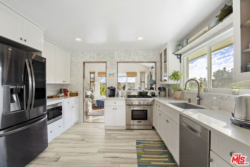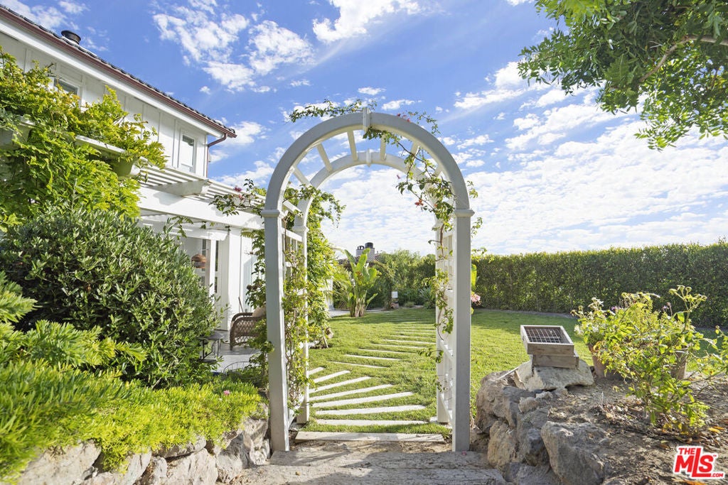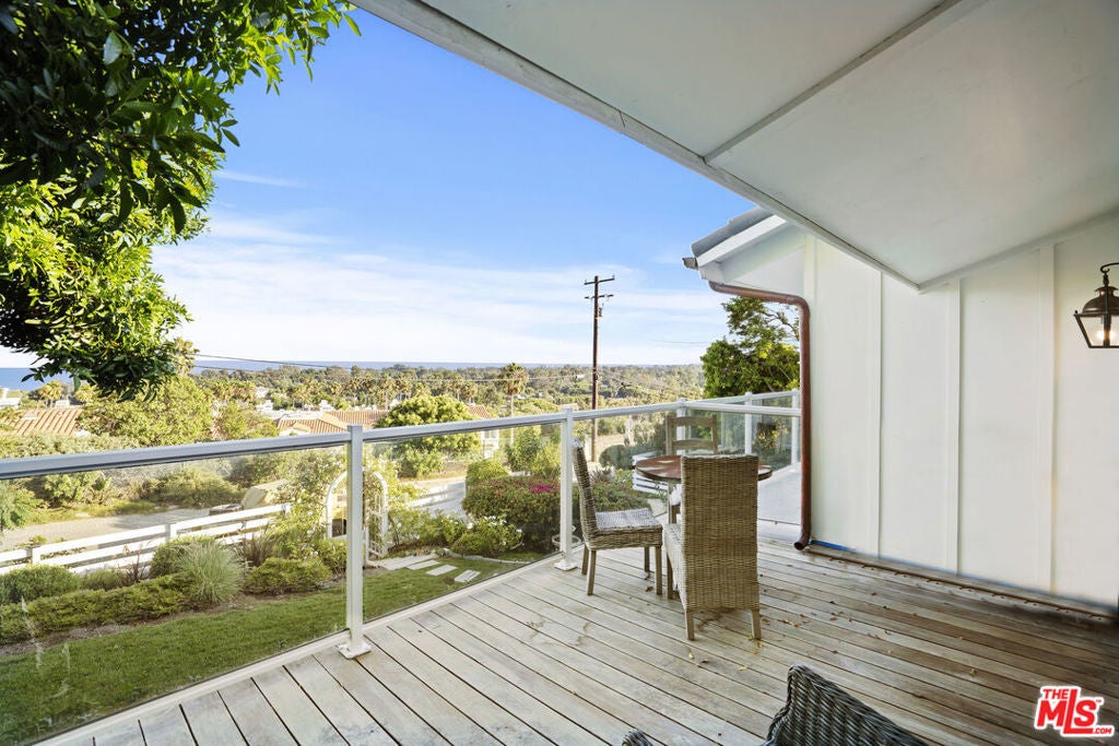 Quiet, coastal living in Malibu adjacent to Point Dume! This renovated farmhouse offers sweeping ocean, Queen's Necklace, Catalina, and mountain views among lush gardens and multiple areas to unwind, recharge, and entertain. Situated on nearly 3/4 of an acre, peace and privacy abound just moments from beaches, markets, restaurants, schools, and more. Inside, the home has been furnished to perfection. A large living room features a covered patio with huge ocean views and gently flows into a den and the kitchen, which boasts stainless steel appliances, a dining area, and access to the backyard. The primary suite offers ocean views, access to an outdoor deck, and an en-suite bathroom with dual vanities, a shower, and a soaking tub. There is a second ocean-view guest bedroom and full bathroom on the second floor. On the ground level, there is a third bedroom with an en-suite bathroom and outdoor access, a study, a garage with a laundry area, and a media room with accordion doors seamlessly connecting you to an expanisve backyard with canyon views. The grounds have been meticulously maintained and feature beautiful blooming flowers, mature trees and hedges, a fence enclosing most of the property, and several peaceful outdoor spaces for lounging, dining, and enjoying all that Malibu has to offer.