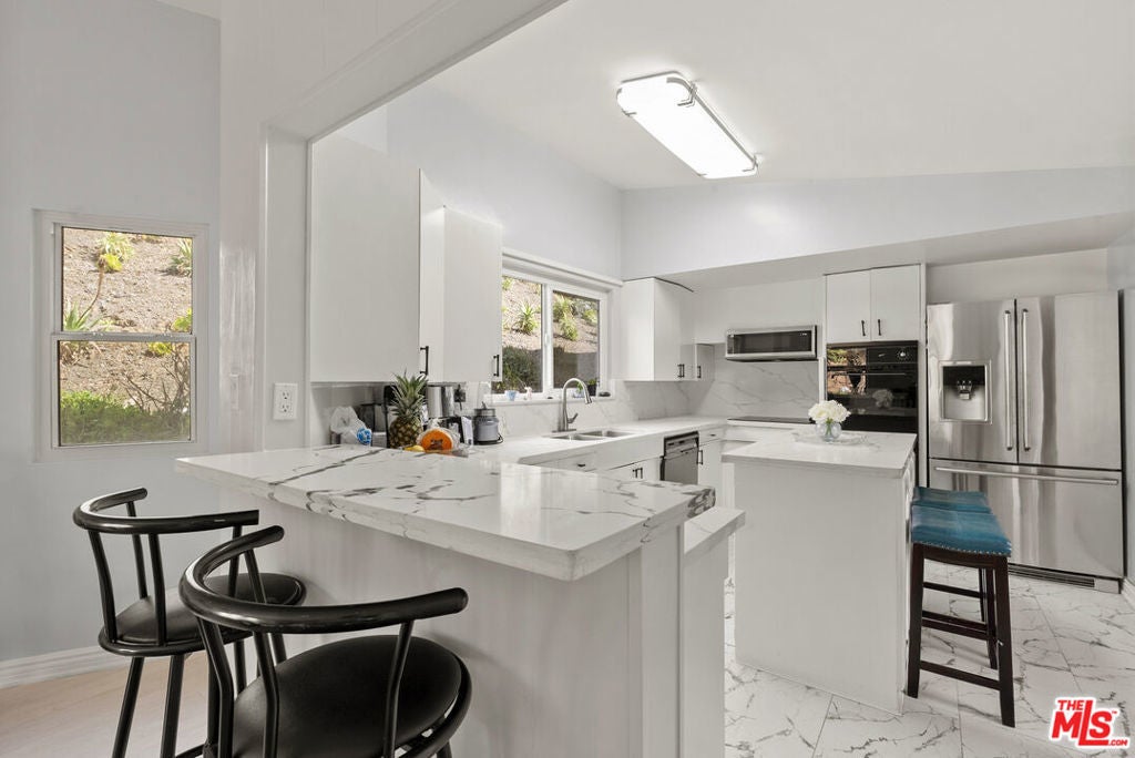 Experience panoramic views at 11807 Bel Ter! Step into a light-filled haven with soaring ceilings and an open, welcoming den, perfect for modern living with a touch of 1970s nostalgia. Unwind in the sunroom, with breathtaking Los Angeles scenery and the iconic Getty Museum creating a stunning backdrop. The updated kitchen, featuring sleek white granite countertops, seamlessly blends style and functionality. Upstairs, find three spacious bedrooms and two full bathrooms, offering comfort and privacy. This unique property is located in a cul-de-sac, with an expansive hillside backyard, ripe for a flourishing garden. The home also includes a convenient attached two-car garage. 11807 Bel Ter, in close proximity to the prestigious Bel Air neighborhoods, offers an idyllic blend of tranquility and proximity to Los Angeles's finest amenities. The surrounding area is characterized by lush, rolling hills and stunning architectural homes, providing a serene and exclusive atmosphere. Residents enjoy easy access to world-class cultural attractions like the world renowned Getty Center, offering incredible views and famed art collections. Nearby, the vibrant dining and shopping scenes of Beverly Hills and Westwood are just a short drive away, providing an array of upscale boutiques and gourmet restaurants. Outdoor enthusiasts can explore the nearby hiking trails in the Santa Monica Mountains, while the convenient location allows for easy access to major freeways, connecting residents to the greater Los Angeles area. The combination of privacy, luxury, and accessibility make this a highly desirable location.