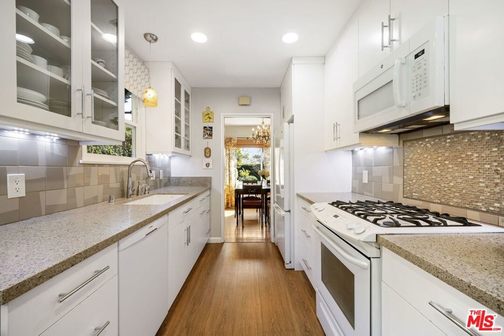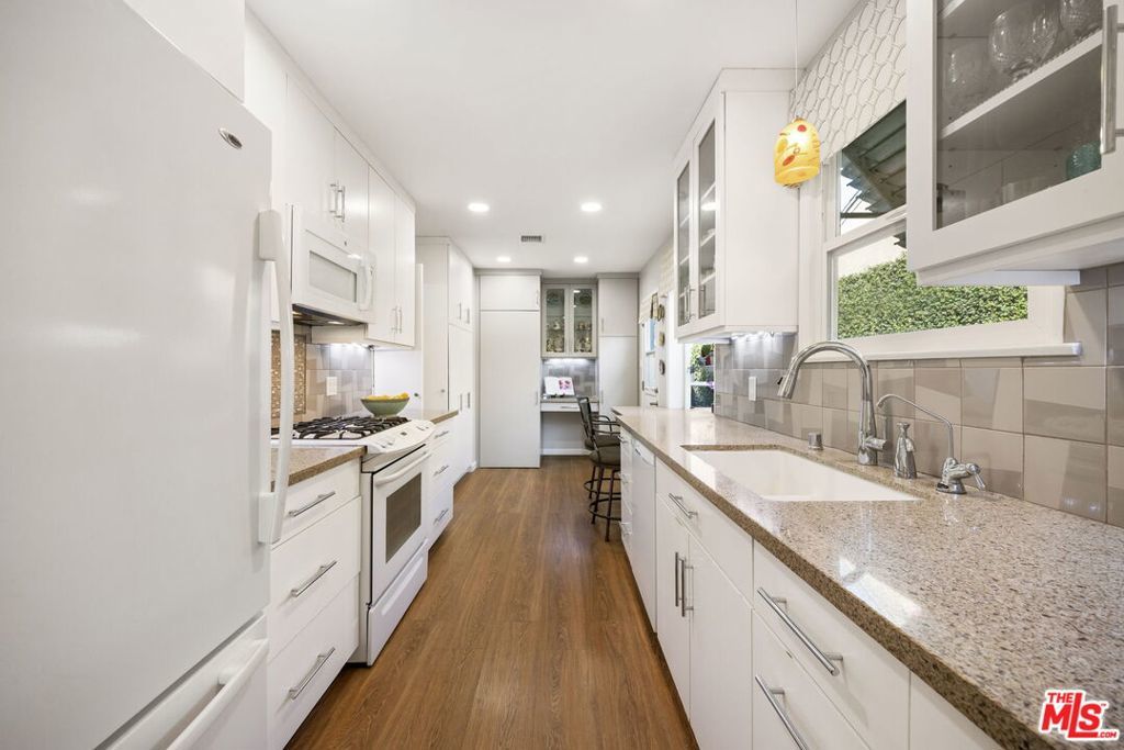 Located on one of the most picturesque blocks in Lake Balboa, this lovingly maintained home has been cared for and thoughtfully updated by the same owner for an incredible 66 years. From the moment you arrive, the charming curb appeal sets the tone, highlighted by a convenient wrap-around driveway and beautifully kept landscaping. Inside, the home offers three bedrooms, including an en-suite, and two bathrooms. The living, family, and dining areas feel open and connected while still offering distinct spaces for entertaining, sharing a meal, or simply relaxing at home. The updated kitchen features granite countertops, generous cabinet and pantry space, and a charming seating area set beneath a large garden window. A built-in desk nook provides the perfect spot for a small home office or homework station, while the washer and dryer are neatly tucked away in their own cabinet for added convenience. The bedrooms retain their original character and are filled with soft natural light, adding to the home's welcoming feel. Step outside and you'll discover a backyard with true wow factor. Extra-tall hedges provide exceptional privacy, while the beautifully maintained landscaping and hardscaping create a serene outdoor setting filled with mature flowers, foliage, and abundant citrus trees. All of this is just moments from the natural beauty of Lake Balboa Park, multiple golf courses, the Japanese Garden, Sepulveda Basin Off-Leash Dog Park, and the Encino Farmers Market, with convenient access to the 101 and 405 freewaysmaking this a truly special place to call home.