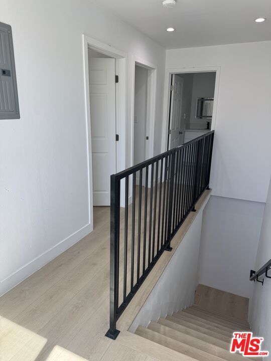 Brand-new two-story residence in the heart of Leimert Park. This modern home offers approximately 1,000 sq ft of bright living space with high ceilings, recessed lighting, and laminate wood flooring throughout. Features include a kitchen with stainless steel appliances (refrigerator, stove/oven, microwave hood), Carrera marble bathroom, central air and heat, in-unit washer and dryer, and ample closet space. Solar panels help reduce electricity costs. Located in a secure building with surveillance cameras and coded entry. Be the first to live in this newly built home.