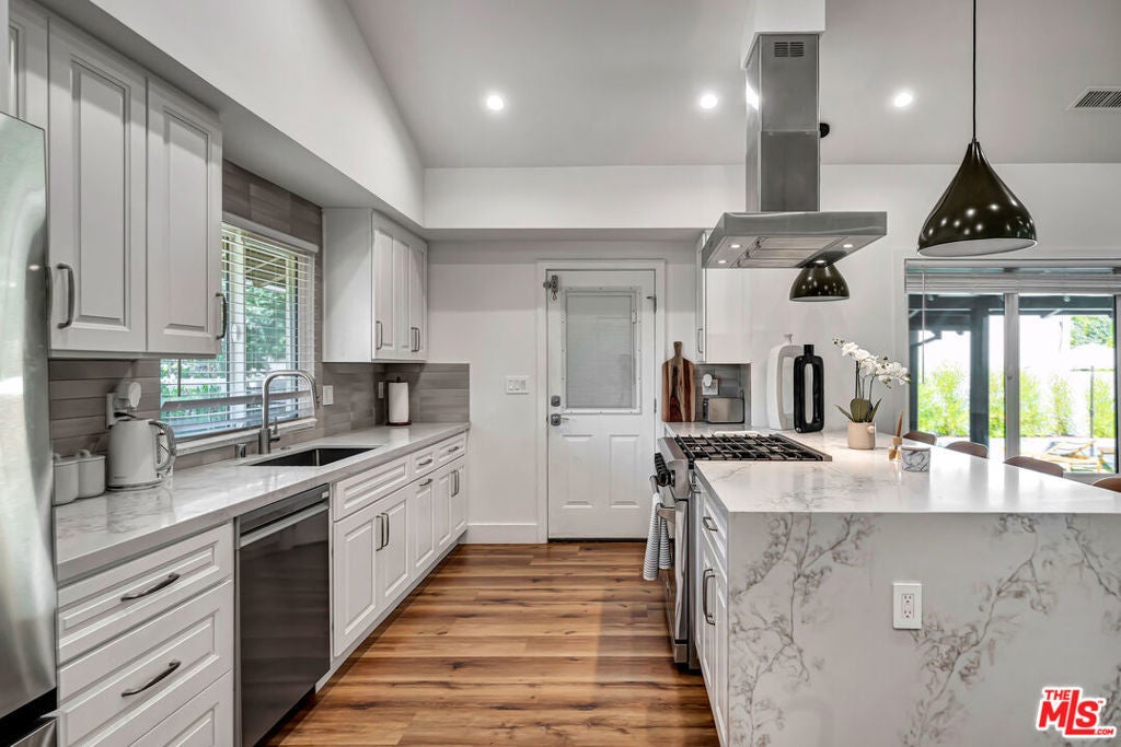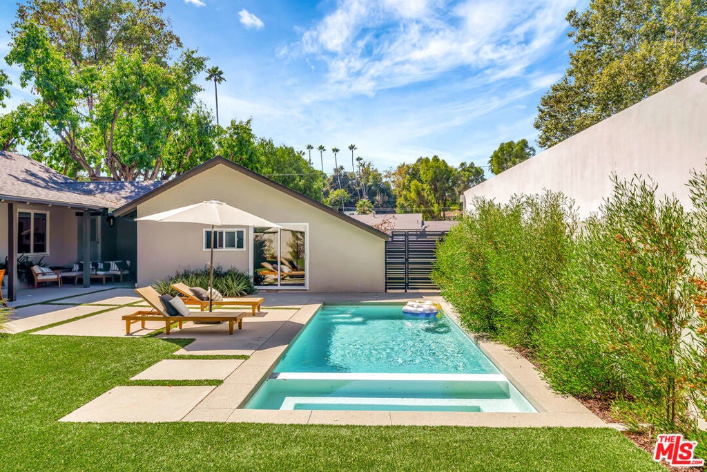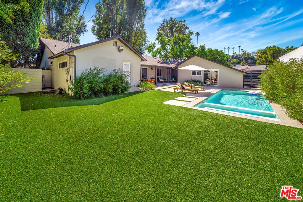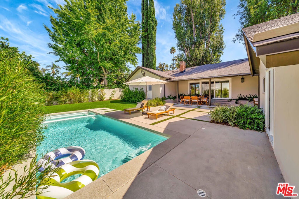 Fully remodeled contemporary 4BD/4.5BA home located south of the boulevard on the Woodland Hills/Tarzana border. This bright and spacious property features an open layout, a chef's kitchen with modern appliances and a large island, and a comfortable living room with a large flat-screen TV. The primary suite includes a king bed and private en-suite bathroom with a walk-in shower. Additional bedrooms feature queen beds and ample space. Enjoy a 10,000 sq. ft. private backyard with a modern pool, hot tub, and lush landscaping perfect for relaxing or entertaining. The home also includes an oversized detached two-car garage and all appliances, including washer and dryer. Prime walkable location near shops, restaurants, and everyday conveniences.