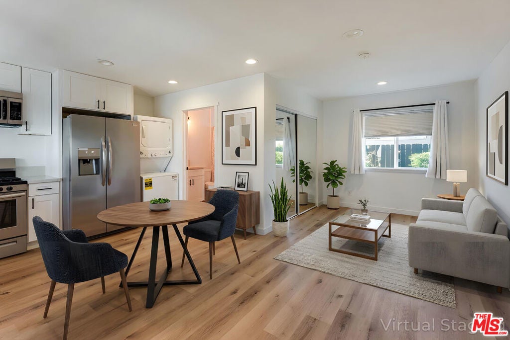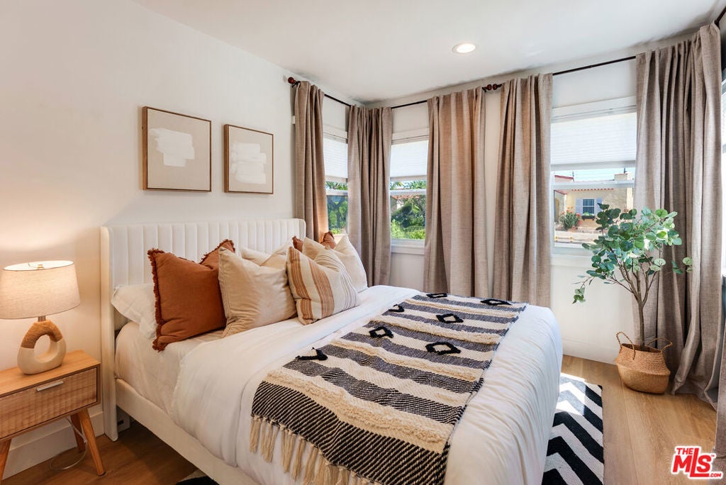 Picfair Village stunner! Rare opportunity to buy a fully remodeled home and detached ADU - ideal for supplemental rental income, a guest residence, or a private office. Centrally located, the property offers convenient access to some of Los Angeles' most popular destinations, including The Grove, Culver City, restaurants, and cafes along Pico Boulevard. The main residence features three bedrooms and two bathrooms, designed with a bright, open layout that seamlessly connects the living, dining, and kitchen areas. The contemporary kitchen is appointed with quartz countertops, custom cabinetry, and a stainless steel appliance suite, creating a functional and elegant space for everyday living and entertaining. Large windows bring in natural light, enhancing the home's clean, modern aesthetic. The primary suite offers a peaceful retreat with a spacious en-suite bath featuring a dual-sink quartz vanity and a designer-tiled walk-in shower. Luxury vinyl plank flooring runs throughout the home, adding durability and warmth, while recent upgrades, including a newer roof and updated systems, provide added comfort and peace of mind. At the rear of the property, a large, modern patio and grassy backyard with a detached ADU with its' own private entrance and featuring a full kitchen with quartz counters, stainless steel appliances, and a full bathroom. Whether used as a guest house, rental unit, or creative studio, it offers exceptional flexibility and value. Set on a charming tree-lined street, with an expanded 2-car driveway, and just minutes from major Westside destinations, this move-in-ready property presents a rare opportunity to enjoy modern living with income potential in one of central Los Angeles' most convenient locations.