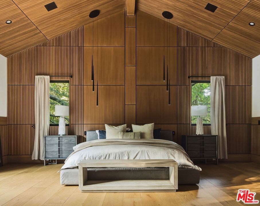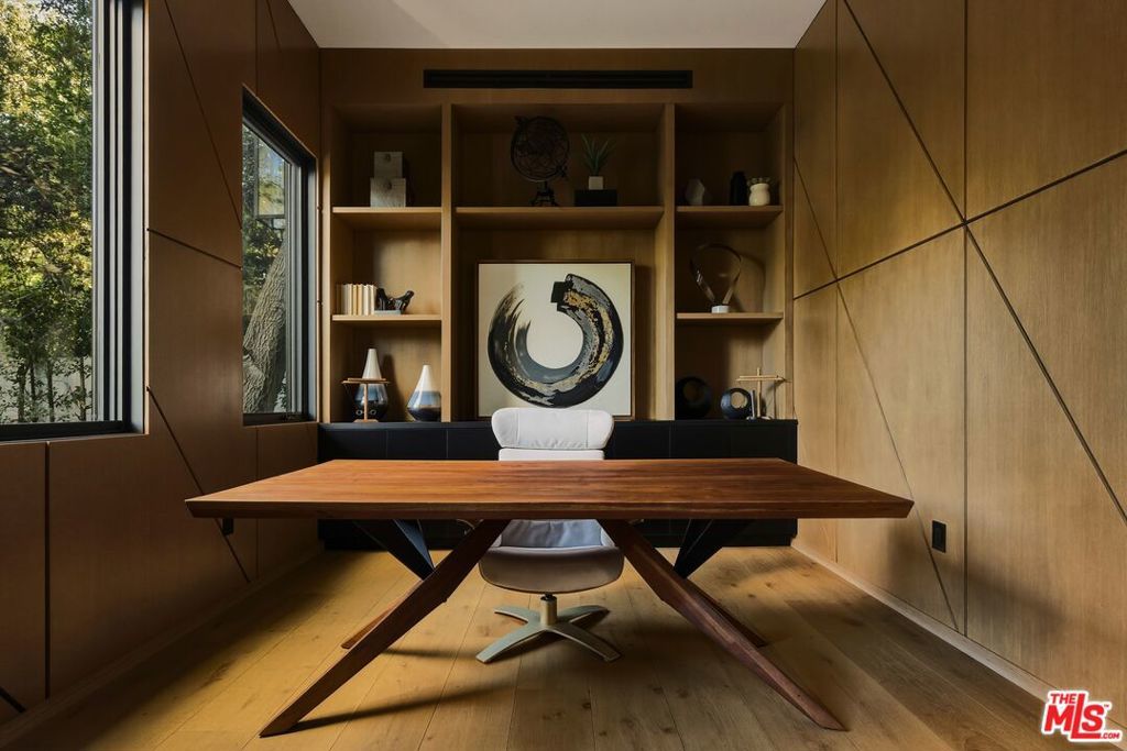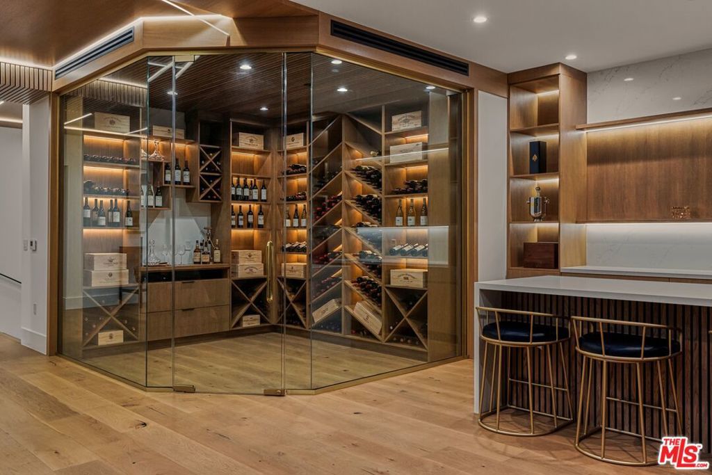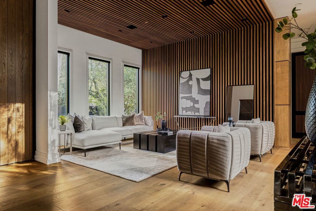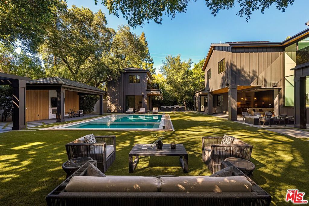 A rare architectural estate in Encino's coveted Royal Estates, where modern design meets natural serenity. Privately gated on a half-acre corner lot, this newer construction residence is enveloped by mature oaks and cypress, creating a secluded sanctuary. A dramatic 20-foot pivot door reveals a grand open-concept interior with soaring ceilings, expansive glass walls, and seamless indoor-outdoor flow. The chef's kitchen is a statement of form and function, featuring Miele appliances, custom oak cabinetry, and dual islands for elevated entertaining. The three-level residence includes a world-class primary suite with fireplace, dual couture closets, and dual spa-inspired baths. The lower level offers a private lifestyle retreat with a screening theater, temperature-controlled wine cellar, wellness center with indoor/outdoor spa, and additional ensuite suites. Outdoor living rivals a five-star resort, with a zero-edge pool and spa, curated entertaining terraces, pavilion, pool house, and a striking two-story guest house designed with the same quality craftsmanship as the main residence. Enhanced by a high-tech security system and manicured grounds, this estate delivers privacy, prestige, and presence. A statement property for the most discerning buyer. Shown to qualified buyers only.