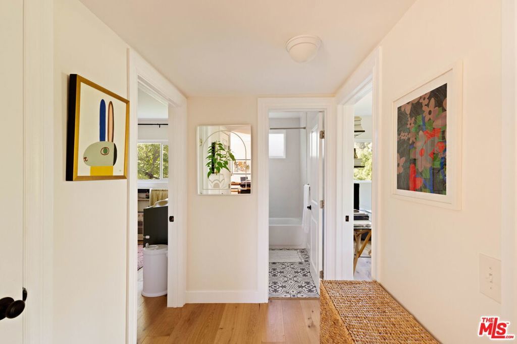 Perched amidst the treetops of Mount Washington, this tastefully remodeled mid-century offers a rare blend of privacy, light, and sweeping canyon views. A gated entrance opens to 2 levels of outdoor decking; ideal for al fresco dining, barbecuing, or reading in the sun. French doors open into the living room and create a seamless flow between the public rooms and outdoor spaces. The open floor plan draws air and light between the kitchen, living and dining rooms - keeping it cool and lit all day. The bedrooms and kitchen open to a deck where the greenbelt sits before you - inviting morning coffee above the trees or sunset evenings overlooking the canyon. Featuring three bedrooms and two bathrooms, and oriented for ideal indoor-outdoor living, the space blends thoughtful modern updates with the relaxed charm of a classic, mid-century bungalow. Removed from the din of the city, but only minutes from the vibrancy of Highland Park, Eagle Rock, and the best of the East Side. Walk to Carlin G Smith Rec. Center, Seaview Ave/Bob Schofield Park, Moon Canyon and Heidelberg Park. Located in the coveted Mt. Washington School district, the home captures the essence of NELA living - serenity that's effortlessly connected to the city.