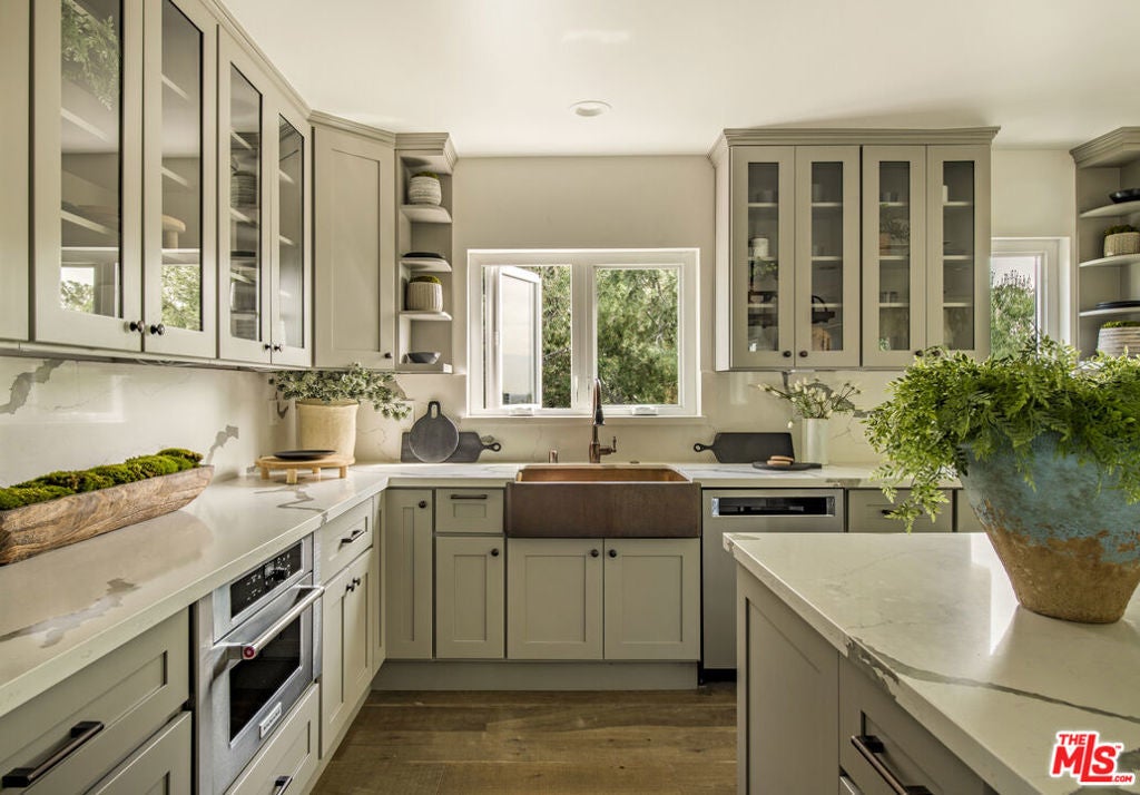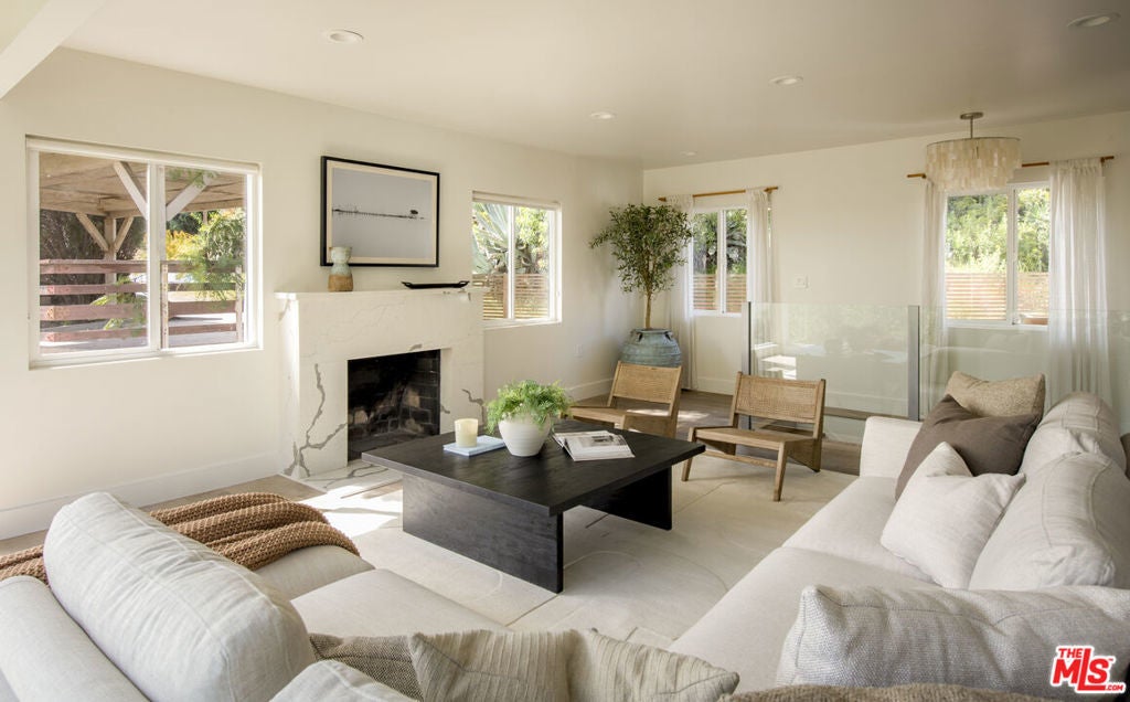 Perched in the lush section of the Hollywood Hills, this thoughtfully reimagined bungalow pairs timeless character with refined modern living. Expansive picture windows frame a tranquil, park-like canyon setting, filling the home with natural light and a quiet sense of privacy. Warm wood floors and a restrained contemporary palette create an atmosphere of sophistication. The thoughtfully designed kitchen features ample custom cabinetry, stone countertops, and premium stainless appliances. The primary suite serves as a peaceful retreat with a spa-inspired bath and serene private patio. The second bedroom also is equipped with its own living room/Den and a secluded outdoor patio, perfect for morning coffee and meditation. A versatile bonus room offers flexibility as a home office, creative studio, or potential third bedroom. The backyard terrace functions as a venue for entertaining guests or enjoying relaxed family barbecues beneath the trees. Just moments from the Hollywood Reservoir, The Hollywood Bowl, and incredible hiking and horseback riding trails, this residence delivers the rare balance of vibrant city access and the serenity of hillside living. (Two year lease is preferred. 13-Month Minimum.)