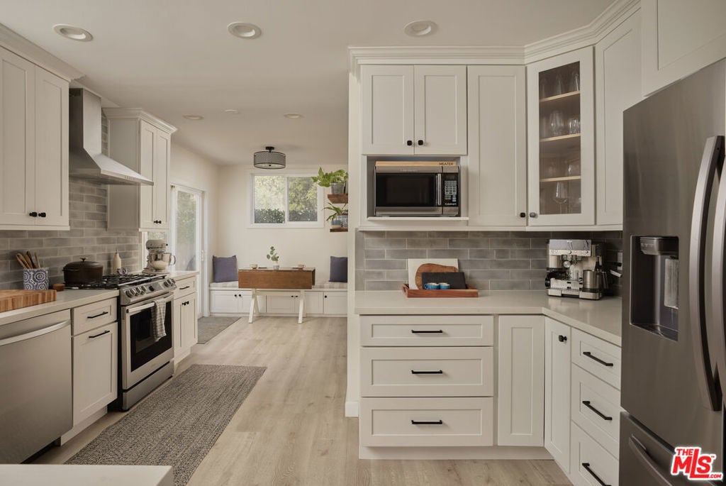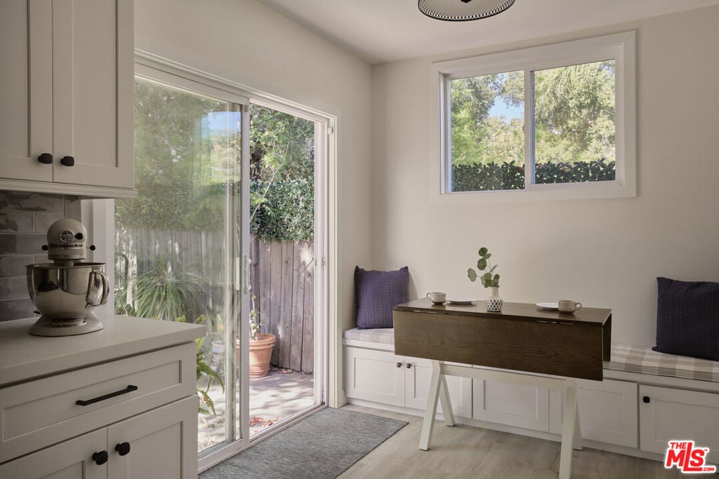 Situated just south of the Duarte Recreation Trail, 821 Miltonwood Ave is the turnkey gem you've been holding out for. Originally built in 1949, this warm and welcoming Traditional boasts refinished original hardwood floors and an intuitive layout that makes the most of its space. The kitchen has been fully remodeled into a chef and entertainer's dream, with plenty of quartz counter space, tons of storage, custom cabinets with soft-close hinges, and an adorable built-in breakfast nook that gives you a view of the peaceful backyard. The primary bath has also been fully redone with dual sinks, a generous glass shower, and marble tile. The primary suite is bathed in natural light and offers direct access to the back patio via glass French doors. The second bathroom, a sweet vintage pink and green throwback, services the home's two additional bedrooms. Among its many upgrades, the home has a new roof (2022,) a new water heater, and plumbing and electrical updates. 821 Miltonwood Ave is a place for nature lovers (or those aspiring to be.) You can spend time enjoying the expansive and verdant flat back yard, head out the door to the recreation trail whenever the mood strikes, or simply bask in the awe-inspiring backdrop of the San Gabriel mountains. This tranquil home is nearby City of Hope and convenient for commuters given its easy access to the 210, 605, and Metro Gold Line.