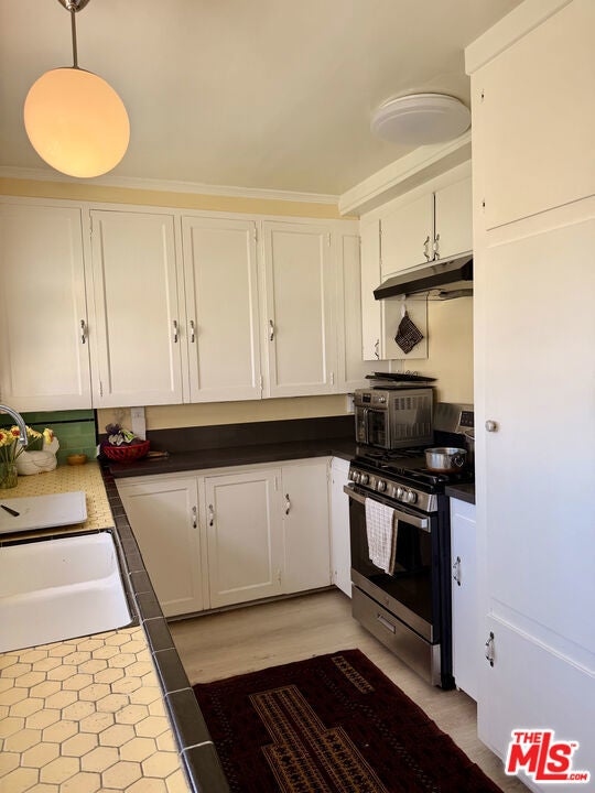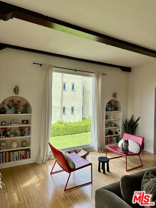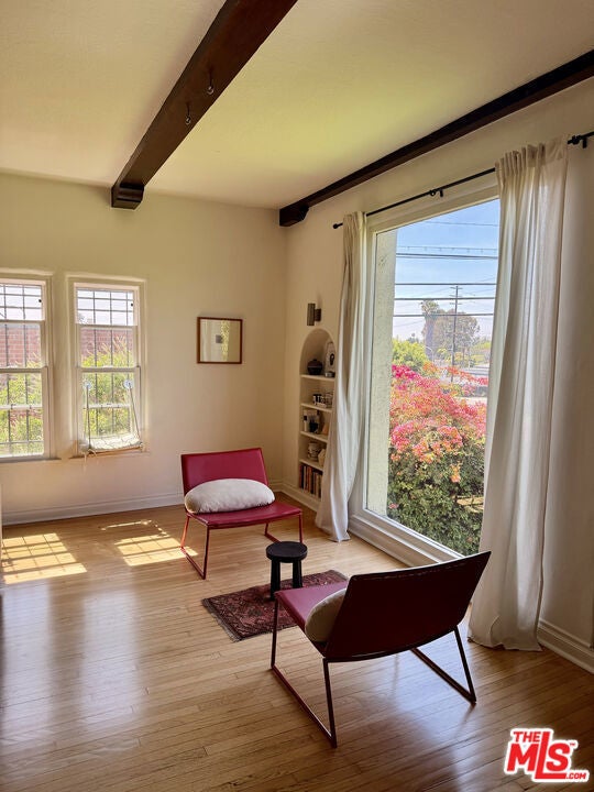 Charming upstairs unit in a Spanish fourplex in the heart of the very happening Miracle Mile. Loads of natural light fill this beautiful apartment with breathtaking views. Large living room has built in shelving and coat closet and extra dinning room/family room. Hardwood floors have been refinished throughout the unit, with this super large 2 bedrooms and 1 bath unit around 1,300 square feet have newly installed wood floor. Newly updated Kitchen with complete new stove/oven, granite counter top and dishwasher. Bathroom has been refinished vintage cast iron tub. Parking is tandem in driveway.