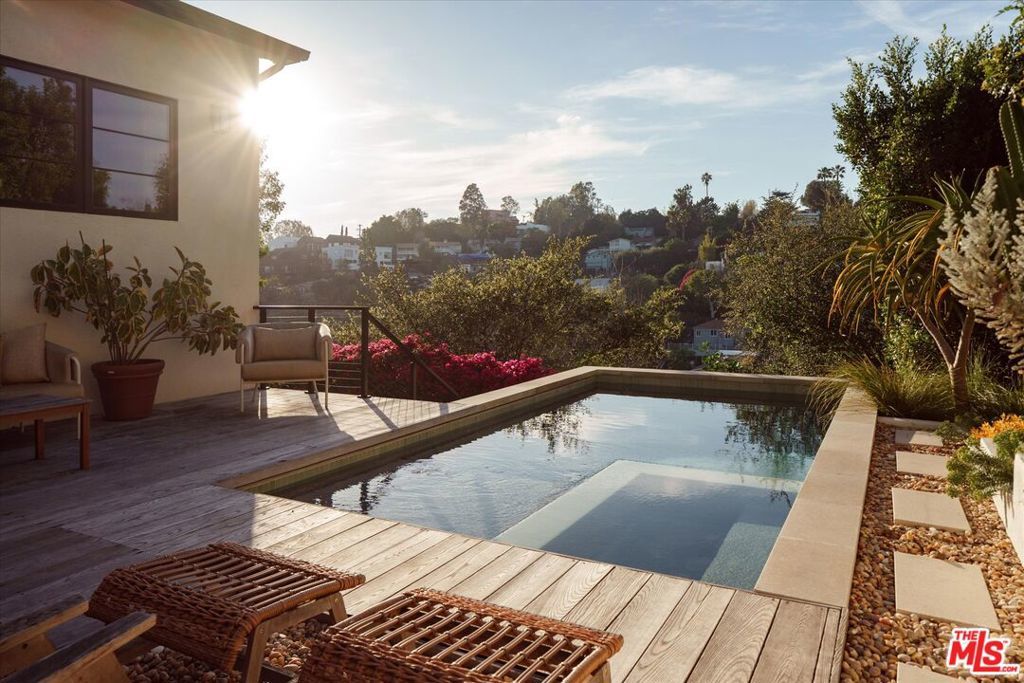 The hills of Echo Park's Elysian Heights hold many hidden treasures, and this is one of the finest. Completely rebuilt and modernized in recent years by thoughtful owners with an extensive addition, permitted ADU, and new pool, this is the true total package. Perched above the street with a treehouse-like setting and sweeping views, this 2,700 sq ft residence checks all the boxes. The main house offers approximately 1,900 square feet of light-filled living space, high ceilings, expansive windows, and an open floor plan that creates effortless indoor-outdoor flow ideal for both everyday living and entertaining. It features three bedrooms and two bathrooms, including a serene primary suite with a walk-in closet and luxurious en-suite bath. The outdoor spaces are equally compelling. A sparkling pool, expansive decks, and beautifully landscaped grounds provide multiple areas for relaxing, dining, and hosting against a backdrop of hillside views and exceptional privacy. Adding remarkable versatility to the property is a separate 702 sq ft permitted ADU with its own address, complete with one bedroom, one bathroom, and a full kitchen perfect for guests, rental income, or a work-from-home retreat. An additional 120 sq ft bonus room and separate garage offer further storage and flexible use space. Ideally located in the heart of Echo Park just moments from amazing shops such as Canyon Coffee, Lady Byrd, Valerie, Bacetti Trattoria, and more, this is a rare opportunity to own a one-of-a-kind property, on one of the best streets, in one of LA's most desirable neighborhoods.