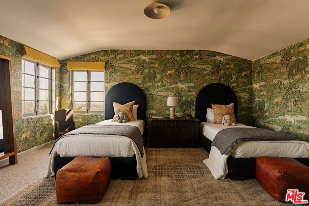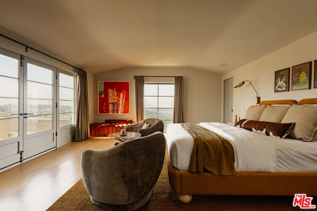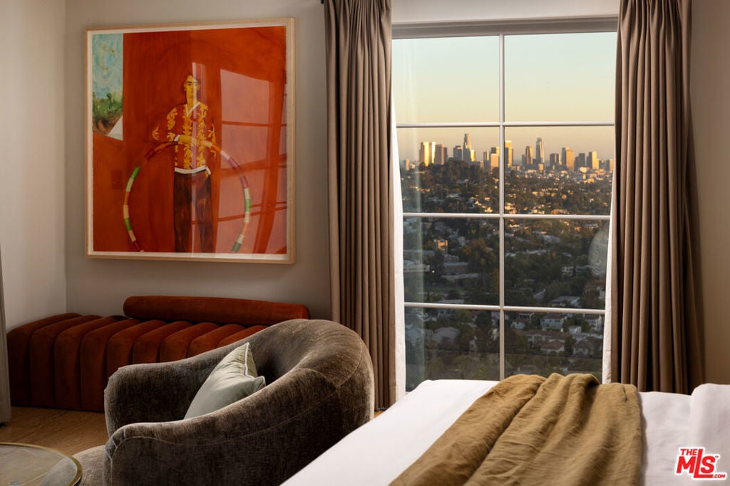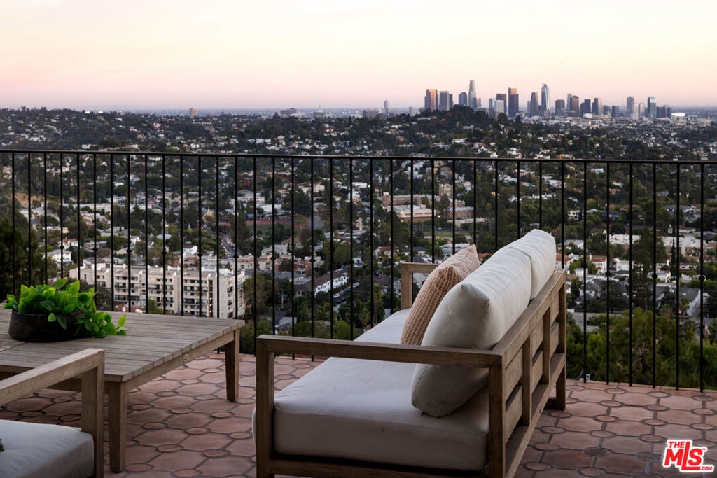 Perched in the hills of Los Feliz on a quiet cul-de-sac, Casa Vista is a reimagined 1928 Spanish Colonial that seamlessly fuses timeless architecture with sophisticated modern design and panoramic city views. A private compound situated behind solid gates - the home was rebuilt from the studs with all-new systems, high-end finishes, and meticulous attention to detail. Casa Vista exudes the romance of Old Hollywood with the ease of contemporary living. A formal entry opens to the main level, where a 13-foot ceiling living room with rebuilt fireplace and arched windows perfectly frame a view of downtown LA. The kitchen was completely redesigned during the renovation and features marble slab countertops with integrated sinks, custom European oak cabinetry, a 60" Wolf range, dual Miele dishwashers, a wine fridge, and a hidden coffee station. Upstairs, the primary suite captures sweeping skyline views and features a pitched ceiling, spa-inspired bath with a concrete soaking tub framed by an arched window, and generous custom closets. Additional bedrooms showcase Moroccan Zellij tilework, bespoke hardware, and thoughtfully designed finishes that pay homage to Hollywood's golden age of architecture. A central courtyard frames the residence with a newly rebuilt zero-edge pool and Baja shelf, surrounded by multiple terraces designed for lounging and dining. Outdoor amenities include a built-in BBQ, gas firepit, and lush landscaping with mature olive trees, Canary Island palms, and terracotta planters. The side garden features a tranquil fountain, while curated lighting and ficus hedging create privacy and ambiance throughout. Blending historic charm with modern elegance, this residence captures the very essence of California living. With its timeless architecture, private setting, and sweeping city-to-ocean vistas, this Los Feliz masterpiece offers a rare balance of architectural integrity and effortless sophistication - crafted for those who appreciate design, history, and the art of living beautifully.
