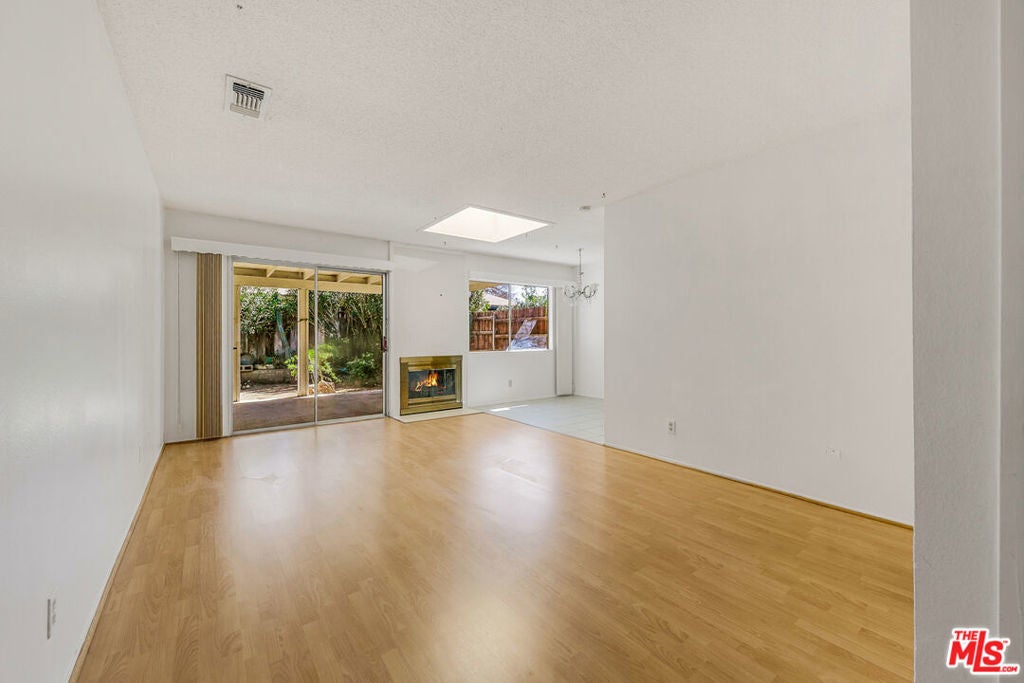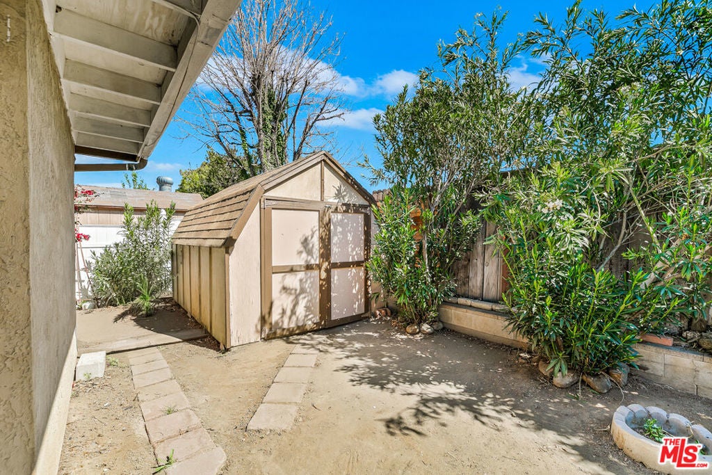 Welcome to this charming single-story home located in the peaceful and well-maintained Valle Hermosa 55+ community in West Hemet. This inviting residence offers 2 bedrooms, 2 bathrooms, and approximately 820 square feet of comfortable and functional living space. Both bedrooms are generously sized with carpet flooring. The primary en-suite bedroom features a walk-in shower and a sliding glass door that provides direct access to the backyard. A full bathroom is conveniently located next to the second bedroom, making it ideal for guests. The comfortable living room features a cozy fireplace, creating a warm and inviting space to relax or entertain. The home also includes an oversized attached one-car garage with ample storage space. The garage shares a common wall with the neighboring property, which is typical in this community, and the driveway provides additional parking for a second vehicle. Step outside to the backyard where you will find a covered patio, perfect for enjoying your morning coffee or hosting family and friends, along with a storage shed for additional storage. Ideally located near shopping, dining, parks, and golf courses, and just about 20 minutes from Soboba Casino Resort, this home offers both comfort and convenience. Valle Hermosa is a quiet and friendly 55+ community known for its affordability and welcoming atmosphere. This well-maintained home is perfect for those seeking low-maintenance living in a desirable active adult neighborhood.
