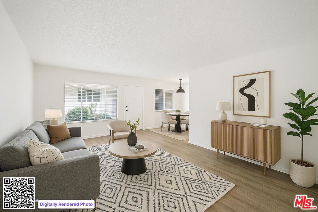 Charming and bright 1-bedroom residence in the desirable Hancock Park area featuring a spacious layout, woodstyle flooring, and abundant natural light. The unit includes a separate dining area, well-appointed galley kitchen with tile counters and ample storage, and a white-tiled bathroom with a full bathtub and updated vanity. The generously sized bedroom offers extensive built-in closets plus overhead cabinetry. Amenities include wall AC units in both the living room and bedroom, onsite laundry, controlled access, and one assigned parking space. 1st Floor unit. Pets allowed with owner approval. Owner pays water and landscaping; tenant pays electric and gas. Located near Melrose, The Grove, Larchmont Village, and numerous local shops, markets, and dining options. Square footage is approximate and not verified.