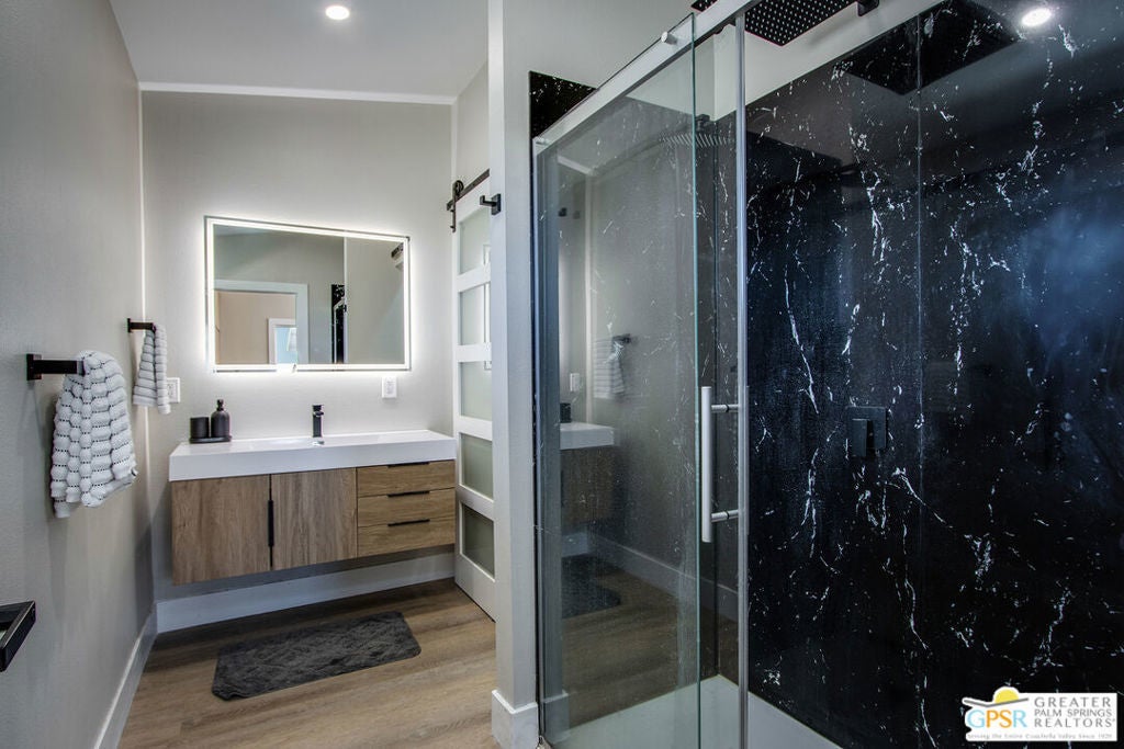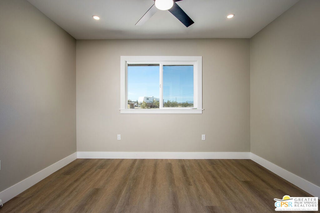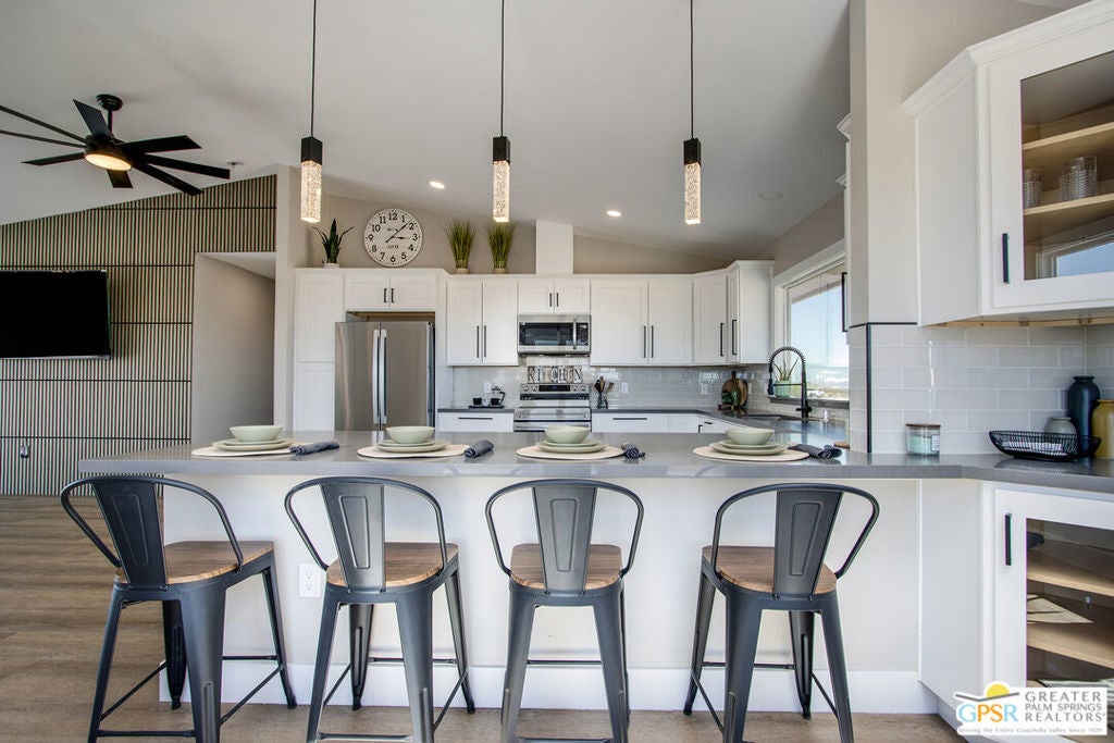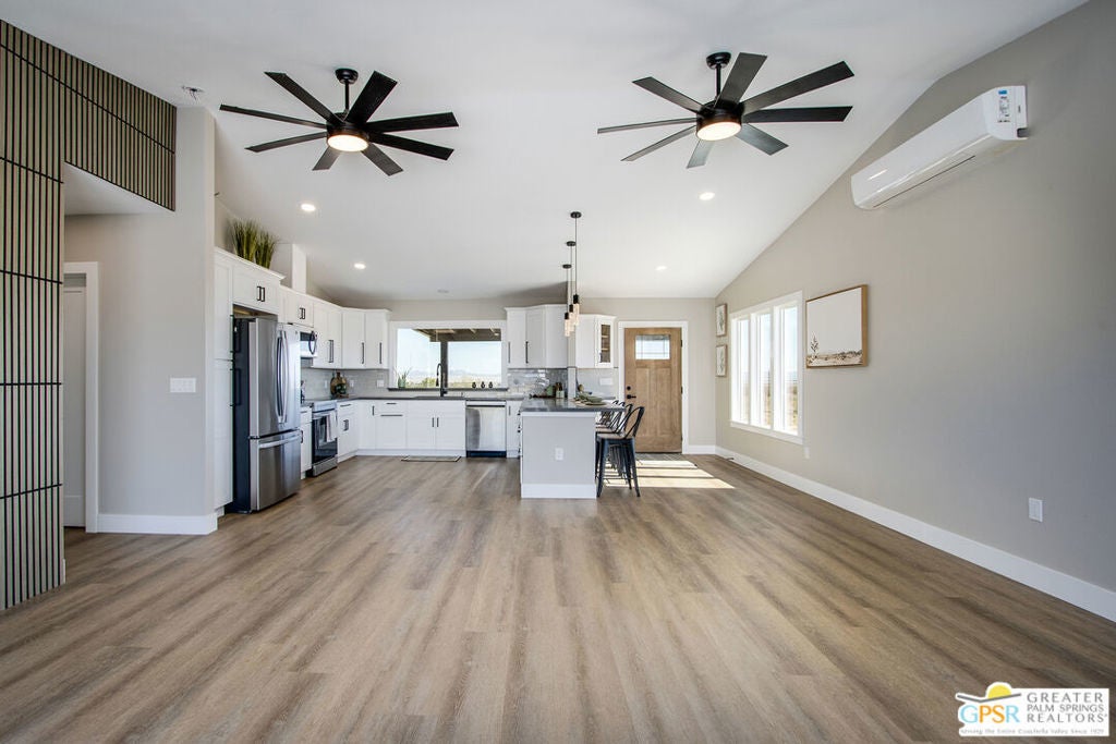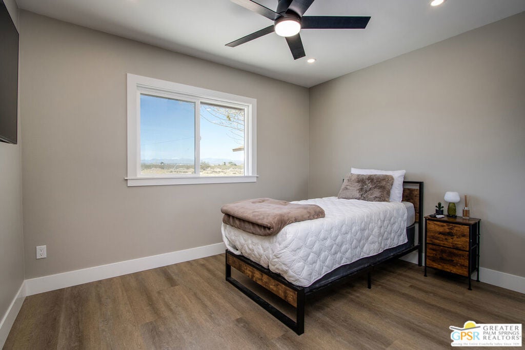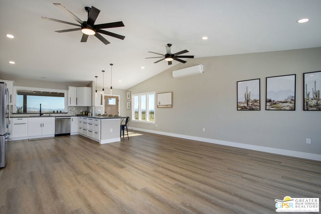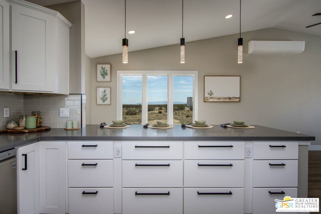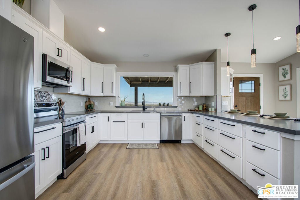Discover the beauty and tranquility of desert living in Landers. This beautifully remodeled 3-bedroom, 2-bath home welcomes you with a bright, open-concept kitchen and living area perfect for entertaining guests or enjoying peaceful evenings at home. Nearly everything has been upgraded or replaced, making the home feel practically brand new. Improvements include an upgraded septic system, a new electrical panel, and concrete walkways surrounding the home so you'll never have to step in the dirt. High-end vinyl flooring flows throughout the home, complementing a stylish, thoughtfully designed kitchen that is both impressive and functional for everyday living. Step outside and take in the peaceful desert setting with charming views of the surrounding mountains. Situated on over two fully fenced acres, the property offers exceptional privacy along with plenty of room to expand, garden, create outdoor living spaces, or bring your future projects to life. The garage is divided into two separate sections, providing flexible space for parking, storage, a workshop, or hobby area. As night falls, experience one of the high desert's greatest treasures the famous dark skies of Landers. Here, breathtaking star-filled nights create a serene escape that feels worlds away from the city while still being within reach of nearby desert communities such as Joshua Tree and Yucca Valley. Ac and Heat systems are 3 ton mini splits.