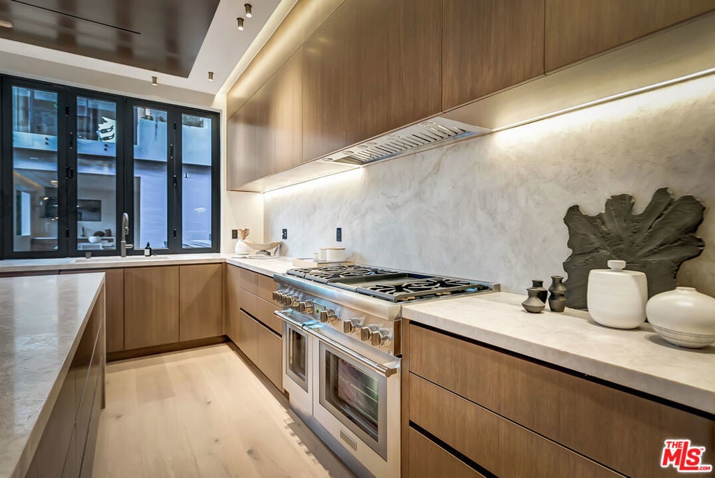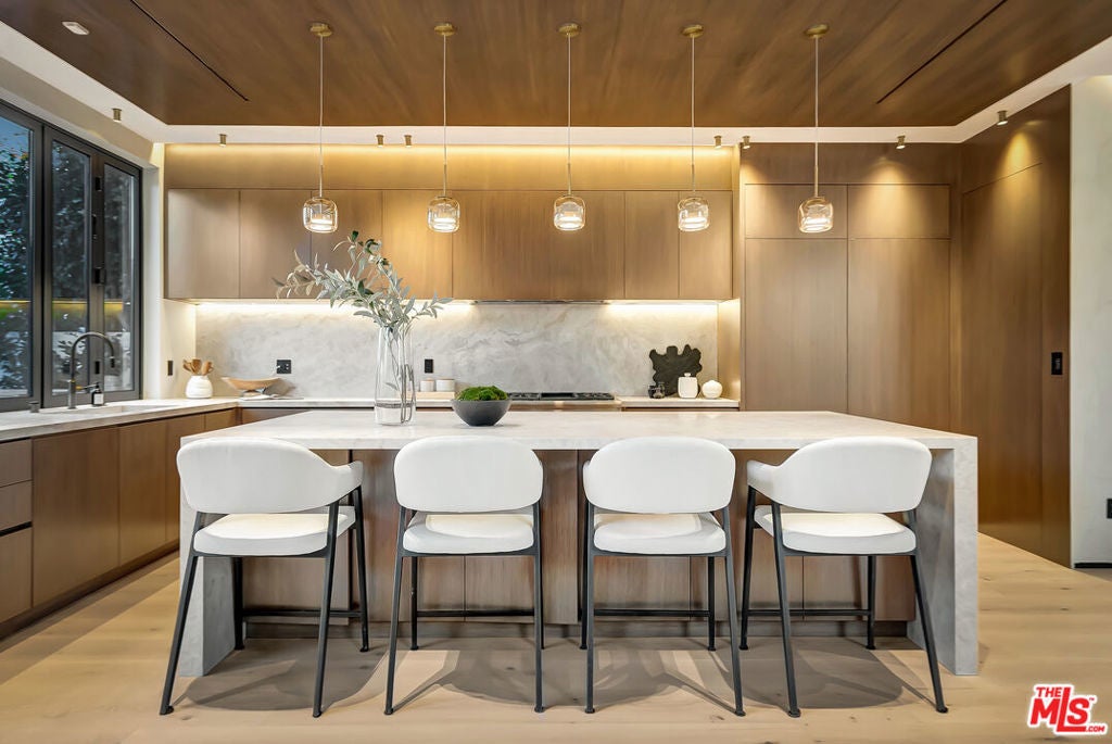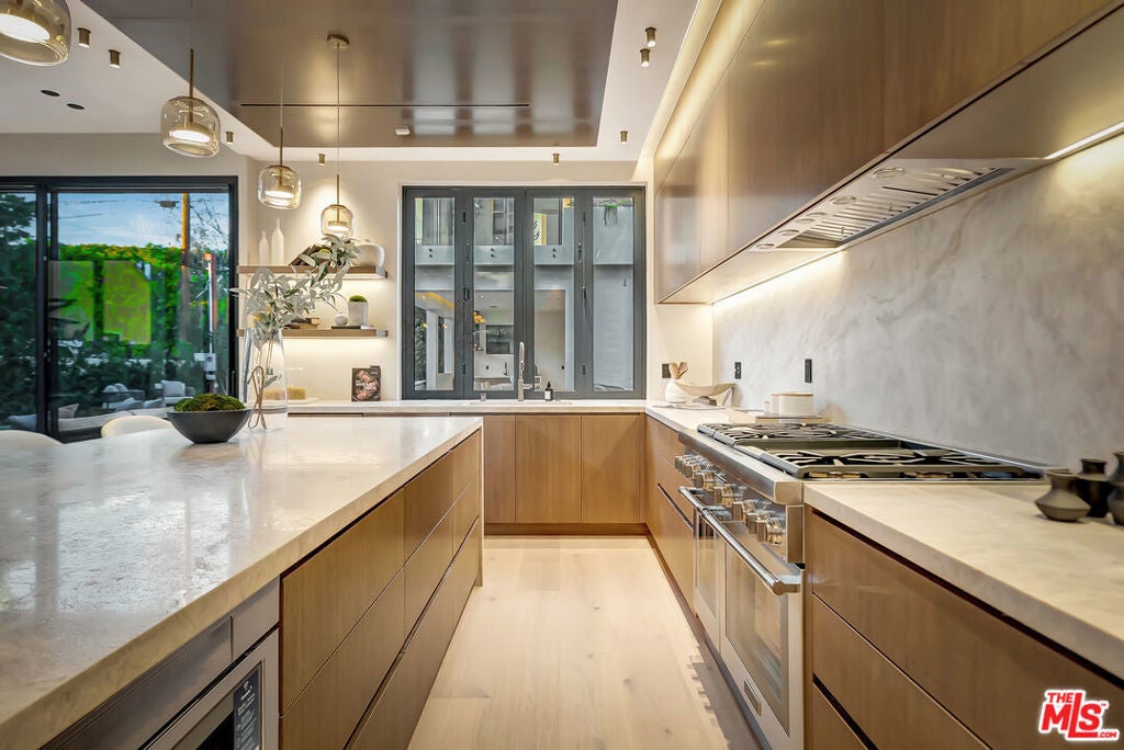 Situated in the prestigious Hidden Woods neighborhood of Sherman Oaks, this exceptional residence offers close to 4,000 square feet of thoughtfully designed living space, featuring 6 bedrooms and 5 full plus 2 powder rooms for elevated modern living. From the moment you enter, soaring ceilings and expansive living areas create a light-filled, open atmosphere that feels both grand and welcoming. Thoughtfully curated custom finishes are showcased throughout, complemented by a chef's kitchen outfitted with premium appliances that seamlessly blend refined design with everyday functionality. Designed for both comfort and entertaining, the home flows effortlessly to the outdoors, where a resort-style backyard awaits. Lush, beautifully landscaped grounds are framed by stunning, full-grown trees, creating a private and serene setting. The outdoor space features a pool and spa, built-in BBQ, and multiple indoor-outdoor patio and entertaining areasideal for hosting gatherings or enjoying relaxed California living year-round. Perfectly positioned on a quiet, tree-lined street and Studio Cityadjacent, the property is just minutes from Notre Dame High School, The Buckley School, and the iconic Sportsmen's Lodge, along with its surrounding shops and dining. This is a rare opportunity to enjoy sophisticated living in one of Sherman Oaks' most desirable enclaves, where luxury, comfort, and location seamlessly converge.