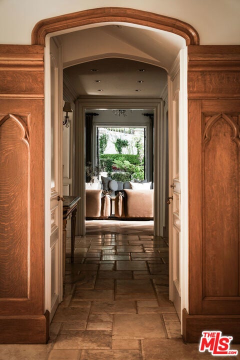 Some homes invite you in. Others take your breath away. 10950 Bellagio Road is the rare estate that delivers both effortlessly. The story begins at the gates, where a sweeping motor court sets the stage for what lies beyond. As you step through the front door, light pours across vaulted ceilings and rustic beams, dancing over a fireplace that anchors the formal living room. Beneath your feet, heated stone floors add a subtle touch of comfort that makes every step feel extraordinary. The kitchen, alive with character, is fitted with a La Cornue range and custom cabinetry. It's not just a place to cook, but to gather around the island for a glass of wine, or in the adjoining dining room where French doors open to your private oasis. Imagine a waterfall cascading 15 feet into a pool below, its sound carrying across every room in the house and terraces designed for long lunches, sunset dinners, or quiet yoga at dawn. Each space whispers relaxation, every corner invites you to linger. Tucked away in its own wing, the primary suite feels like the closing chapter of a perfect day. A marble spa bath, a two-story boutique-style closet, a fireplace to curl up beside, and a private patio overlooking the fairways. All the elements of retreat woven seamlessly together. The home continues with five guest suites, spaces for both celebration and solitude, a custom wine cellar, and even an elevator. And through it all, the sense of place is undeniable: Set within Lower Bel Air, overlooking the 15th fairway of The Bel Air Country Club, this immaculate residence captures the essence of one of the world's most coveted neighborhoods. This isn't just a home reborn, it's a story waiting for its next chapter.
