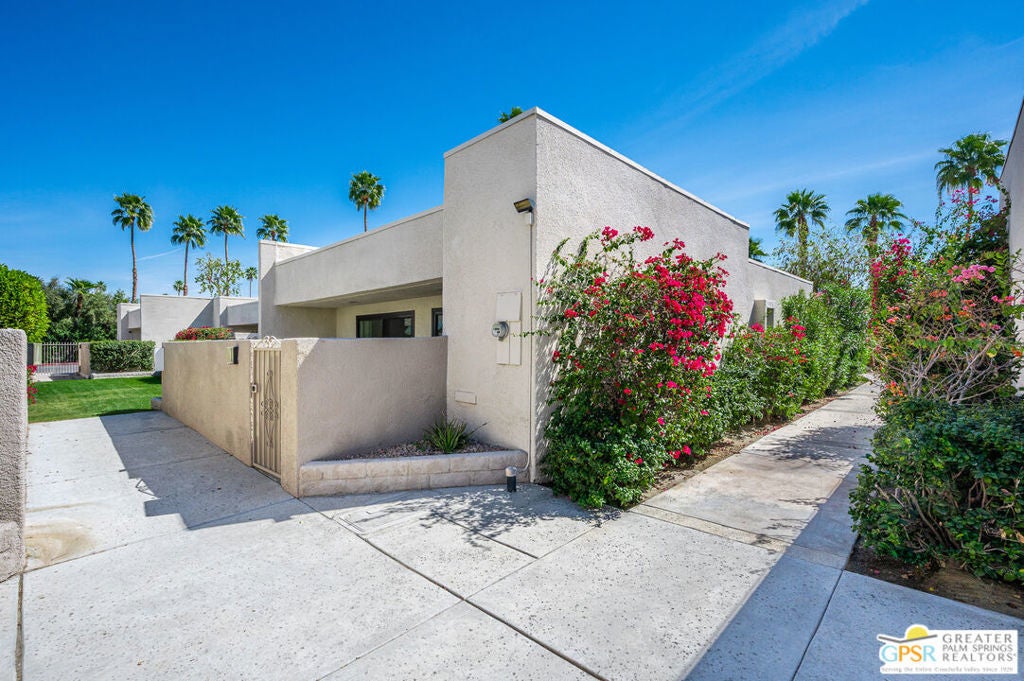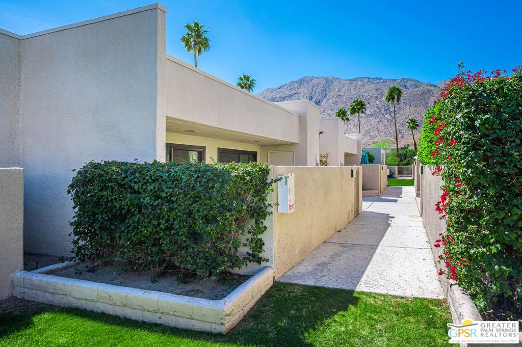 Looking for a comfortable single story condo in the heart of downtown Palm Springs? Only interested in Fee Simple land? Look no further! The units here at Casitas Arenas rarely come on the market. This 2 bedroom 2 bath 1176 sq. ft. unit is located at the quiet back of the complex and is a gem. It's been well maintained and is ready for its next owners to make it their own. Some of the features include washer/dryer in the kitchen, Navien tankless water heater, high ceilings, whole house water filter, dual pane windows, mountain view, assigned carport, beautiful parklike grounds surrounding the pool and spa. Only 40 units with a low monthly HOA of only $495. It's worth seeing in person. You won't be disappointed!