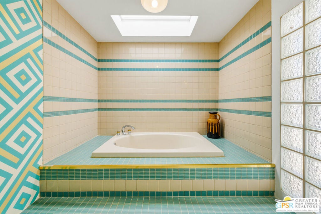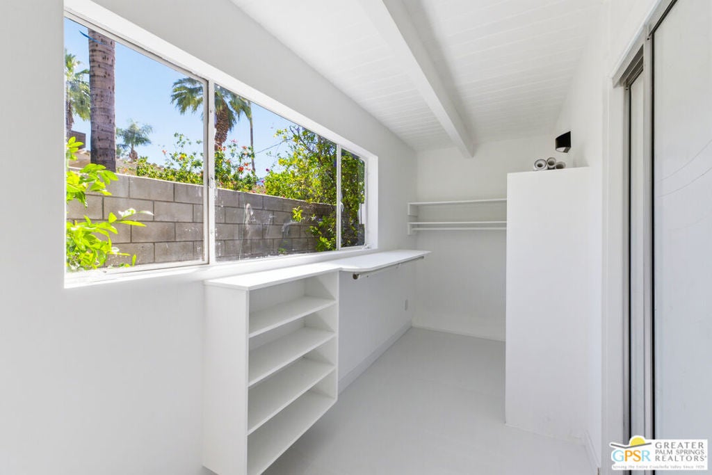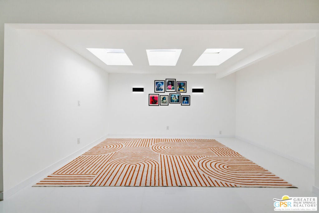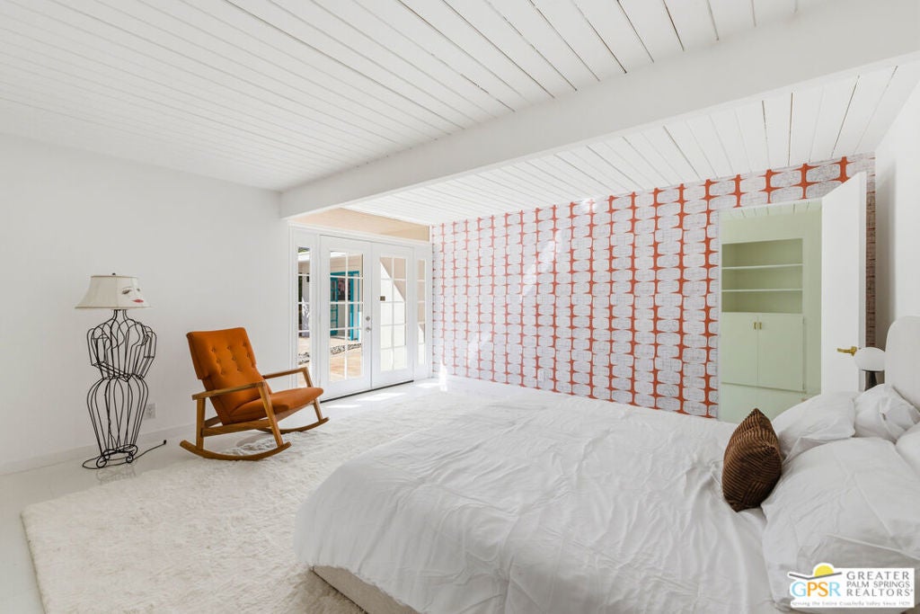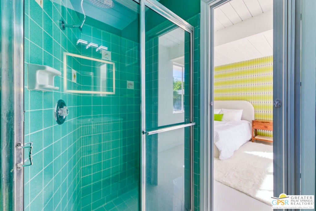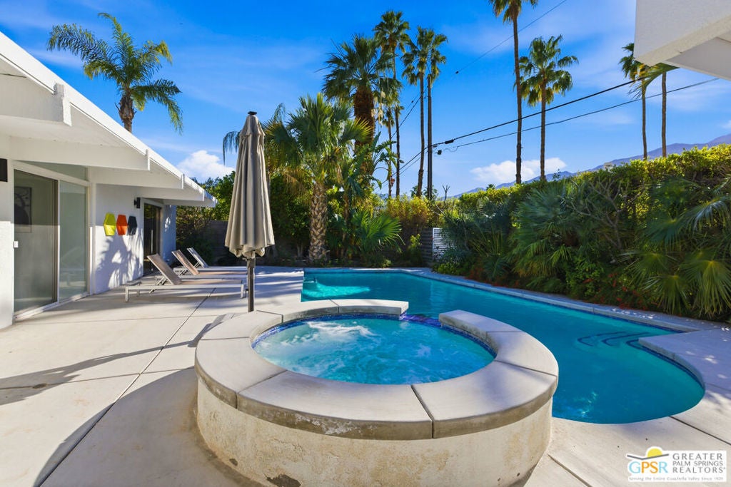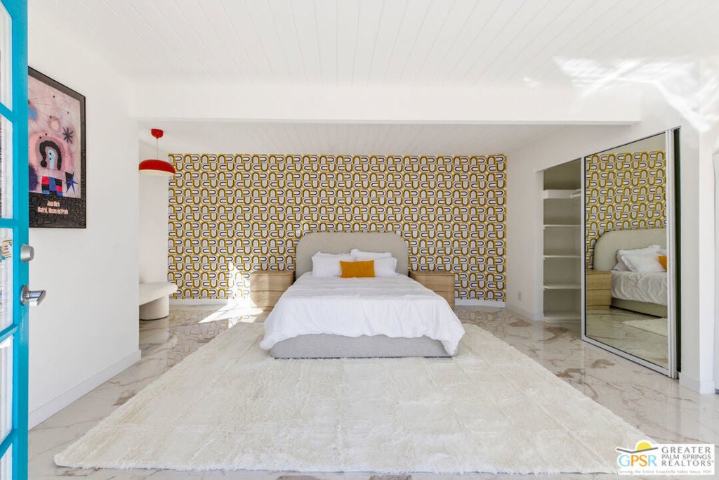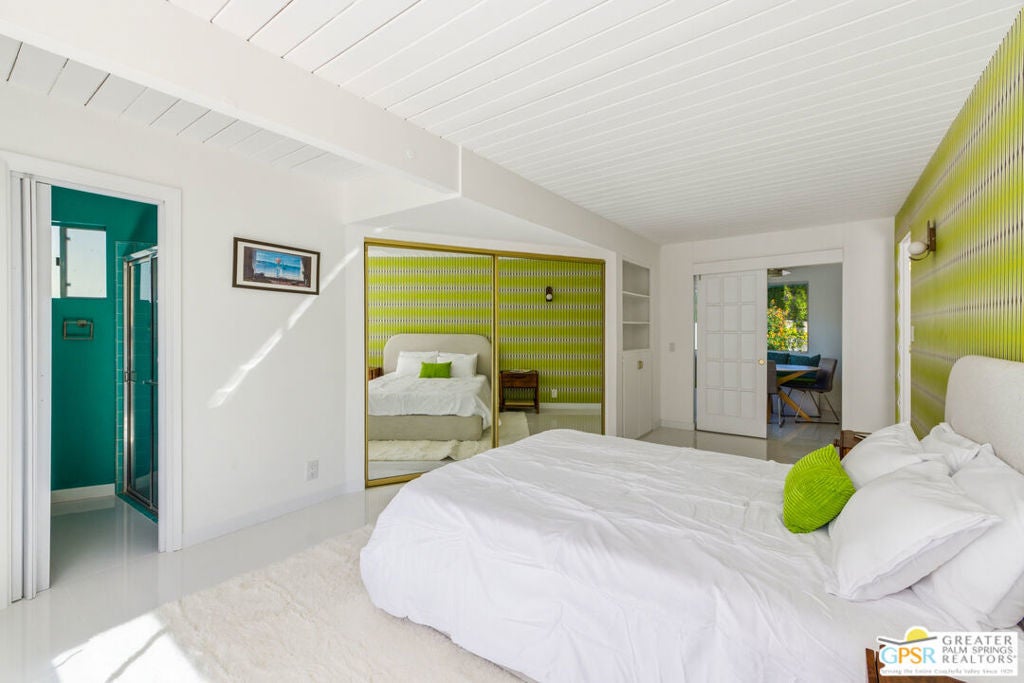 Smashing! Mid Century at its finest. Huge (3743 square foot) amazing home. Built in 1956, it features the most quintessential elements of Mid Century Modern Architecture; post and beam construction, tongue and groove ceilings, walls of glass allowing pool and mountain views, 4 beds, 4 ensuite baths, kitchen, living room, fireplace, dining room, bar, office, breakfast room. Newly and beautifully refurbished. The seller has made every attempt to retain as much of the original features as possible e.g. original bathroom tile and sourcing period Kohler low boy toilets from the 1960s. Home is located in Deepwell one of the most desired areas in all of Palm Springs. Deepwell, a private, non windy enclave, close to all amenities without the hustle and bustle. It has long been the home to celebrities and movie stars and generally features elegant homes with manicured lawns on large lots. Property is huge and perfect as single family home, can be used for family gatherings, parties and can also be rented short or long term. Similar size house in the area earned over $100,000 in rental income in 2025. There are still permits available as of this writing but check with city of Palm Springs for current status re short term permits. This lovely residence is alleged to be the former home of a Radio City Rockette built for her by a generous indulgent boyfriend. The perfect place for the new owner to kick up his/her heels! Property is exquisitely furnished and decorated featuring classic modern furnishings and artwork with pieces by Jonathan Adler, Kartell, Milo Baughman, Jens Rison, Ernst Moeckle, Gitzberg, Gruen, Howard, Reggiani, Miro, Sciolari, Murano, Risley and Tretchikoff.