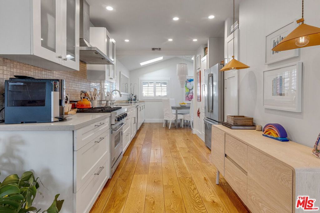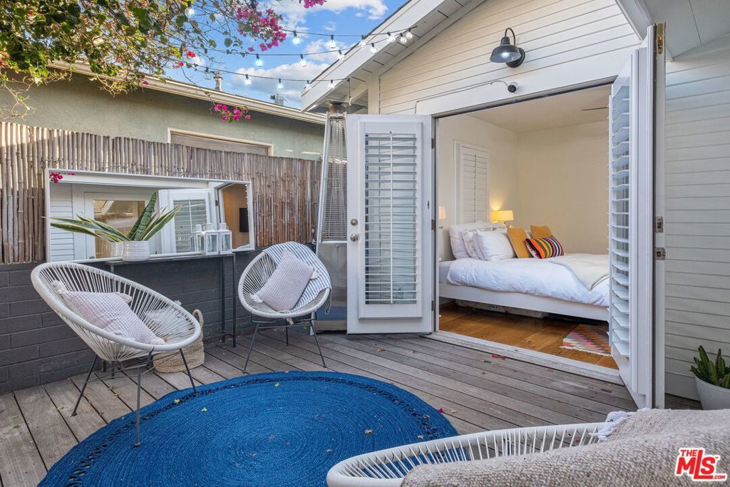 The main house features sun-drenched interiors with hardwood floors, skylights, and a chef's kitchen equipped with custom cabinetry and stainless steel appliances. Designed for seamless indoor-outdoor living, both the kitchen and primary bedroom open onto a private deck perfect for al fresco dining or morning coffee. The detached guest house offers a private retreat with one bedroom, a newly renovated bath, in-unit laundry, and French doors leading to a lush, maintenance-free turf yard. Situated just moments from the world-class dining and boutiques of Abbot Kinney and only two blocks from the beach, this Cabrillo Avenue gem is Venice living at its finest.