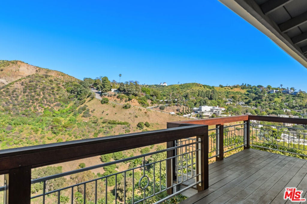 Must see this newly renovated Mid-Century modern with epic front row views stretching from the Hollywood sign to the Griffith Observatory. Perched at the end of a cul-de-sac promontory, this incomparable ultra private and quiet sanctuary delivers jaw dropping panoramic views of the most iconic scenery Hollywood has to offer. The light filled home with oversize windows and large scale rooms is dialed in with refined finishes including hardwood flooring, remodeled kitchen with skylight, spa like bathroom with separate shower and deep soaking tub, stylish guest bathroom and built ins with in home laundry. Incredible indoor outdoor living with a huge floating deck offering wide open unobstructed views of the Hollywood Hills and private balcony off the large primary bedroom with wall of glass. This truly exceptional home is available for immediate move in and is pet friendly.