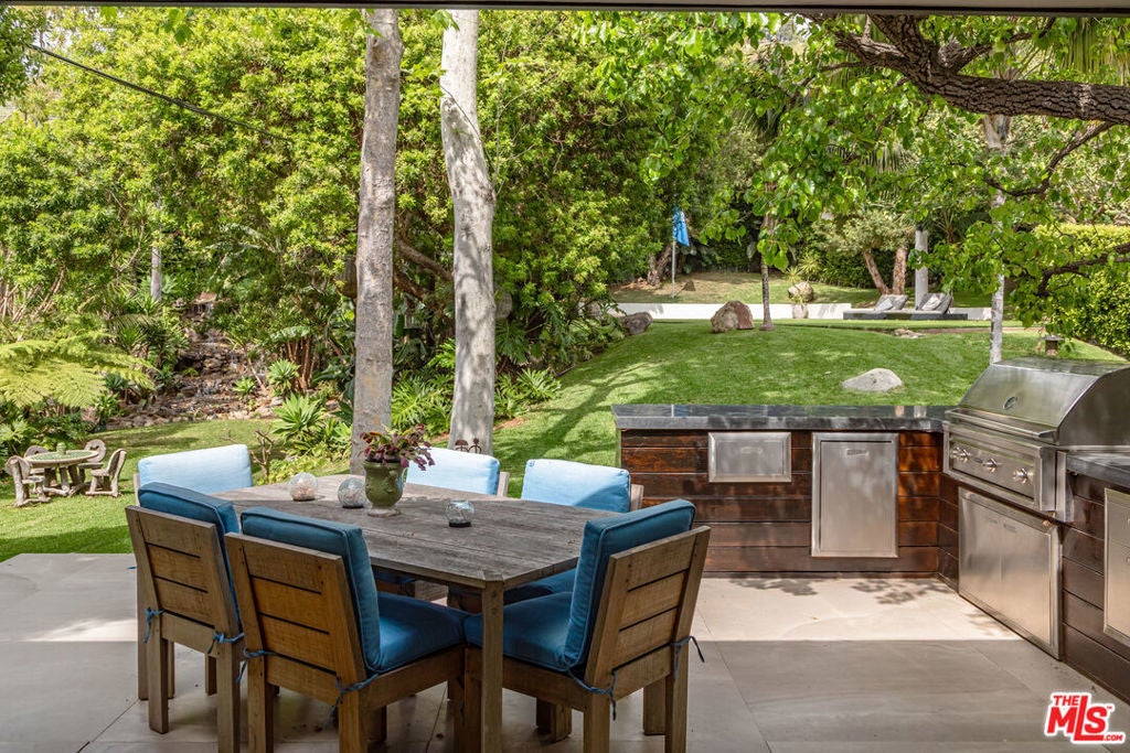 Discover a private coastal paradise along Malibu's iconic Encinal Bluffs. Set behind the gates on a quiet private street, this sophisticated residence offers a rare blend of tranquility, lifestyle amenities, and highly coveted deeded access to some of the most secluded beaches in all of Malibu. Spanning .88 acres of lush curated landscape, the estate introduces itself with a private sports court and generous outdoor living areas, establishing an atmosphere of resort-style serenity and elevated coastal living from the moment you arrive. A stunning all-glass entry welcomes you with an abundance of natural light, setting a luminous tone of openness and calm that connects the home to its natural landscape. At the heart of the residence is a beautifully appointed chef's kitchen showcasing top of the line appliances and a dramatic center island finished in a single slab of marble creating a focal point for gathering and hosting. The primary suite unfolds as a true indoor-outdoor sanctuary, featuring expansive folding glass doors leading out to private deck with a secluded hot tub with a rejuvenating space designed for wellness rituals and sunset relaxation. The accompanying spa-like primary bath offers an extravagant walk-in shower and a sculptural soaking tub. 2 additional bedroom suites are designed as peaceful retreats, offering comfort, natural light and a sense of quiet separation from the homes main living spaces. A spacious second level bonus room offers a versatile retreat ideal for a creative space, office, or yoga studio equipped with a private deck and stunning views. Expansive landscaped grounds feature a wide lawn, outdoor shower, mature trees lining a year-round stream, and a multi-level cascading waterfall that creates a serene resort-like setting. Outdoor barbecue off the kitchen creates a perfect place for outdoor dining. The generous driveway provides parking for 8 or more cars, while thoughtful modern upgrades include a solar energy system and electric vehicle charging stations. Offering the perfect balance of beachside living and convenience, the property is ideal for surfers and close to Malibu's finest restaurants and shops. A distinctive offering where space, serenity and the feeling of paradise truly come together.
