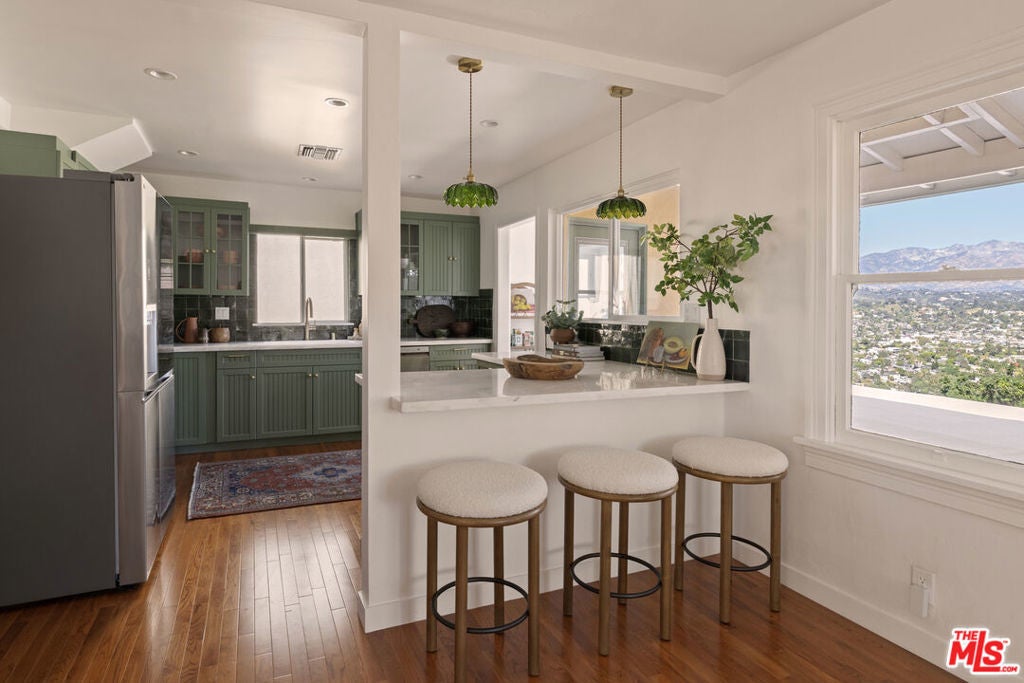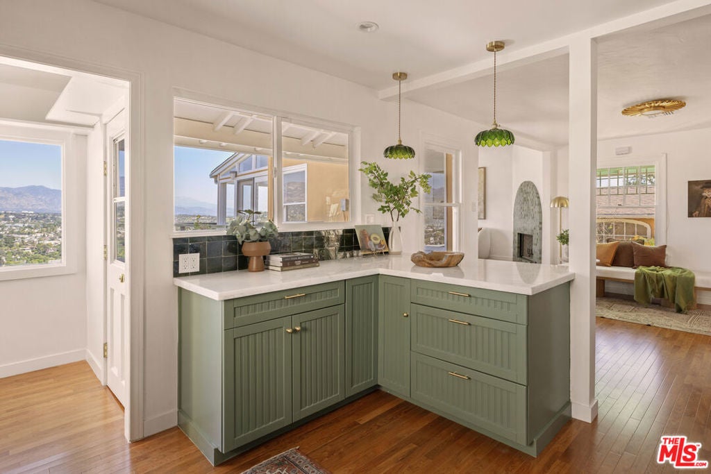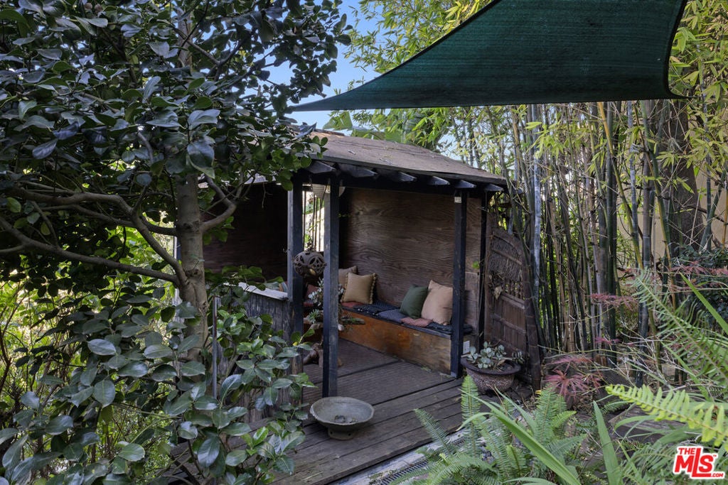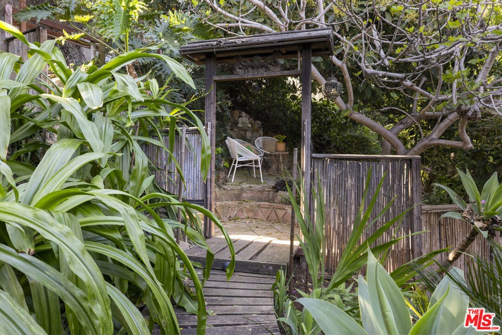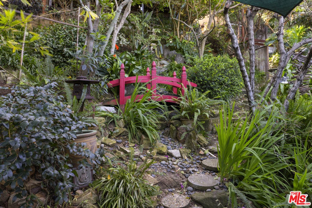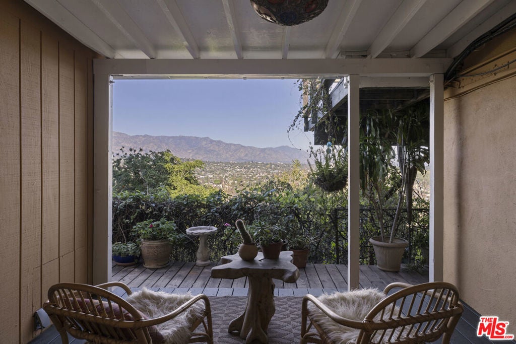 Explosive 180 degree views and magical gardens - a rare creative compound in the hills of Mount Washington. Set on a lush 7,485 sq ft hillside lot overlooking the San Gabriel Valley and surrounding mountains, this private retreat offers a rare blend of nature, character, and flexible living spaces just minutes from the best of Northeast Los Angeles. The grounds unfold like a hidden park, with fruit trees, flowering gardens, winding pathways, and a serene Japanese tea house tucked among the landscape. Two mature avocado trees produce hundreds of delicious fruit each year, alongside grapefruit, pomelo, fig, and other trees that create shaded spaces to relax and explore. The remodeled, light-filled main house blends vintage character with thoughtful modern updates and an open layout designed for effortless indoor-outdoor living. Sunlight fills the interiors throughout the day, highlighting wood floors, a spacious living room with fireplace, a sunroom with oversized windows, and a modern chef's kitchen that complements the home's original charm. Outdoor living spaces including a generous view deck are positioned to capture sweeping mountain, valley, and city vistas. The primary bedroom features a walk-in closet and private patio with peaceful views. Down a separate set of steps, a bedroom and bathroom with adjoining patio offer flexible space for guests, creative work, a home office, or multi-generational living. Adding to the property's unique appeal, a dedicated recording and artist studio with lounge area and half bath provides a rare and highly functional creative work space ideal for musicians, podcasters, voice artists, or anyone seeking a secluded place to create. Located within the highly regarded Mount Washington Elementary School and Washington Irving Middle Math / Music / Engineering Magnet School district, close to Highland Park, Eagle Rock, Silver Lake, and DTLA, the home offers easy access to cafes, dining, parks, and hiking trails. Long known as a quietly iconic hillside enclave, Mount Washington continues to attract artists, musicians, and other creatives drawn to its nature, views, and architectural individuality.
