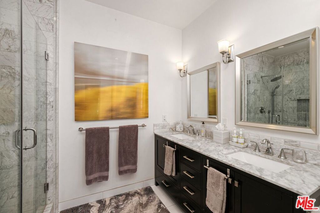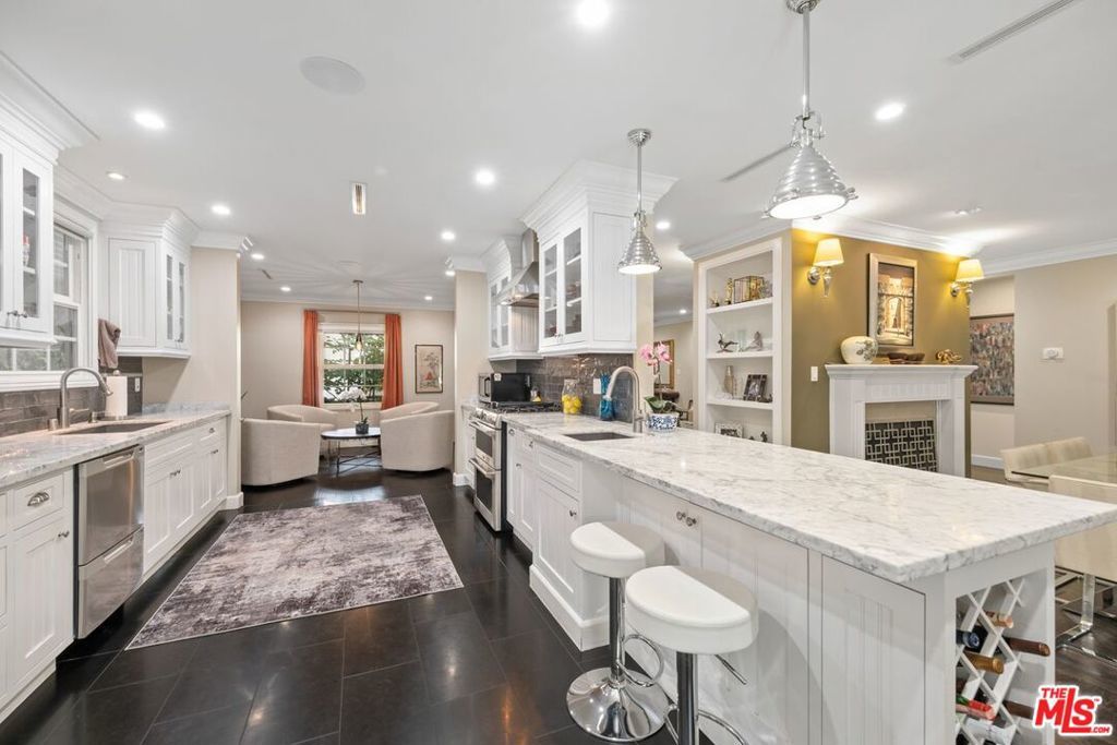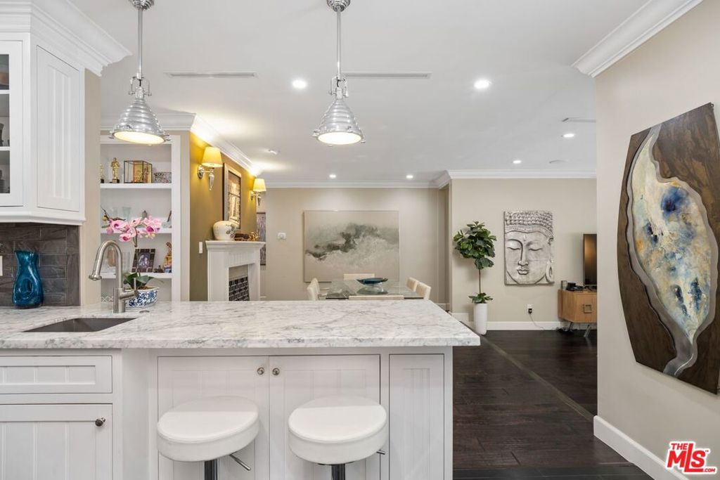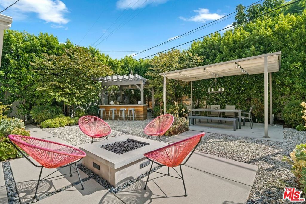 Sophistication and luxury await you in this spectacular modern home! You can look near and far, and you won't find a home with the grace, style, and warmth that this beauty offers! As you enter the home, you are greeted in style as you walk into the intimate living room, complete with a fireplace, offering the perfect spot for drinks before dinner with friends or relaxing with a good book! Preparing meals in the gourmet kitchen, which is adorned with Carrera marble counter tops, stainless steel appliances, a cook's oven, and beautiful cabinets, is enjoyable and relaxing! The kitchen is equipped with dual sinks, dual dishwashers, and two ovens. The breakfast bar in the kitchen opens to the dining area and family room, which allows for ease of mingling with guests while cooking. The large primary bedroom has a built-in desk, which makes for a lovely workspace, as well as access to the patio. The spa-like primary bathroom is adorned with Carrera marble and offers a large bathtub with jets so you can relax and unwind! The second bedroom is an en suite, allowing privacy for guests. The third bedroom is light and bright! Enjoy the ease of the indoor/outdoor flow, through the sliding glass doors to the patio and the Shangri-La atmosphere of the architect designed backyard, where you will find the outdoor kitchen with a BBQ, sink, and refrigerator, dining pergola, swing bed, and dual waterfalls - a true sanctuary in which to relax and recharge! Some notable features this lovely home has to offer: crown molding, engineered wood flooring, dual pane windows, Rachio auto sensor drip watering system for the entire landscaping, built-in sound speakers in common areas of the house, and a 2-car detached garage, as well, as a car port.