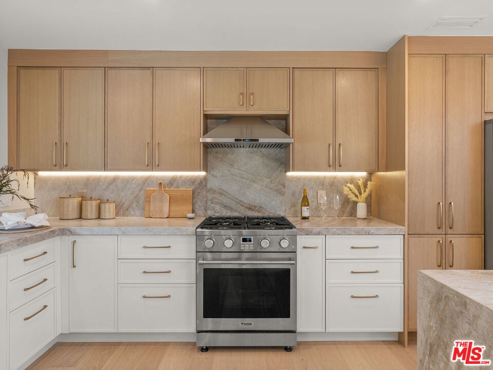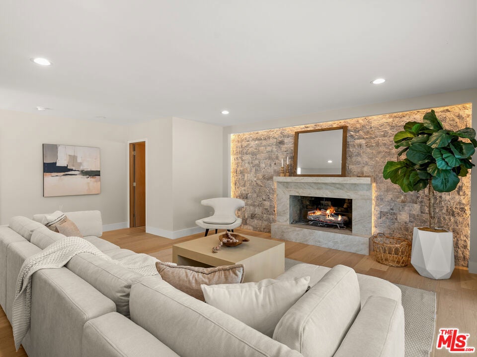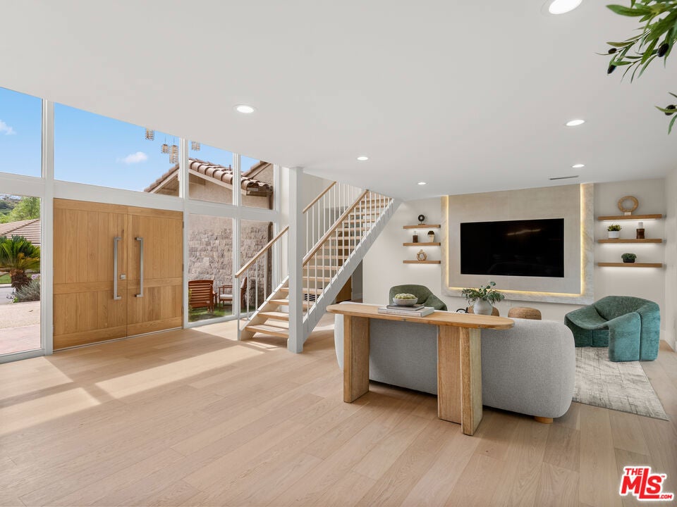 Completely reimagined and thoughtfully renovated, this stunning Westlake Village home blends modern luxury with timeless design. The residence features high end finishes throughout, including new engineered hardwood flooring and elegant indirect ambient lighting that creates a warm and sophisticated atmosphere. At the heart of the home is a designer chef's kitchen with custom cabinetry, quartzite natural stone countertops, and premium Thor appliances. All bathrooms have been fully remodeled with premium Italian porcelain tile, and major infrastructure upgrades include a brand new roof and upgrades to sewage and plumbing lines. The outdoor space is designed for true California living, showcasing a resurfaced pool with new plaster and tile along with a luxury patio finished in imported Italian tile and an outdoor entertainment area complete with a built in TV and fireplace.
