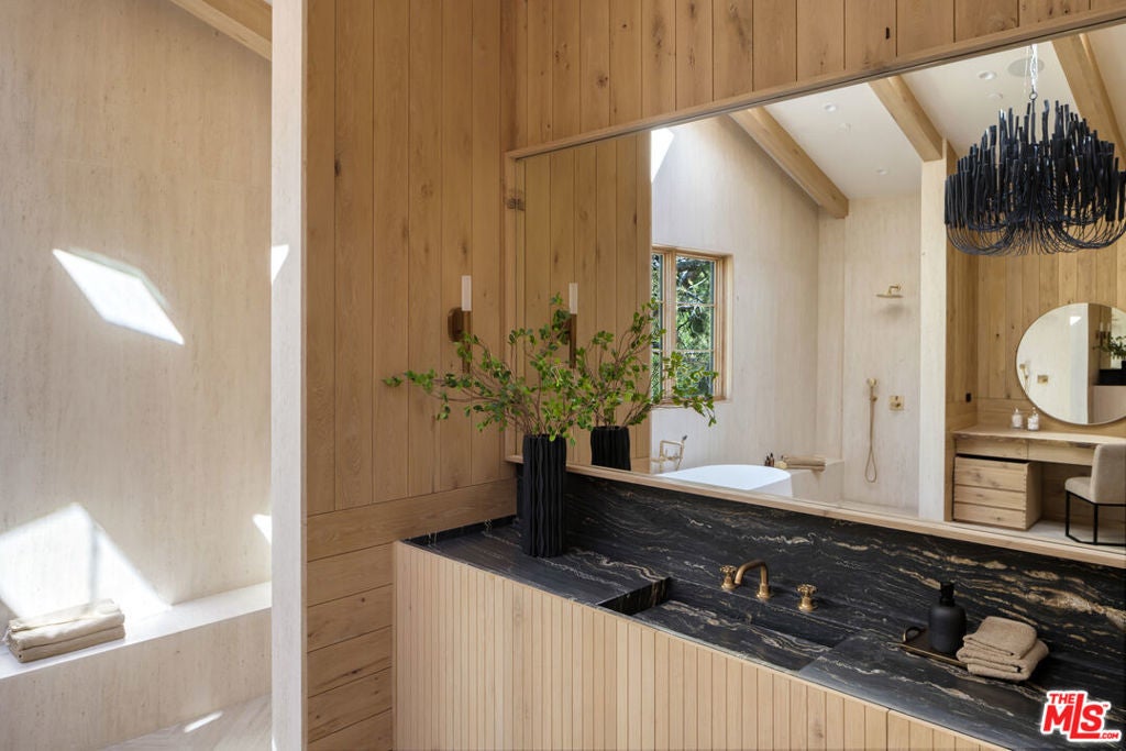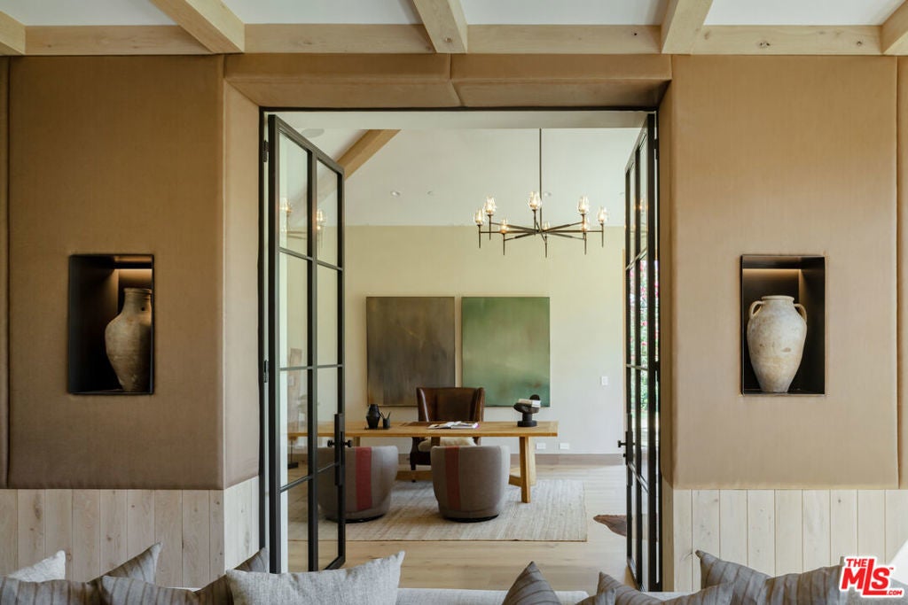 Introducing Three Planes, an extraordinary new 11,000 sq ft modern equestrian estate by acclaimed designer Jae Omar, set on over an acre in the exclusive gates of Hidden Hills. Inspired by the Chumash people and their deep connection to nature, the home is a rare fusion of bold architecture, organic materials, and intentional design. The residence offers 5 bedrooms and 6.5 bathrooms, with the luxurious primary suite and three secondary bedrooms located upstairs, each with its own ensuite bath. A dedicated wellness and entertainment wing features a gym, private spa, media room, wine cellar, and wet bar. The chef's kitchen with breakfast nook and walk-in pantry flows effortlessly to grand living and dining spaces under soaring, beamed ceilings. Outdoors, discover a resort-style pool and spa, firepit, outdoor kitchen, yoga deck, and a detached barn perfectly honoring Hidden Hills' equestrian heritage. Every detail is crafted to inspire, making Three Planes as much an artistic statement as it is a private sanctuary.