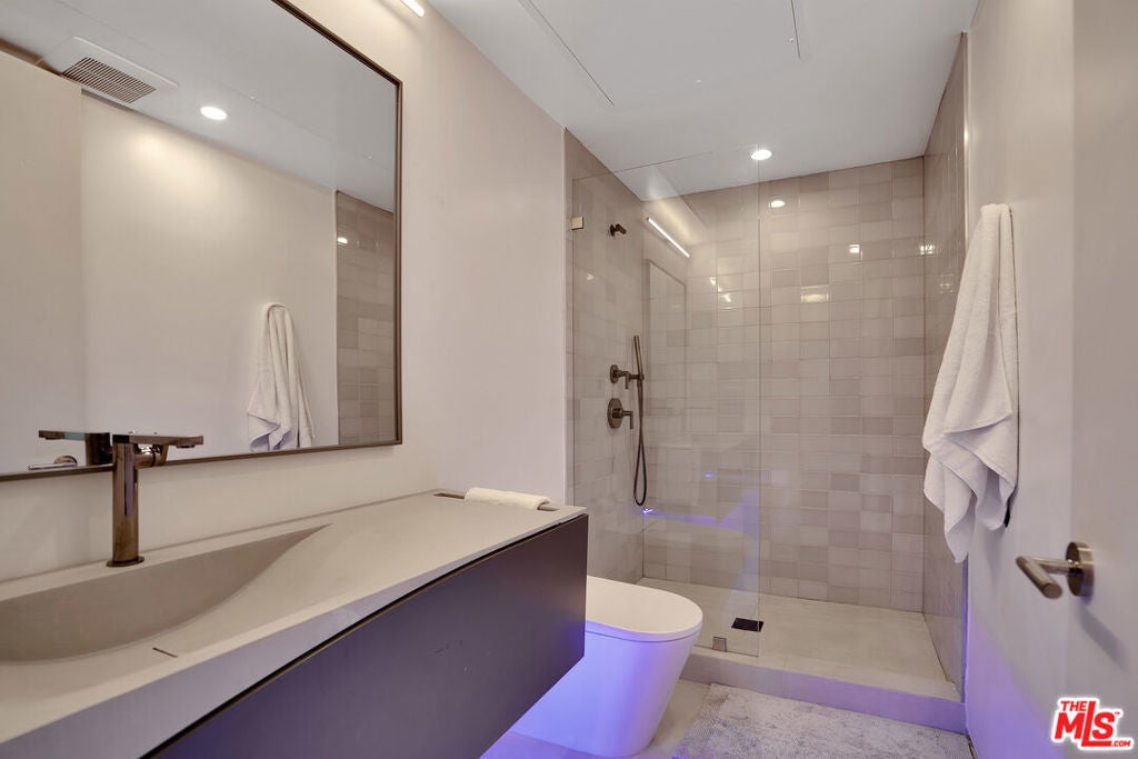 Luxury home in the heart of Brentwood offering approximately 5,500 SF of refined living. Designed for entertaining, this architectural residence features a resort-style pool and spa, BBQ , outdoor bar, and seamless indoor-outdoor flow through floor-to-ceiling sliding doors. State-of-the-art smart home technology includes advanced security, automated lighting and shades, a premium sound system, and dual Tesla chargers in a three-car garage.The main level showcases soaring ceilings, a chef's kitchen, formal dining, a designer bar with a wine wall, and elegant living spaces. The primary suite provides direct pool access, dual walk-in closets, and a spa-inspired bath with steam shower and outdoor shower. Additional highlights include multiple guest suites, a private theater, rooftop deck with outdoor gym and fire pit, and sweeping mountain views. Ideally located near Brentwood Country Mart and the best restaurants and shopping the Westside has to offer.