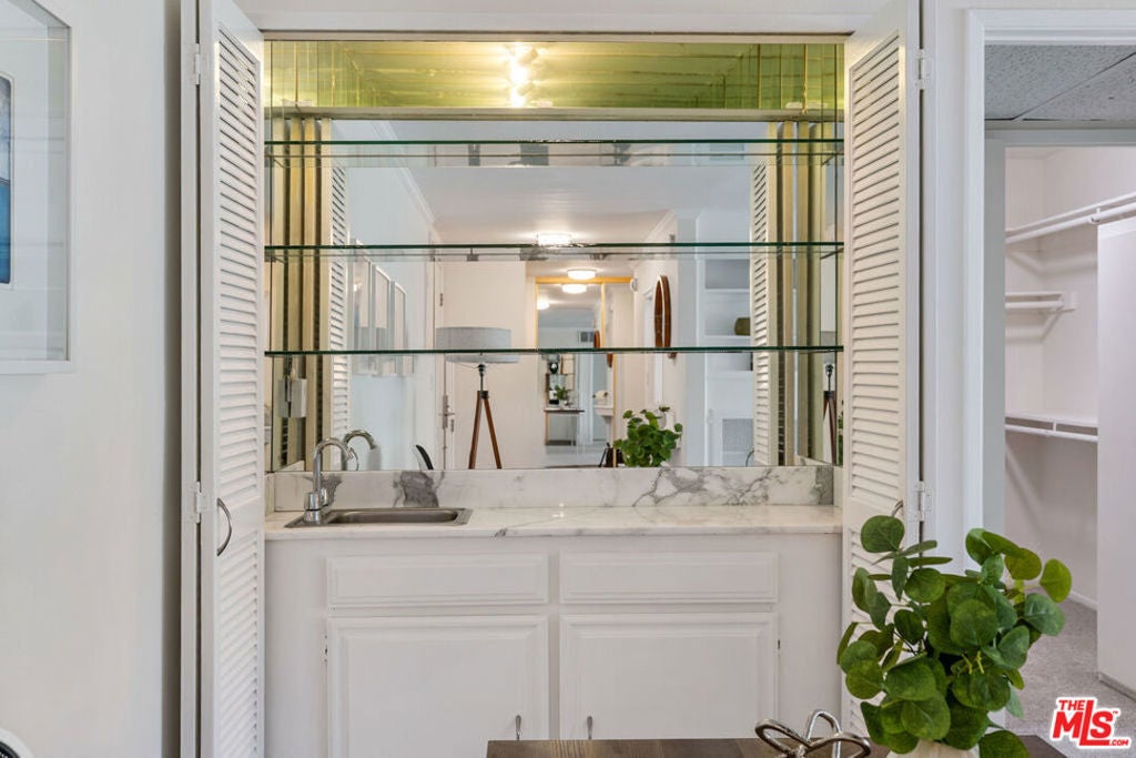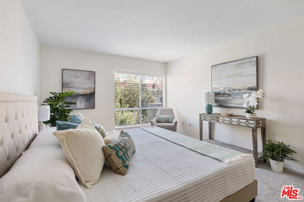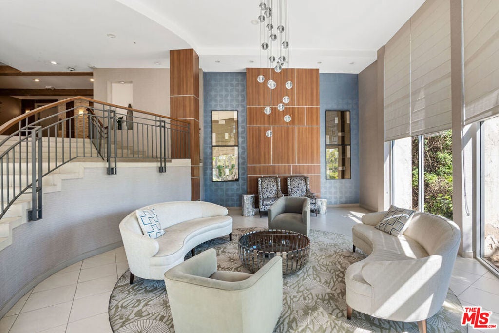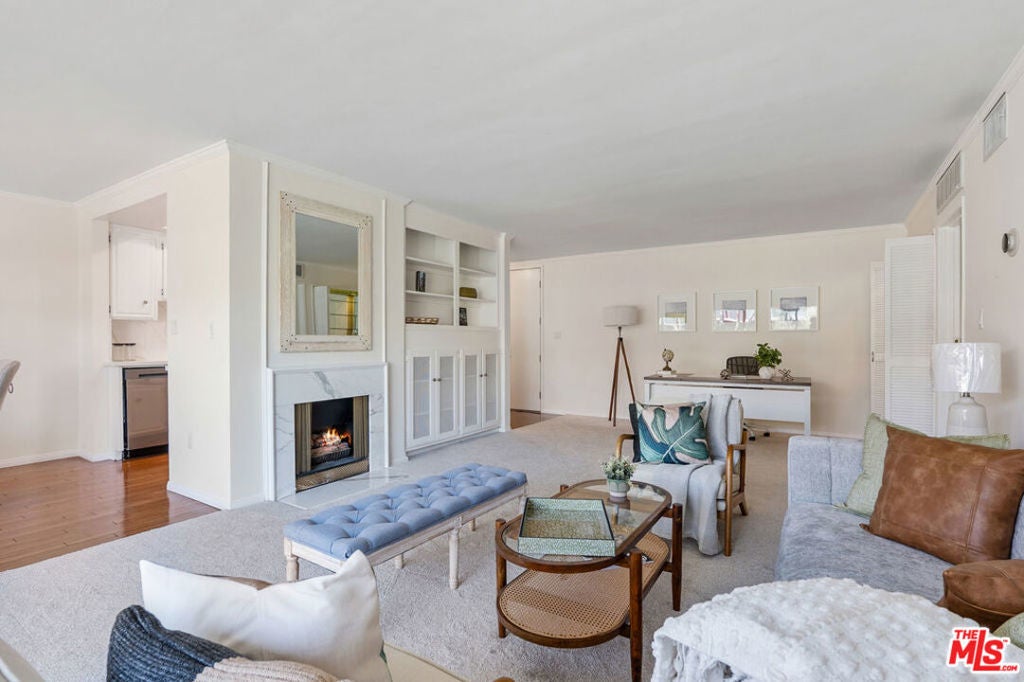 An exceptional opportunity to own a top-floor, bright and spacious 2-bedroom, 2-bath residence in one of Brentwood's premier luxury buildings, beautifully upgraded and move-in ready. Since its last time on the market, the home has undergone a comprehensive renovation. The kitchen has been thoughtfully redesigned with sleek quartz countertops, premium stainless steel appliances, a farmhouse-style sink, elegant Emtek cabinetry hardware, and modern LED recessed lighting, creating a clean, sophisticated space ideal for both everyday living and entertaining. Both bathrooms have been tastefully updated with new vanities, countertops, toilets, and stylishly tiled showers. Additional upgrades include new blinds and updated light fixtures throughout. This quiet, rear-facing unit features a desirable center hall floor plan with excellent separation of space. The expansive living room offers high ceilings, a decorative fireplace, and a wet bar, seamlessly connecting to an elegant dining area that opens to a private balcony with unobstructed treetop views. Two generously sized bedrooms are positioned on opposite sides of the unit for maximum privacy, each with ample walk-in closet space. Fresh interior paint, new carpeting, and abundant storage throughout complete the home's polished feel. Additional highlights include two side-by-side parking spaces and a dedicated storage unit in the garage. Community laundry is conveniently located across from the unit. An EV charger can also be installed at the assigned parking spaces upon request (at buyer expense). Residents enjoy a secure, amenity-rich complex featuring a pool, BBQ area, recreation room with shower, tranquil courtyard, and beautifully updated common areas with a boutique hotel ambiance. Ideally located in the heart of Brentwood, just moments from the Sunday Farmers Market, top dining, coffee shops, and local boutiques, this home offers the perfect blend of walkability, comfort, and elevated Westside living.