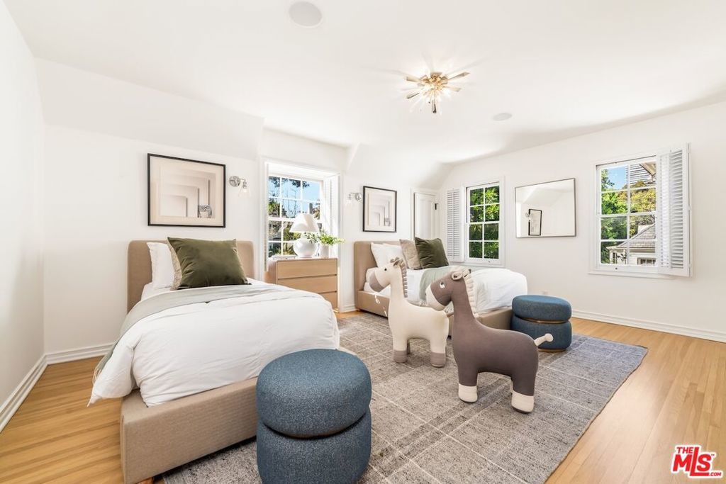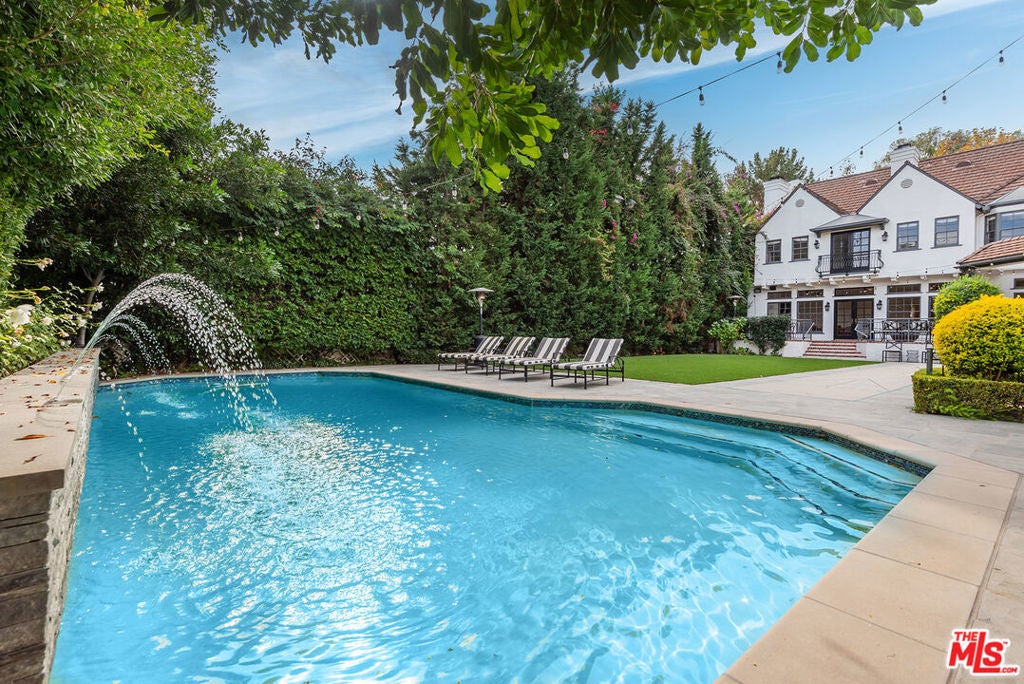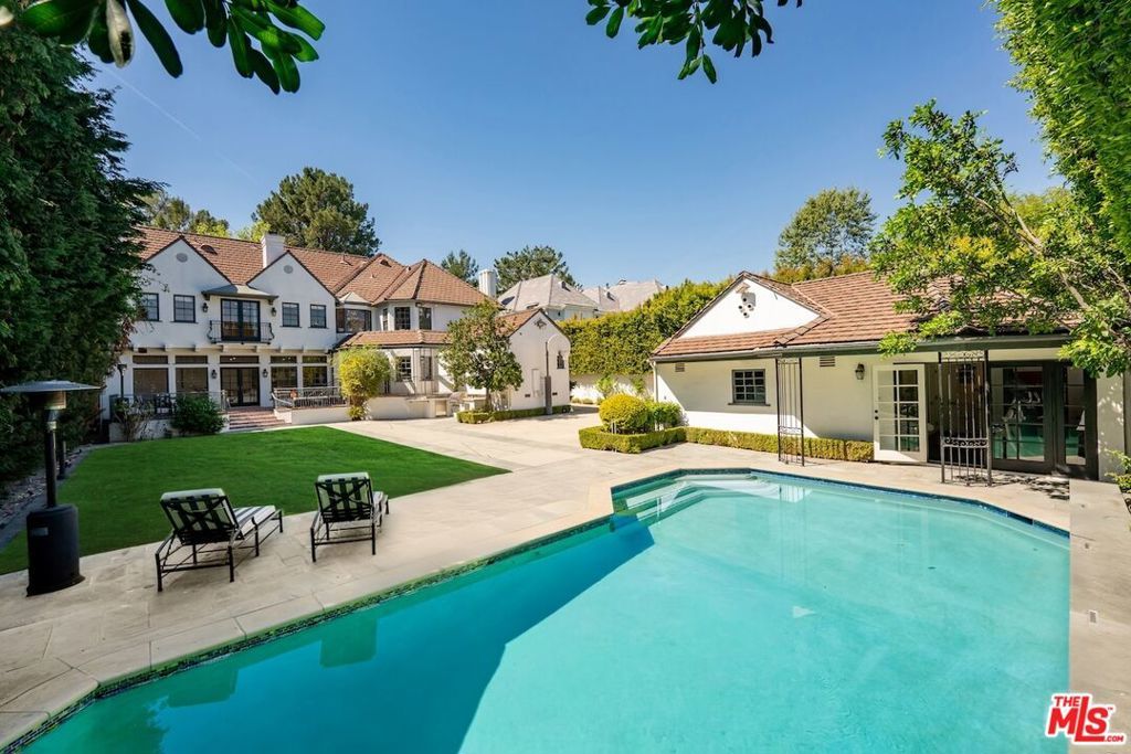 The Sierra House has arrived... Situated on one of the most coveted streets in the Beverly Hills Flats, this classic home seamlessly blends timeless character with modern living. The main floor features a formal living room, dining room, chef's kitchen, wood-paneled study, and a sun-drenched family room that opens to the lush grounds. French doors lead to a resort-like backyard with a sparkling pool, spa, and a detached guest house currently outfitted as a gym.Upstairs, the primary suite by renowned architect Richard Landry offers a dual-sided fireplace, separate office nook, oversized bath, soaking tub, and dual walk-in closets. Three additional en-suite bedrooms complete the top level, with a bonus room perfect for a playroom or creative space. Meticulously landscaped for privacy and warmth, The Sierra House combines elegance and comfort, creating the perfect family home.