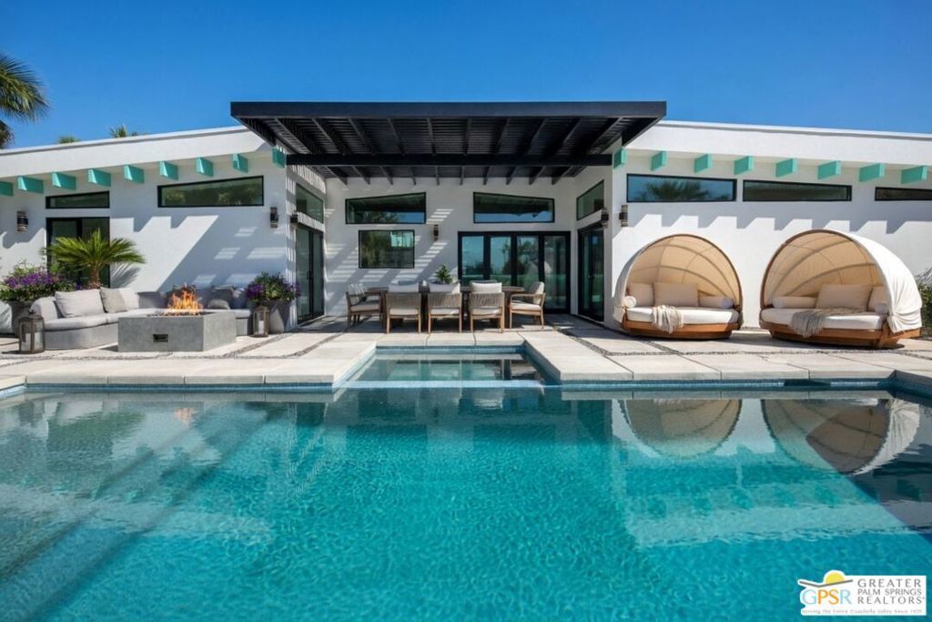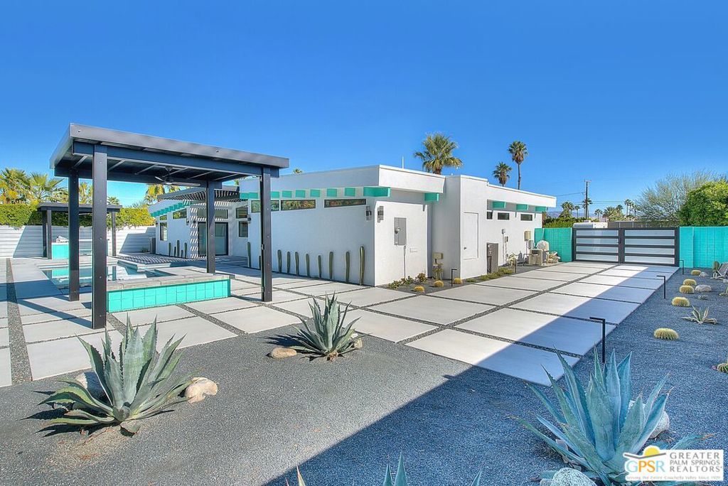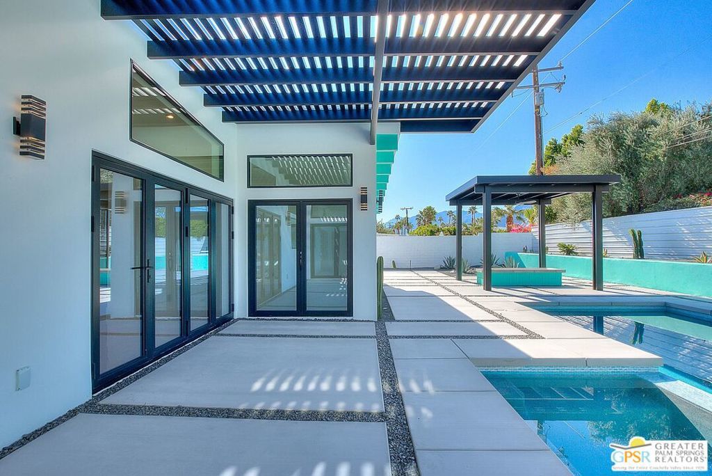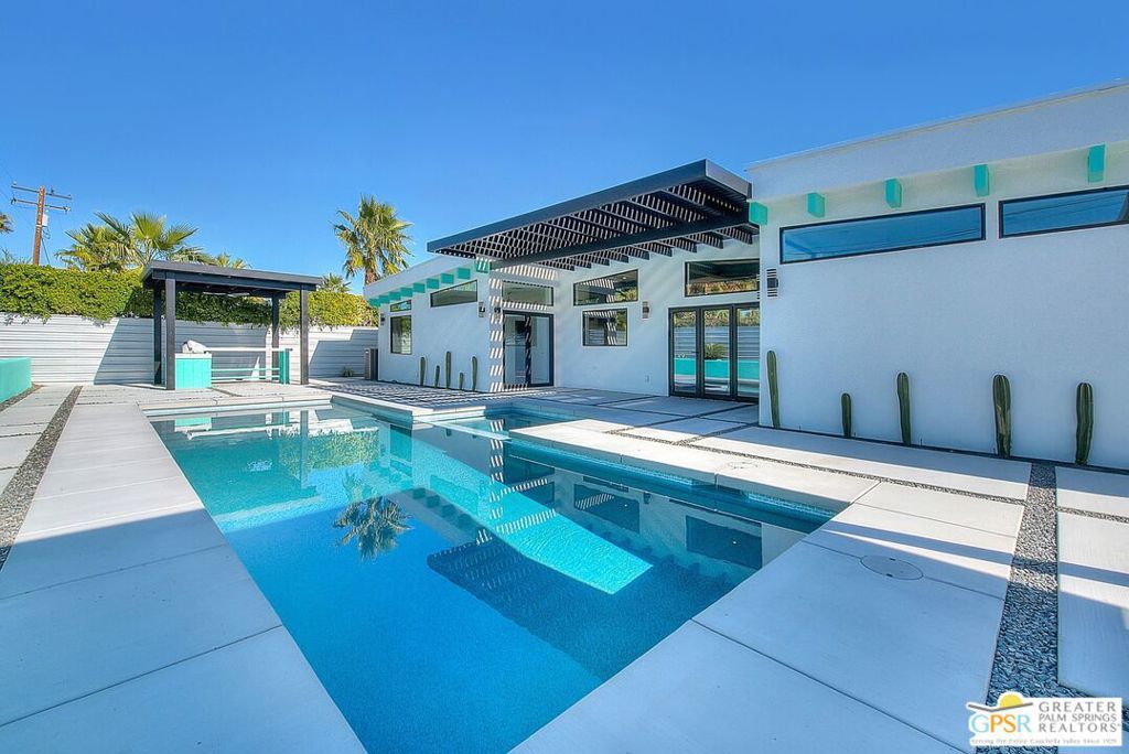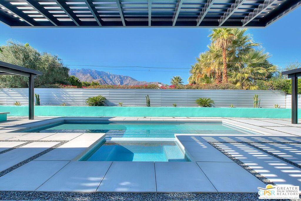 Step inside this gorgeous home and prepare to be impressed. This reimagined William Krisel-designed Alexander beauty truly has that WOW factor. Extensively remodeled and expanded while preserving its iconic mid-century modern architecture, this residence blends architectural pedigree with contemporary desert luxury. Walls of glass and folding patio doors frame dramatic mountain views and seamlessly connect the open-concept interior to the private resort-style backyard featuring a new pool with tanning shelf, spa, outdoor kitchen, and firepit. Highlights include a fully appointed attached ADU, RV parking with hookups, two-car garage, tankless water heater, whole-house water filtration, wine refrigeration, fee-simple land, and no HOA. This rare, turnkey Krisel masterpiece is ready for immediate enjoyment. Call for your private showing.