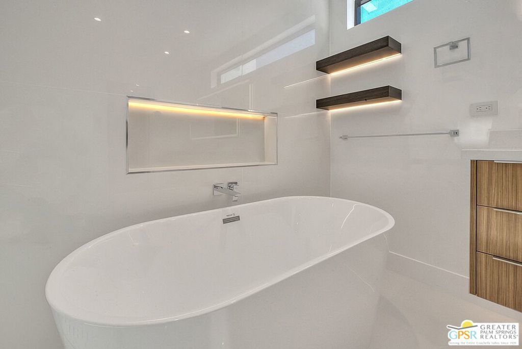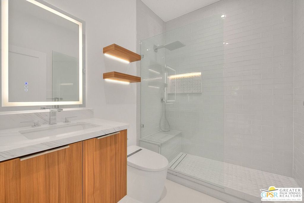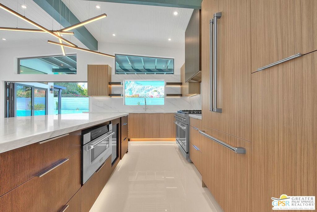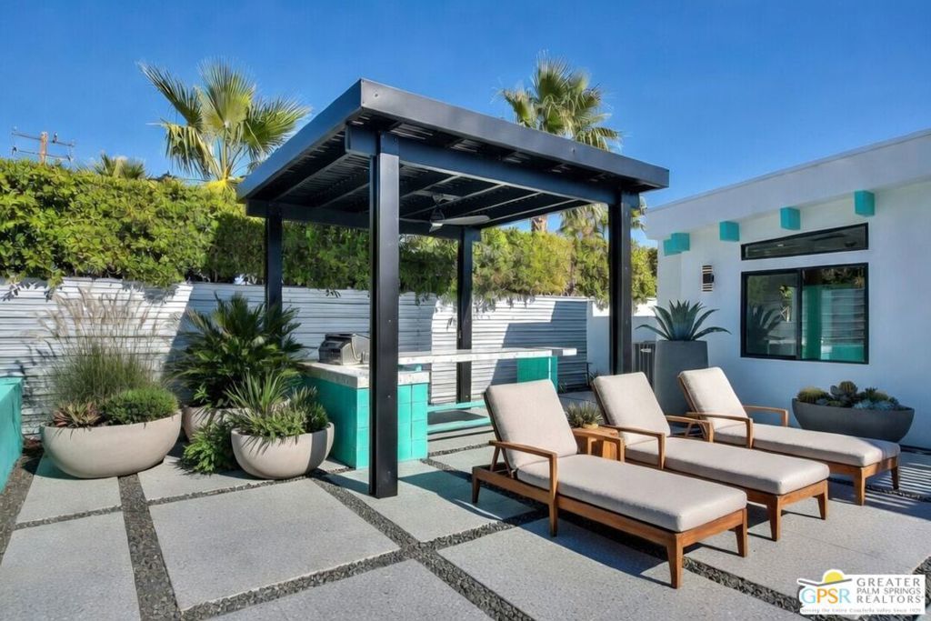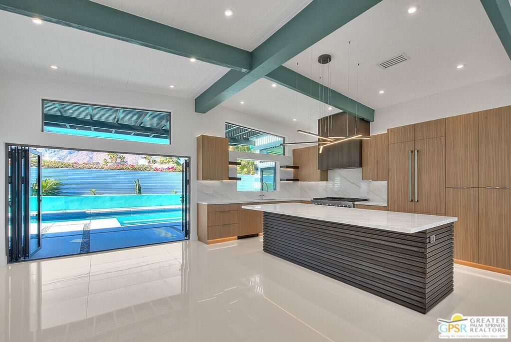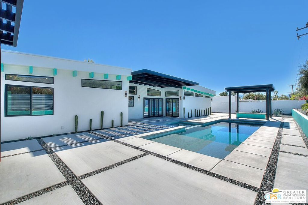 Step inside this gorgeous home and prepare to be impressed. This reimagined William Krisel-designed Alexander beauty truly has that WOW factor. Extensively remodeled and expanded while preserving its iconic mid-century modern architecture, this residence blends architectural pedigree with contemporary desert luxury. Walls of glass and folding patio doors frame dramatic mountain views and seamlessly connect the open-concept interior to the private resort-style backyard featuring a new pool with tanning shelf, spa, outdoor kitchen, and firepit. Highlights include a fully appointed attached ADU, RV parking with hookups, two-car garage, tankless water heater, whole-house water filtration, wine refrigeration, fee-simple land, and no HOA. This rare, turnkey Krisel masterpiece is ready for immediate enjoyment. Call for your private showing.