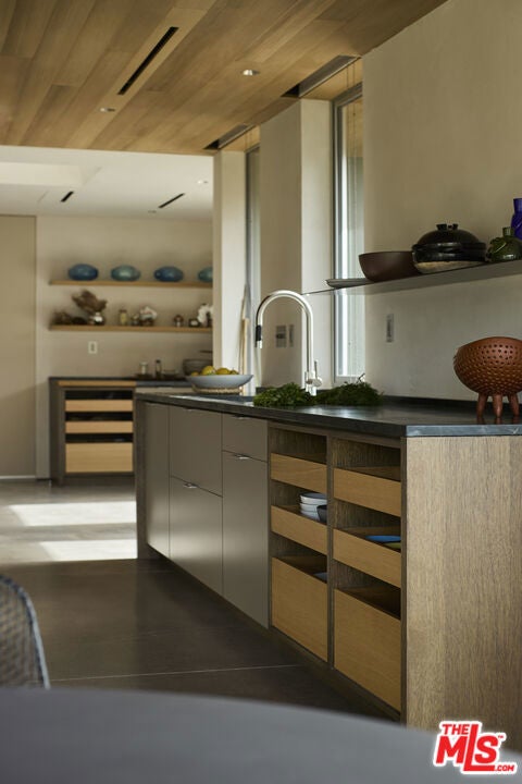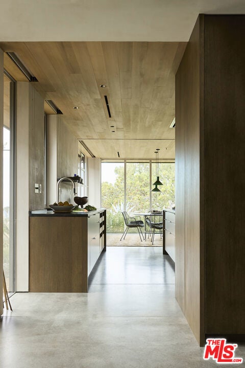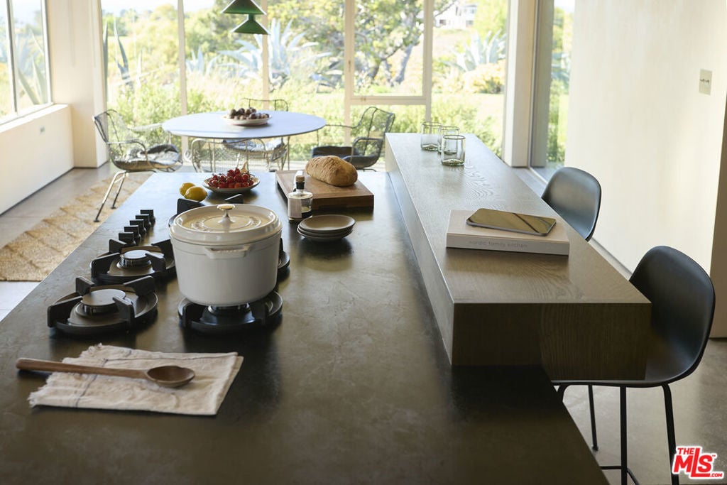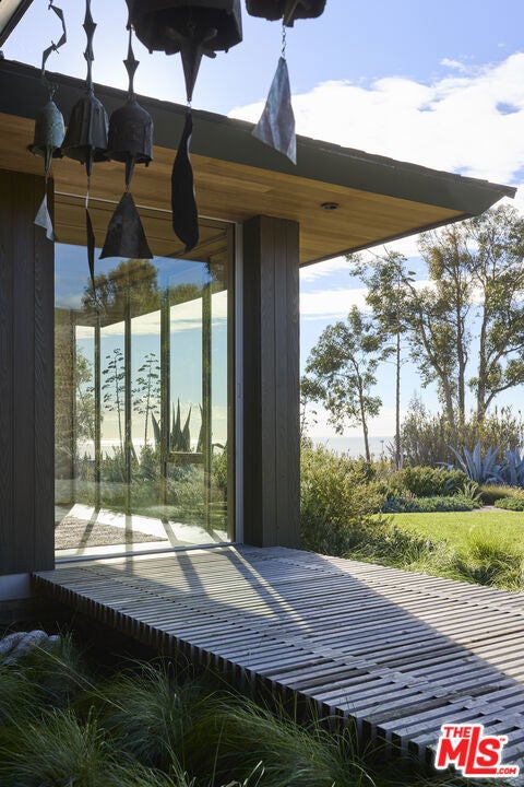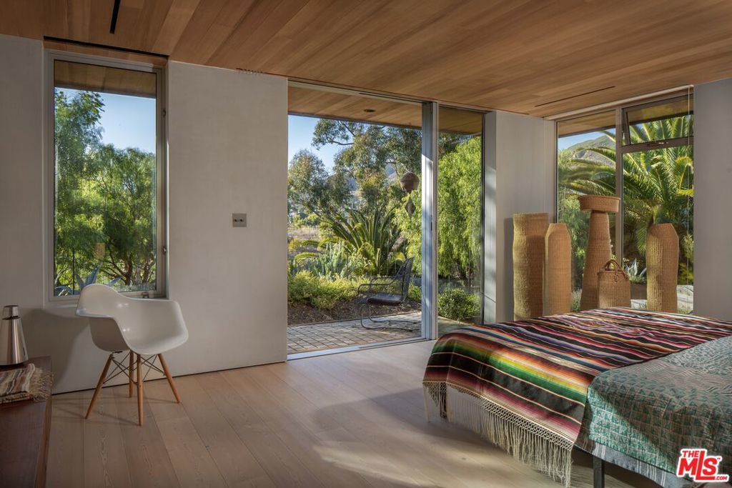 Once the home of legendary landscape designer Jay Griffith, this extraordinary 2-bedroom (plus office and a den) home was rebuilt from the ground up and completed in 2023; a rare achievement that seamlessly honors its mid-century roots while delivering an entirely new level of craftsmanship and intention. Set within park-like grounds that embody Griffith's vision of living in harmony with nature, the home was designed with a singular purpose: to decompress, to quiet the mind, and to reconnect. Creatives feel it immediately. Mature trees, native plantings, and winding garden paths create a lush environment where architecture and landscape feel inseparable. Inside, vaulted wood ceilings and expansive walls of glass flood the interiors with natural light while opening to patios, gardens, and outdoor living spaces that dissolve the boundary between inside and out. Natural clay plaster throughout imparts a warmth and stillness that is rare and immediately felt. Every room is oriented toward the landscape, creating a Zen-like calm that visitors consistently describe as transformative. The craftsmanship throughout is exceptional and deeply considered: handcrafted yellow cedar screen doors offer privacy and gentle separation, handcrafted Japanese tile graces the bath areas, and fluted-glass pocket doors sourced from Italy add an understated sculptural quality. Bath fixtures by Agape and Bang & Olufsen speakers reflect the same commitment to quality without ostentation. At the heart of the home, a beautifully crafted Henrybuilt kitchen anchors the living spaces with sculptural cabinetry and integrated storage, while the informal eating area just off the kitchen creates an intimate, special space to gather and linger. Whitewater ocean views provide a stunning coastal backdrop, while the location places you adjacent to Malibu Equestrian Park, moments from Zuma Beach, and with easy access to the Zuma Ridge and Zuma Canyon hiking trails. Privacy, natural beauty, and the best of Malibu's outdoor life all in one extraordinary offering. Airstream trailer (which can serve as another bedroom or office) is included. A rare lease opportunity for those who understand that the finest homes don't just shelter, they restore.