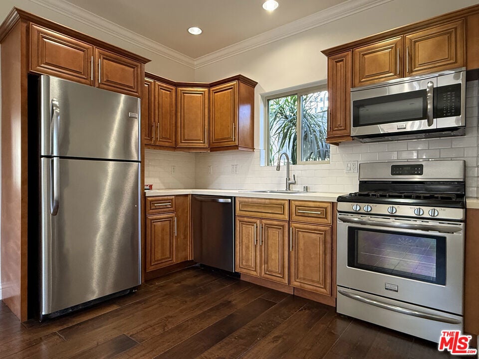 Great Location! Built in 2014, this fully detached ADU offers privacy and comfort with no shared walls. The home features 2 spacious bedrooms and 1 full bathroom across 757 sq ft of well-designed living space. Enjoy hardwood flooring throughout, a modern kitchen with stainless-steel appliances, and the convenience of an in-unit full-size stackable washer and dryer. The home is equipped with central heating and air conditioning for year-round comfort. The property provides gated entry for added privacy and security, along with on-site parking for one vehicle. Additional street parking permits are available through the Los Angeles Department of Transportation (LADOT).Ideally located just minutes from shopping, dining, entertainment, and world-class museums, this home offers the best of Los Angeles living. Available for immediate move-in. Contact us today to schedule a private viewing.