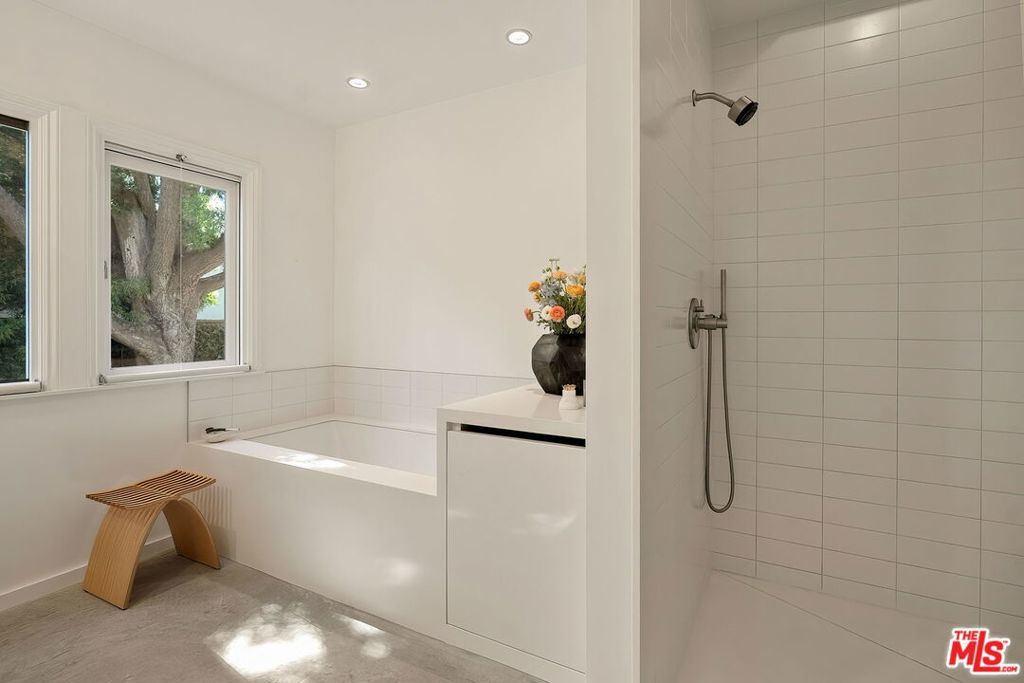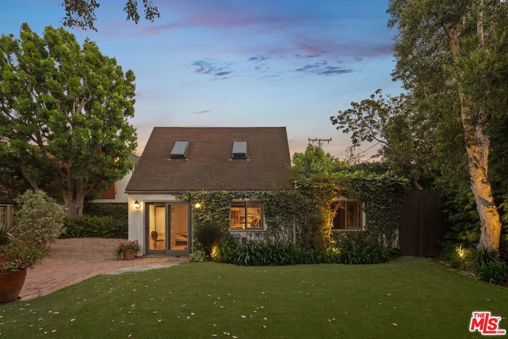 Single-level, Country English, charmer in Gillette Regent Square. This tranquil 3-bedroom, 2-bathroom home has been beautifully updated and meticulously maintained. Approximately 2,620 sqft of living space inclusive of the detached converted garage. A vaulted barrel ceiling gives way to graceful archways as natural light filters through bountiful French windows. Wide-plank European White Oak hardwood floors are appointed throughout the home creating an uninterrupted flow. Thoughtfully designed storage solutions add an element of surprise. A delightful living room with fireplace sits adjacent to the dining room surrounded by French windows; both rooms providing a lovely place to welcome and host guests. The cook's kitchen features stainless steel appliances, walk-in pantry with ample space for a side-by-side washer/dryer, and BBQ patio. The primary bedroom is a sanctuary for rest and relaxation with a walk-in closet and a spa-like bathroom. Enjoy the utmost privacy in the large backyard surrounded by a lush landscape of tall hedges and Eucalyptus trees; the back deck overlooking the expansive green, natural-looking turf, is a perfect place to appreciate Santa Monica's gorgeous weather. The detached garage has been converted to a two-story artist studio with bathroom- great potential for a true guesthouse/ADU. Driveway parking with convenient EV charging station. Franklin School District. This unique one-story home is as enchanting as can be and move-in ready.