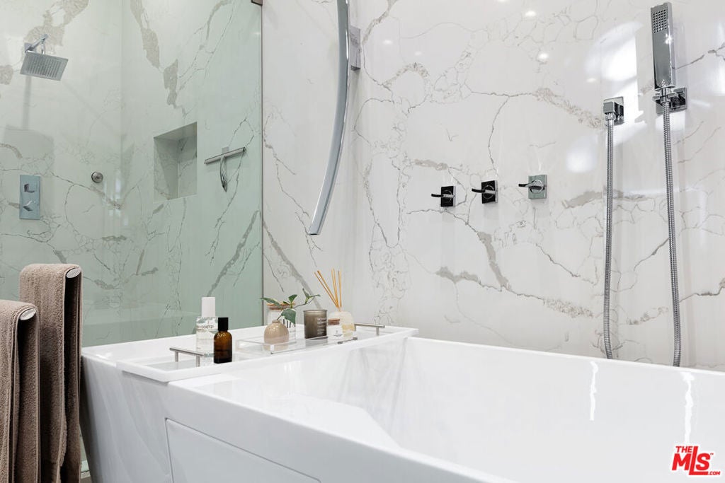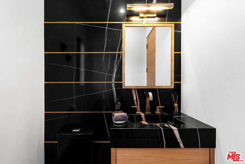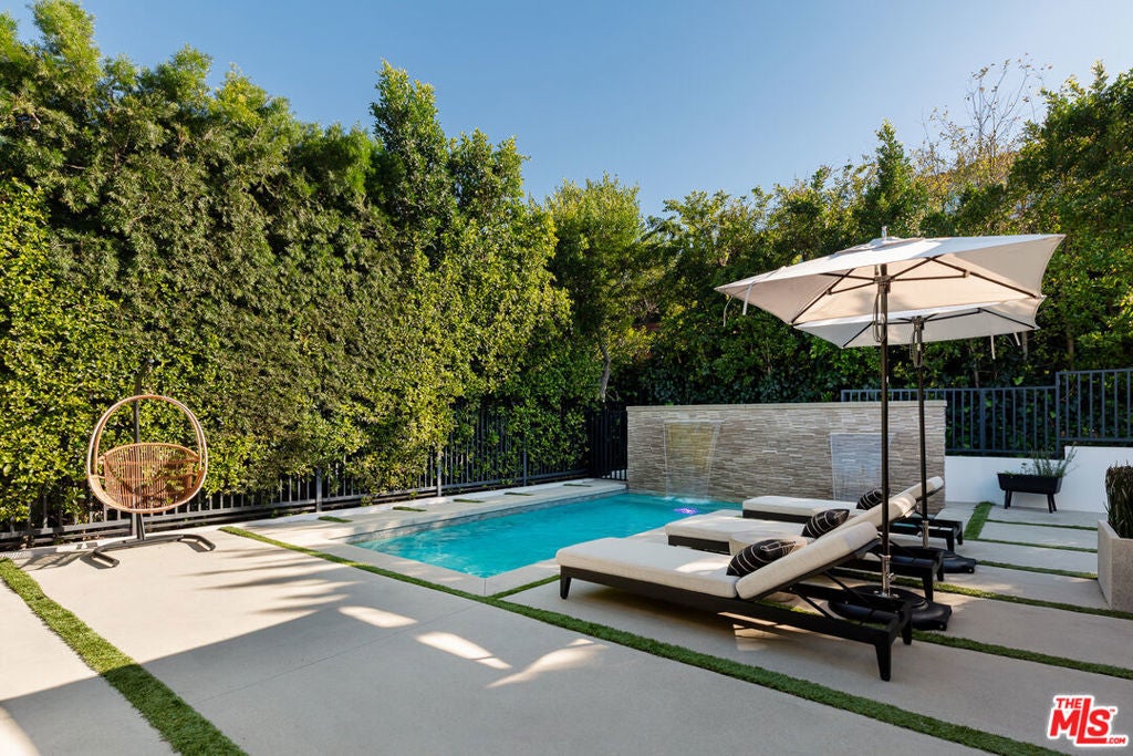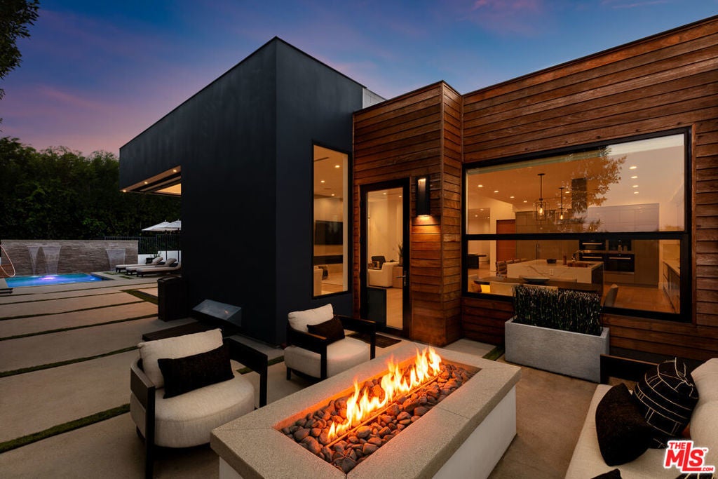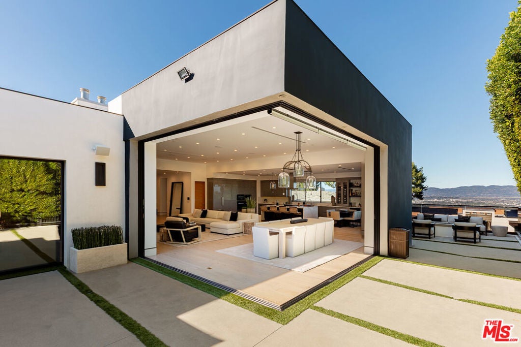 Perched in the fabulous Bel Air Sky Crest community, this NEWLY BUILT contemporary residence offers an extraordinary blend of elegance, privacy, and breathtaking panoramic city views. Thoughtfully designed by acclaimed architect Amit Appel as a rare one-story modern sanctuary, this home redefines luxury living with its impeccable craftsmanship and sophisticated details throughout. Spanning approximately 4,600 sq. ft., the four-bedroom, five-bathroom home features an entertainer's dream kitchen equipped with top-of-the-line Miele appliances, a double oven, side-by-side refrigerator, dual dishwashers, and a spacious walk-in pantry. The eat-in kitchen is enhanced by a sleek Vadara stone breakfast bar, while wide-plank oak flooring and exquisite designer marble create an atmosphere of refined comfort. Designed for seamless indoor-outdoor living, the open floor plan features oversized floor-to-ceiling glass pocket Fleetwood doors, inviting you to your private outdoor oasis. The backyard is a true retreat, boasting a sparkling pool and spa with cascading waterfalls, a cozy fire pit lounge area, and unparalleled views of the city's glittering lights, a perfect setting for both relaxation and entertaining. The large primary suite is a tranquil haven, complete with a fireplace, a spa-inspired ensuite bath, and direct access to the entertainer's yard. Highest quality of finishes and smart home technology make this a house you can move in without touching. Situated in an armed security neighborhood, this impeccably located home provides easy access to Beverly Hills, Bel Air, Brentwood, and the Valley. It falls within the award-winning Roscomare Road Elementary School district and is near LA's top private schools, making it ideal for families. This special property is an incredible value for the quality, location, and so much more...