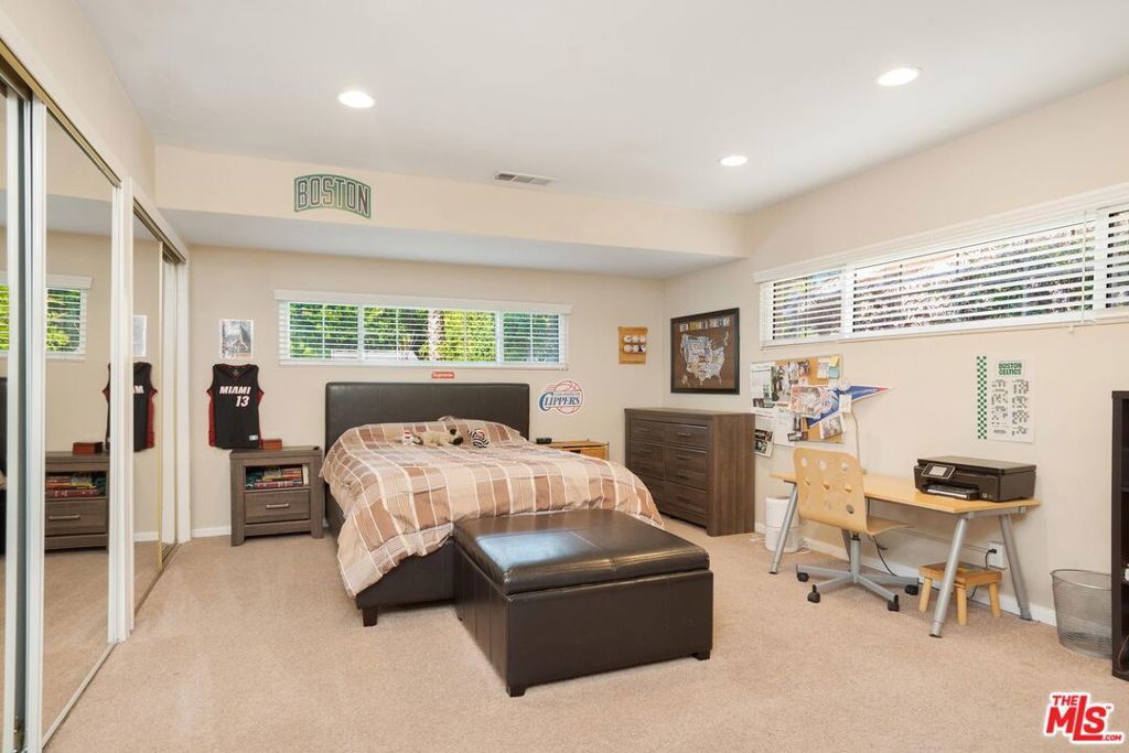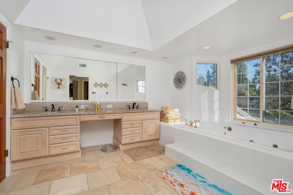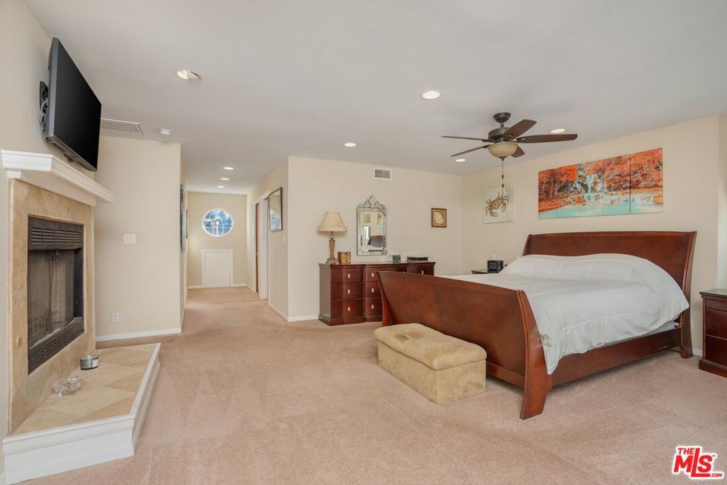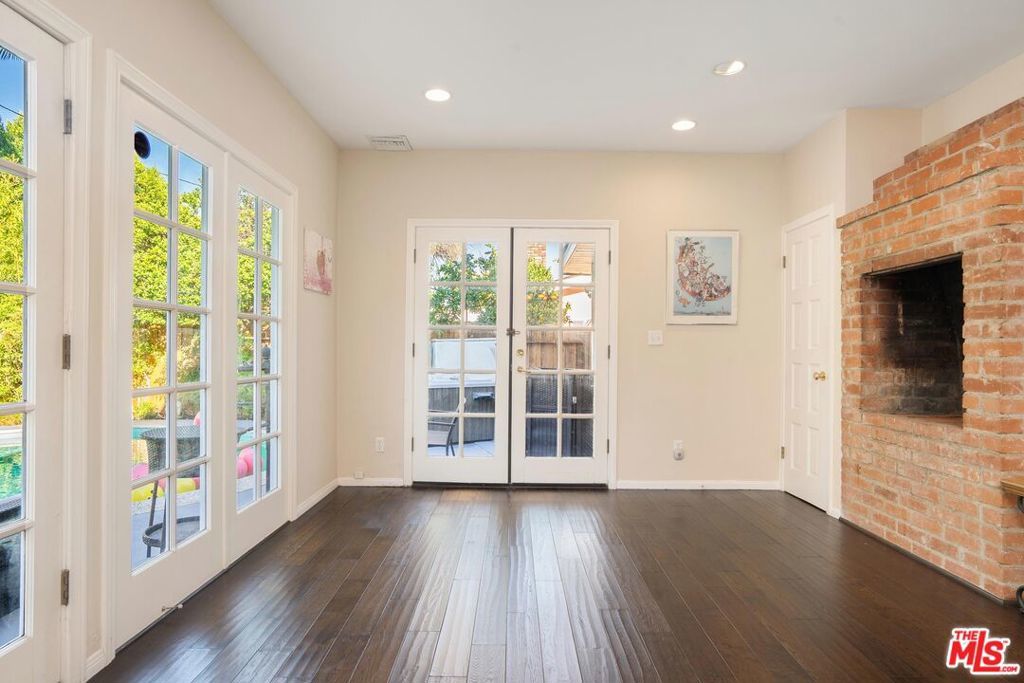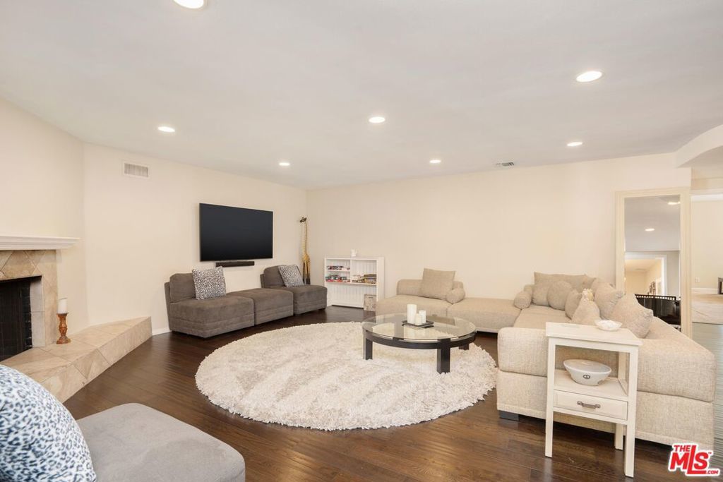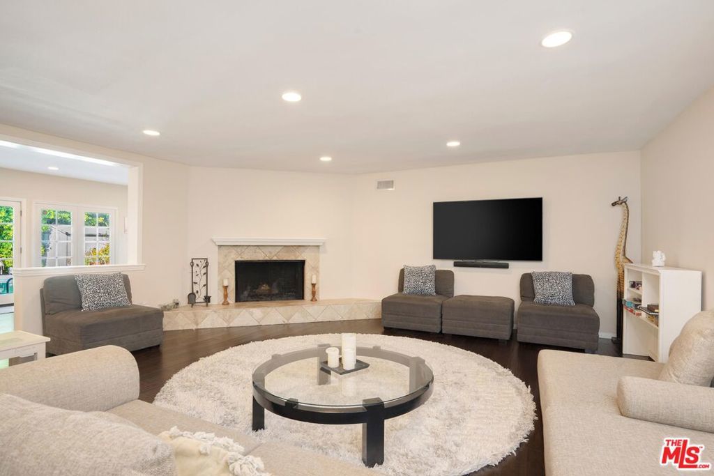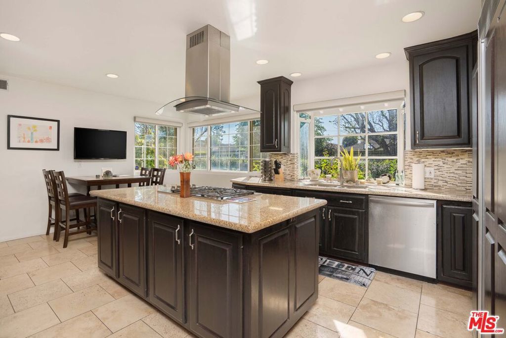 Welcome to this beautifully updated and spacious 5BD/4BA home, ideally located in one of Encino's most desirable pockets. A gated, lushly landscaped front yard with mature fruit trees including bananas, avocados, peaches, and plums as well as a herb and rose garden, sets the tone as you arrive, leading to a grand double-door entry. Inside, the formal dining room flows seamlessly into the inviting living room, complete with a fireplace and French doors that open to the backyard, creating the perfect indoor-outdoor lifestyle. The eat-in chef's kitchen is designed for both function and style, featuring a large center island, granite countertops, and abundant cabinetry and prep space. The entire upper level is dedicated to an impressive primary suite, offering exceptional privacy and comfort. This retreat includes a cozy fireplace, private balcony, bonus lounge area with sink and storage, dual closets, and a spa-inspired bathroom with a separate tub and shower. Four additional generously sized bedrooms complete the home, including one with its own private entrance and yard, ideal for guests, extended family, or a home office. The resort-style backyard is perfect for entertaining, showcasing a sparkling pool, above-ground spa, and ample space to relax or host. Additional highlights include a brand new electrical panel and an attached two-car garage. Located within the highly acclaimed Hesby Oaks Charter School district and just moments from the dining and shopping along Ventura Boulevard, this is Encino living at its finest.