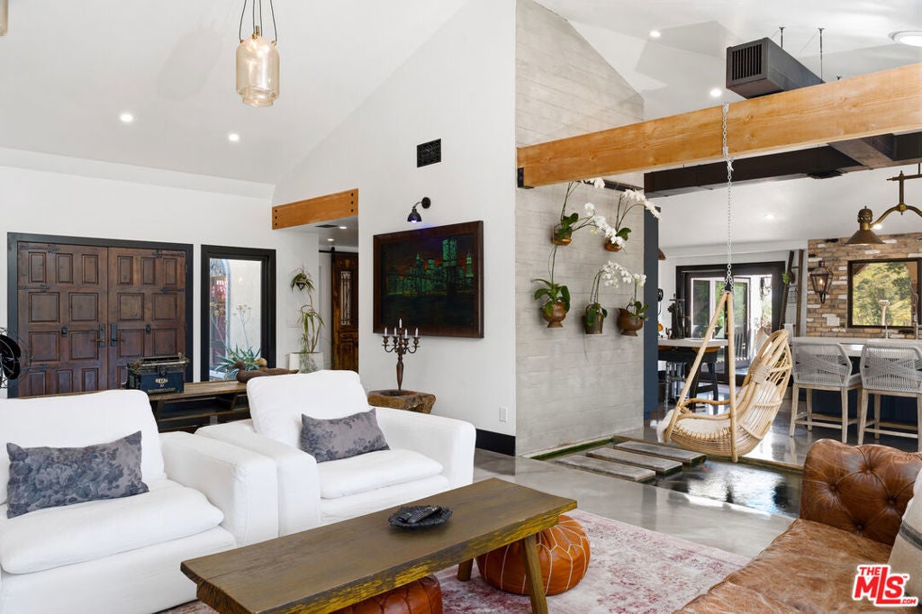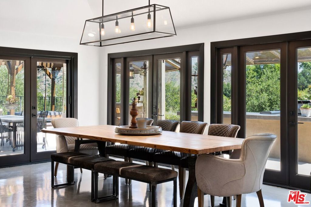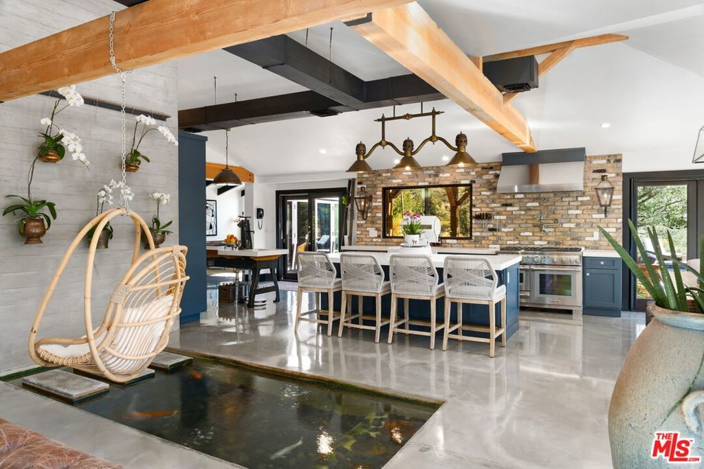 Set within the pristine landscape and rolling hills of Orange County, this exquisitely designed estate is perched atop a private knoll, unfolding across 1.2 acres and capturing sweeping vistas of Santiago Oaks Regional Park and its undulating canyon terrain. A study in quiet luxury, the property reflects a refined interplay between architecture and nature, where every element is thoughtfully composed to evoke both serenity and sophistication. A sequence of warm, textural interiors reveals itself through an open, flowing floor plan designed for effortless living. At the heart of the home, an artisan-crafted koi pond serves as a striking architectural centerpieceboth sculptural and meditativeanchoring the surrounding living spaces.The main living areas - kitchen, dining, and lounge - are unified by a sense of airiness and intentional design, equally suited for intimate moments and elevated entertaining. The chef's kitchen is a masterclass in form and function, appointed with sleek quartz surfaces, premium stainless-steel appliances, a Thermador double oven and range, a built-in espresso system, and a generous island that acts as the home's social hub. Four spa-inspired bathrooms offer a curated retreat, each finished with bespoke fixtures and tactile materials that balance beauty with everyday comfort.Outdoors, the estate transforms into a private resort experience. A fully equipped alfresco kitchen and entertainment pavilion, personal vineyard, bocce court, and multiple lounge areas are thoughtfully arranged around a pristine pool and spa, each vantage point designed to frame the surrounding canyon's natural drama. Fireplaces throughout the grounds extend the ambiance into the evening hours, while an infrared sauna and outdoor shower introduce a layer of wellness-driven living.Additional highlights include a concrete tile roof, a fully owned solar system, and a whole-home water-softening system, completing a residence that is as functional as it is artfully conceived. The property is moments away from the Santiago Oaks Canyon park and hiking trails.