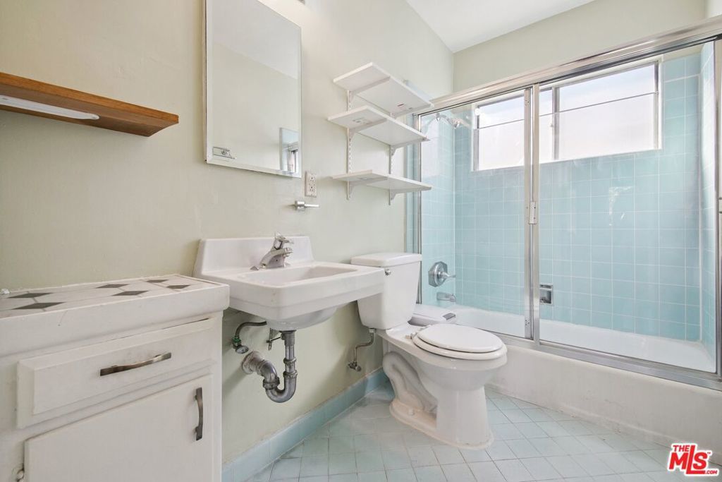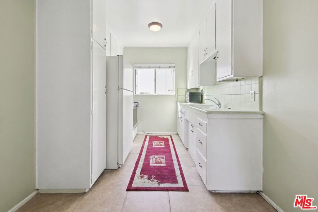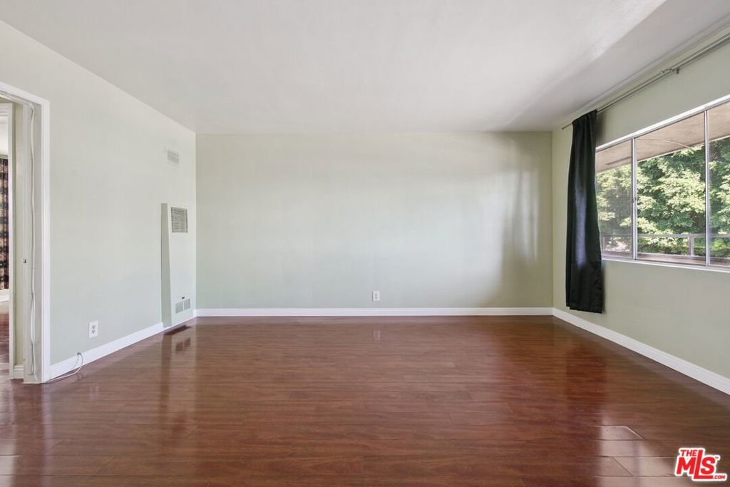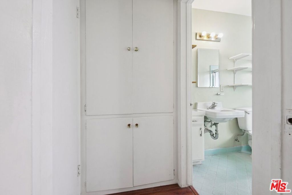 This top-floor unit is the quintessential Hollywood apartment, with modern updates like wood flooring, paired with a vintage 1950s bathroom that's been well preserved with time. This spacious one bedroom, one bathroom apartment features an extra large living room, a coat closet, and the charm of original built-in storage in the hallway. The kitchen features a double sink, 4-burner range with oven, and a refrigerator with freezer, as well as an adbundance of upper and lower cabinetry for storage. A dedicated dining area is located between the kitchen and living space, and windows on both sides of the unit provide natural light with treetop views. The generously sized bedroom and full bathroom are located off the living space, separated by a small hallway and door that can be closed for added privacy. The bathroom features beautiful blue tile, a shower-over-tub combination, a built-in storage cabinet, and floating shelves. A conveniently located community laundry room can be found on the first floor, and each unit has their own private mail box. Situated on a corner lot surrounded by single-family homes and the local police station, this quaint two-story complex offers just 13 units. In an unbeatable location in the heart of Hollywood, just two blocks from Sunset Blvd, and hot spots like Iki Nori, Superba, and Mother Wolf! You can grab coffee at Groundwork, catch a show at the Hollywood Palladium, and get groceries at Trader Joe's - all without leaving your neighborhood! Convenient access to the Metro and 101 freeway makes it easy to commute or explore all that LA has to offer! Available for immediate move-in.