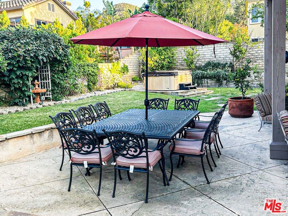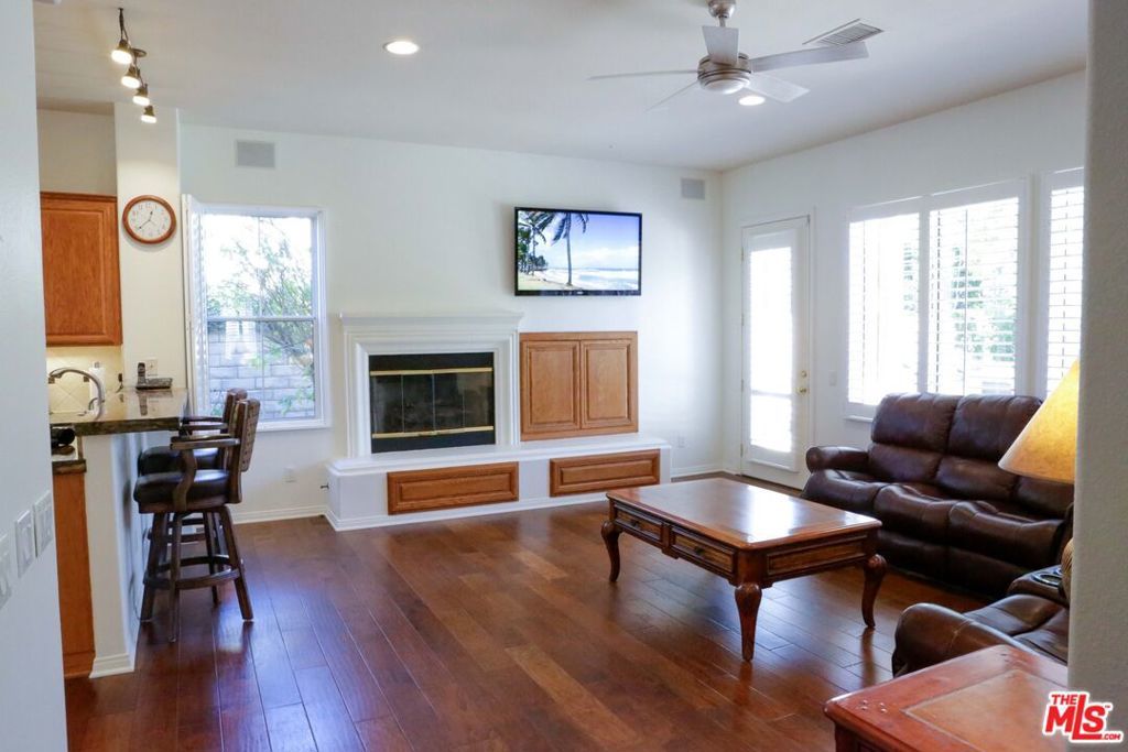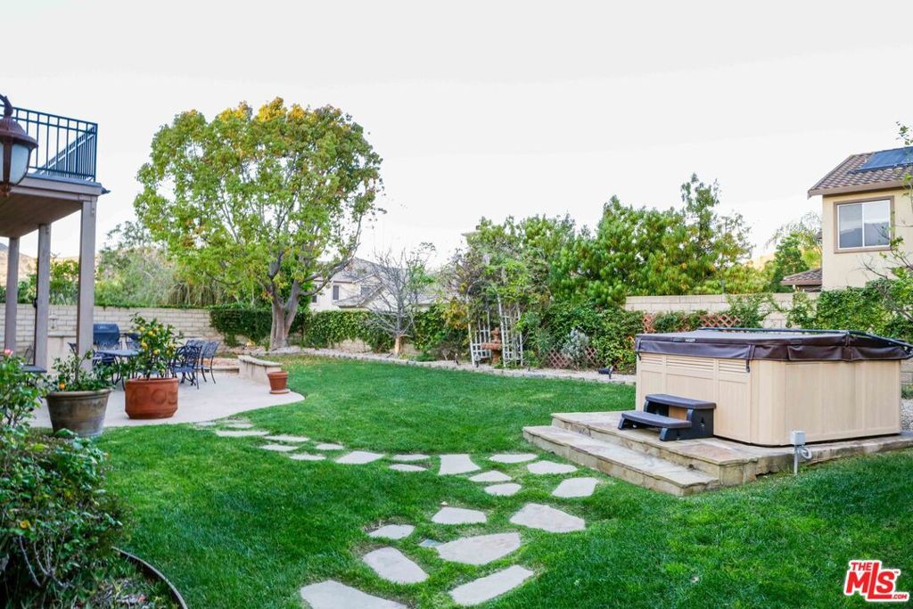 Nestled within the highly desirable Dos Vientos community of Newbury Park, this beautifully maintained residence offers a rare opportunity to own a home that seamlessly combines spacious living, flexible design, and exceptional outdoor lifestyle amenities. Set on a larger, highly usable lot an increasingly scarce feature within the community the property delivers a unique balance of comfort, functionality, and outdoor enjoyment.The residence offers approximately 3,457 square feet of living space, featuring 4 bedrooms, 3 bathrooms, and a versatile den/office that can function as a fifth bedroom, providing flexibility for a variety of lifestyle needs. Brand new forced air heating and central air conditioning units (dual system) have recently been installed, providing added peace of mind and long-term value for the new owner.Inside, the home features rich Hickory wood flooring and thoughtfully designed built-in elements throughout. The lower level has been freshly repainted in a clean white palette, creating a bright and contemporary atmosphere that enhances natural light. Large windows throughout, dressed with custom plantation shutters, contribute to an open and airy environment while providing privacy and light control in every room.The layout offers a seamless flow between the kitchen, dining, and living areas, enhancing both everyday living and entertaining. The kitchen includes granite countertops, built-in appliances, generous cabinetry, a walk-in pantry, and a spacious center island, opening to the family room with fireplace and built-ins.Upstairs, the primary suite offers a private retreat with a coffered ceiling, abundant natural light, and direct access to a private balcony. The suite includes a walk-in closet with custom cabinetry, along with a spacious bath featuring dual vanities, a walk-in shower with seating, and an independent spa tub. Additional bedrooms also include custom closet cabinetry. A spacious upstairs bonus area with built-ins provides flexibility for a home office, media room, or additional living space. A dedicated laundry room with cabinetry, counter space, and utility sink adds convenience.Outdoor living is where this property truly distinguishes itself. The backyard offers multiple well-defined spaces for entertaining and everyday enjoyment a feature not commonly found within the community. A covered patio provides an ideal setting for outdoor dining, complemented by a built-in BBQ, expansive seating areas, and a relaxing outdoor spa. The yard features a generous flat lawn, mature landscaping for added privacy, garden pathways, and additional space for recreation or quiet retreat. A side yard offers flexibility for a potential dog run or garden expansion, while citrus trees and curated greenery enhance the outdoor experience.Front and rear patios, along with elevated balconies, provide multiple vantage points to enjoy the surroundings. Automatic awnings on the front patio and rear balcony offer adjustable shade and year-round comfort. Additional highlights include a three-car garage with flexible potential for a home office, gym, or storage, an integrated sound system, and mature landscaping that enhances curb appeal.Located near parks, hiking trails, and highly regarded schools, this home presents an exceptional opportunity to enjoy spacious living and outdoor amenities in one of the Conejo Valley's most sought-after communities.