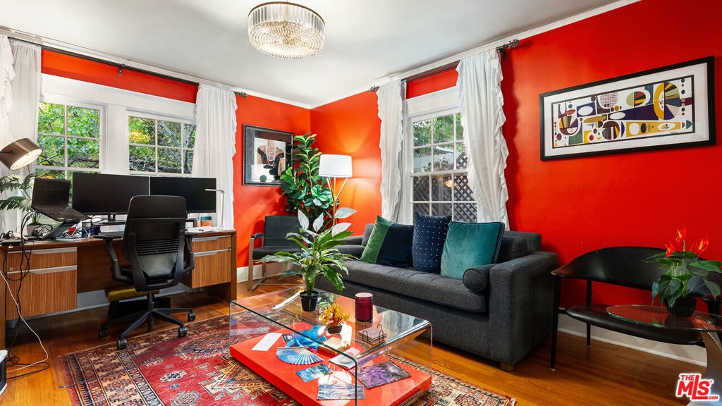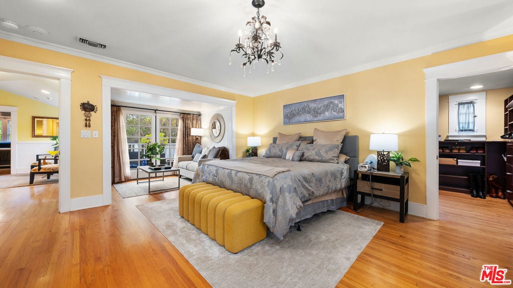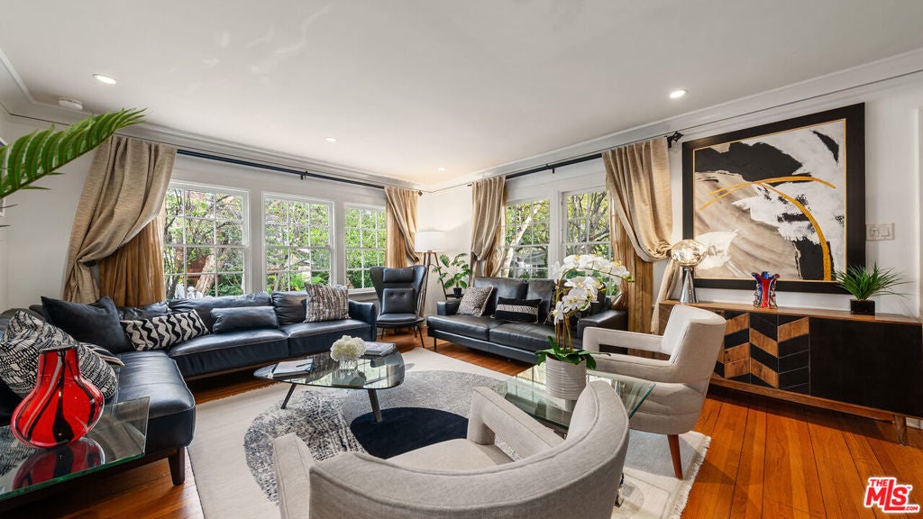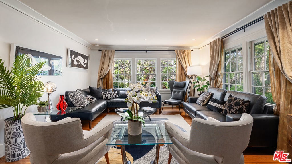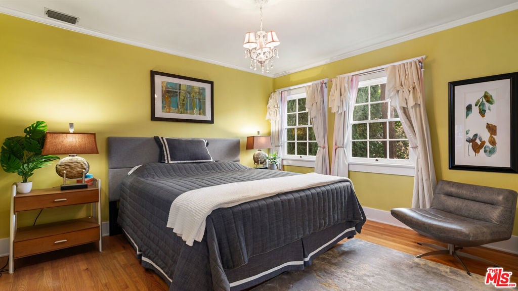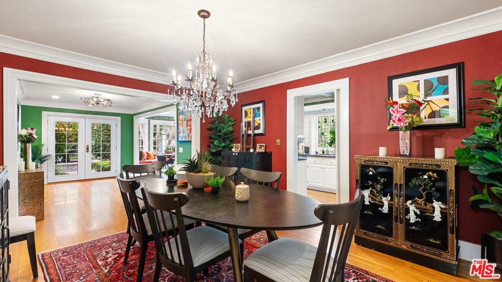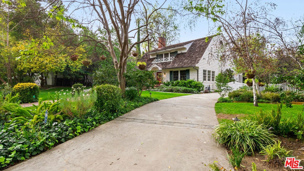 Welcome to this charming cottage-style home in the heart of Glendale Woodlands Area spanning over 4,000 square feet, this residence offers a traditional layout with 4 bedrooms and 3.5 bathrooms. Elegant crown moldings, a cozy fireplace, and seamless flow into the family room highlight the home's inviting character. The formal dining room, anchored by a statement chandelier, connects to a chef's kitchen equipped with ample storage, granite countertops, a Sub-Zero refrigerator, and a WOLF range. For more casual gatherings, the entertainment room opens through French doors to a lush backyard retreat. The spacious primary suite features its own set of French doors leading outside, a generous walk-in closet, and a spa-like bathroom. Three additional bedrooms and two bathrooms complete the home's interior. Step outside to a resort-style backyard, where a sprawling patio, flat grassy area, sparkling pool, and relaxing jacuzzi create the perfect oasis for entertaining and unwinding.