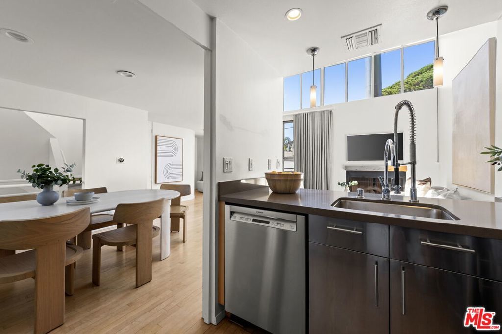 A rare opportunity to own a significant architectural gem in the heart of Santa Monica. Designed by Tossman/Weisman & Associates, this stylish three-story townhome is full of light and creative design details. Step inside to discover 1890 sq feet, including 2 bedrooms and 2 baths, an open floor plan, double height floor to ceiling windows, hardwood and travertine floors, and a third floor loft. The reverse floor plan provides the 2 bedrooms on the first level with plenty of privacy. The primary bedroom, a sanctuary of comfort and form, includes a generous walk-in closet and en-suite bathroom with dual sinks. The en-suite guest room includes its own private terrace, further elevating the Southern California experience. As you enter the main living area, located on the second floor, marvel at the architectural elements, including 18 foot ceilings complimented by an abundance of natural light streaming through a wall of glass. Just off the living room is yet another terrace, providing more opportunities for extending the indoor/outdoor experience. The open kitchen layout boasts stainless steel appliances and seamlessly flows into the dining area, creating a wonderful space for entertaining. On the third level you will find a loft, which is perfectly suited for a home office or media room, adding even more versatility to your living space. In addition to the wonderful indoor living spaces this unit also features an exclusive rooftop deck with panoramic views of both city and mountains, perfect for enjoying a quiet sunset or entertaining family and friends. 2 side by side parking spaces are also included. Nearby, you have multiple restaurants and grocery stores, including Erewhon and Milo & Olive.