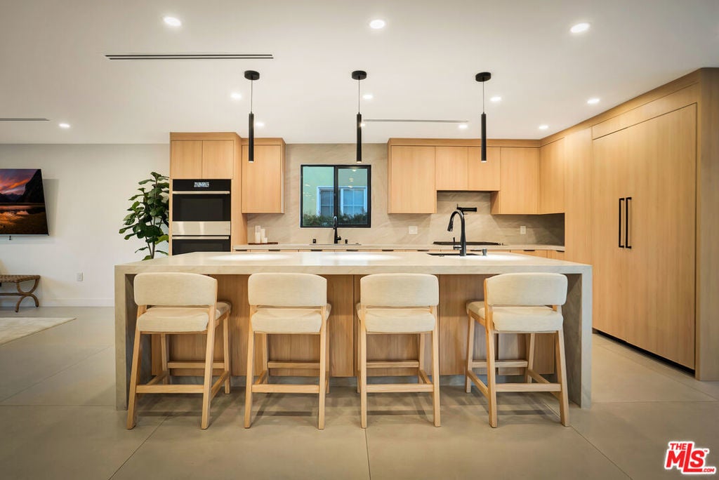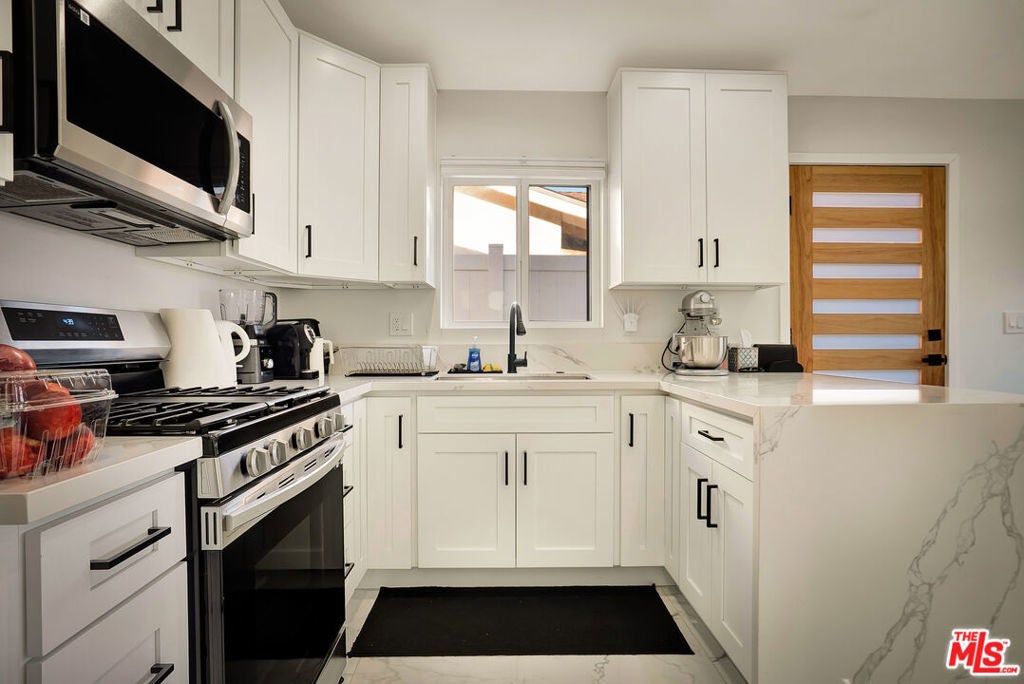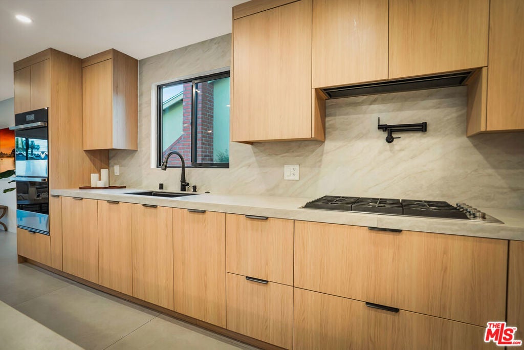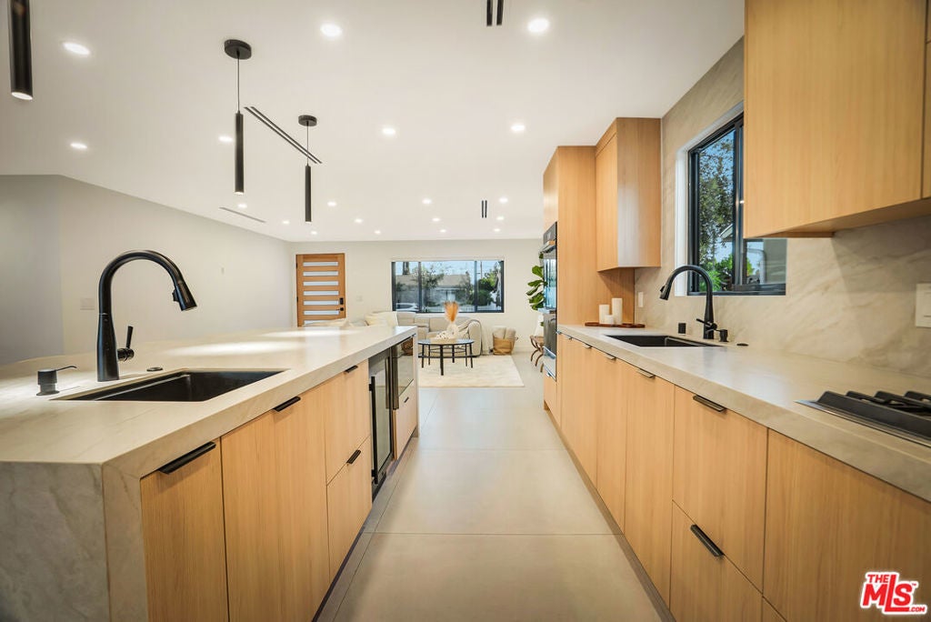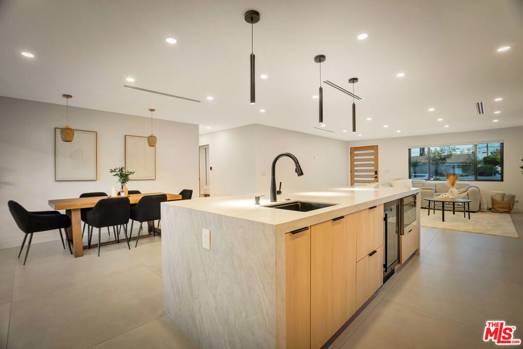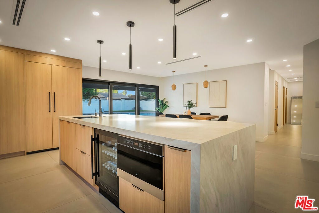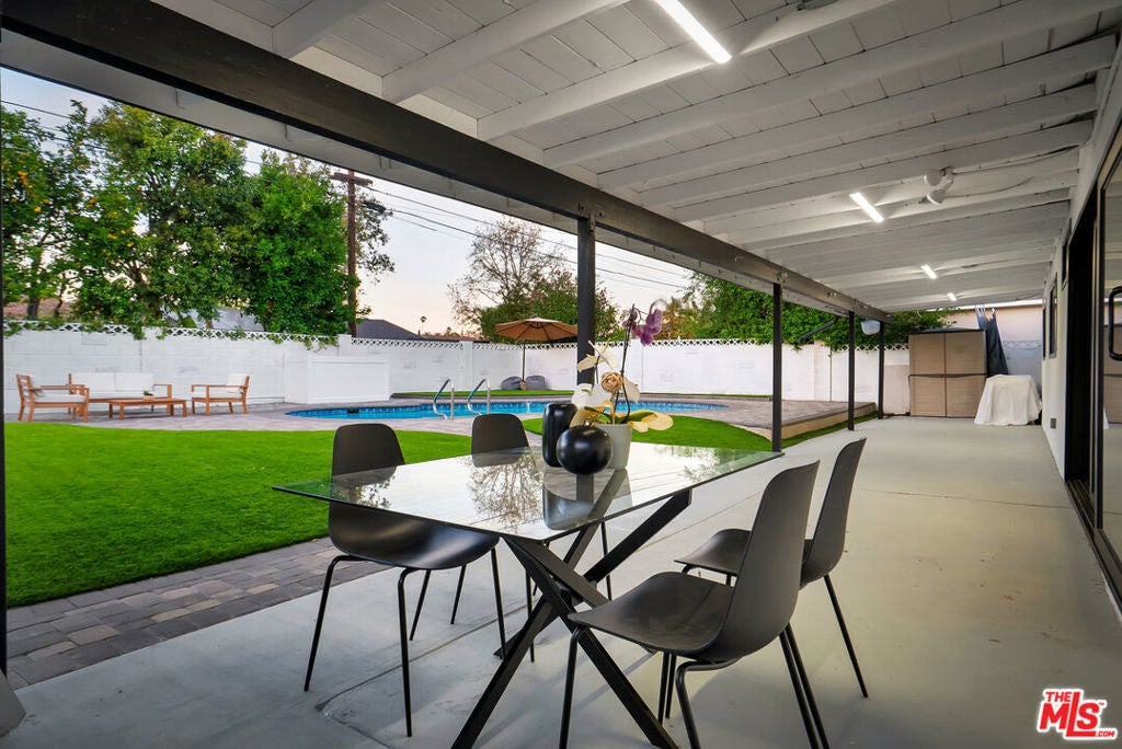 Welcome to one of the most beautiful homes in West Hills. This completely remodeled and thoughtfully redesigned 4-bedroom, 2-bathroom residence is situated on a highly sought-after, quiet, tree-lined street. Blending modern style with everyday functionality, the home offers stunning open-concept layout filled with an abundance of natural light. At the heart of the home is a custom-designed kitchen featuring brand-new high-end appliances, sleek custom cabinetry, and a striking waterfall island that anchors the space, perfect for both everyday cooking and elevated entertaining. The seamless flow between the kitchen, dining, living, and outdoor areas creates an inviting environment ideal for gatherings of any size. Step outside to a private entertainer's backyard designed for year-round enjoyment. Highlights include a covered patio great for outdoor dining and lounging, a sparkling pool, and a low-maintenance synthetic grass yard, all enhanced by ambient lighting that transforms the space into a warm and inviting evening retreat. The property also features a huge front yard and a spacious paved driveway, offering ample parking for multiple vehicles. The home has been extensively upgraded with newer windows, doors, HVAC, plumbing, electrical panel, LED lighting, flooring, and much more. Adding incredible versatility and value is the detached 1-bedroom, 1-bathroom ADU ideal for extended family, guests, a home office, or income-producing potential. Located just minutes from top-rated schools, parks, shopping, dining, and convenient freeway access, this exceptional property offers the perfect combination of comfort, style, and flexibility in one of West Hills' most desirable neighborhoods