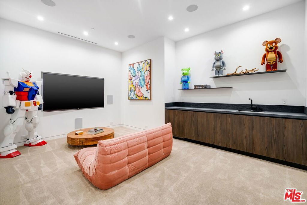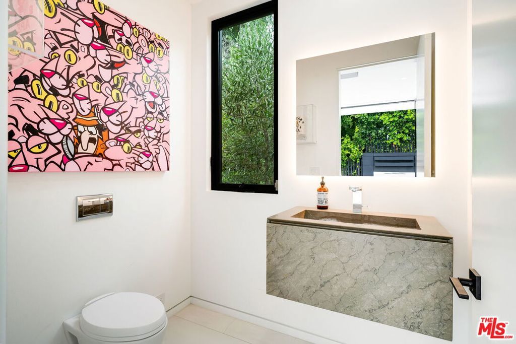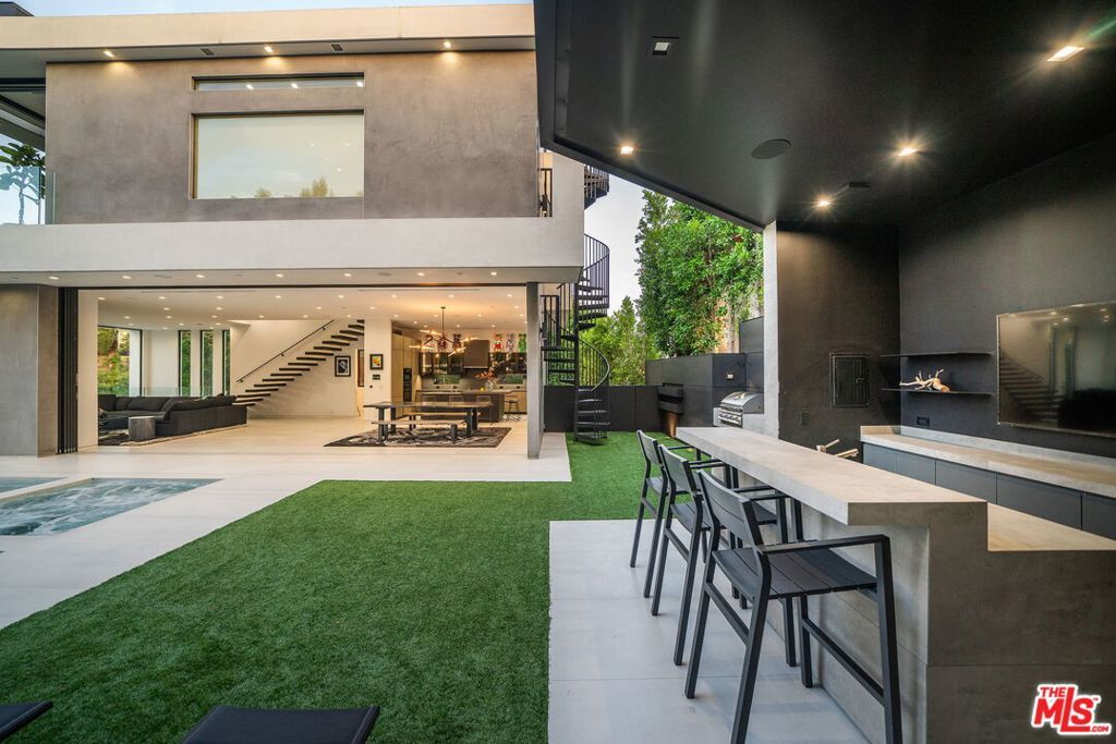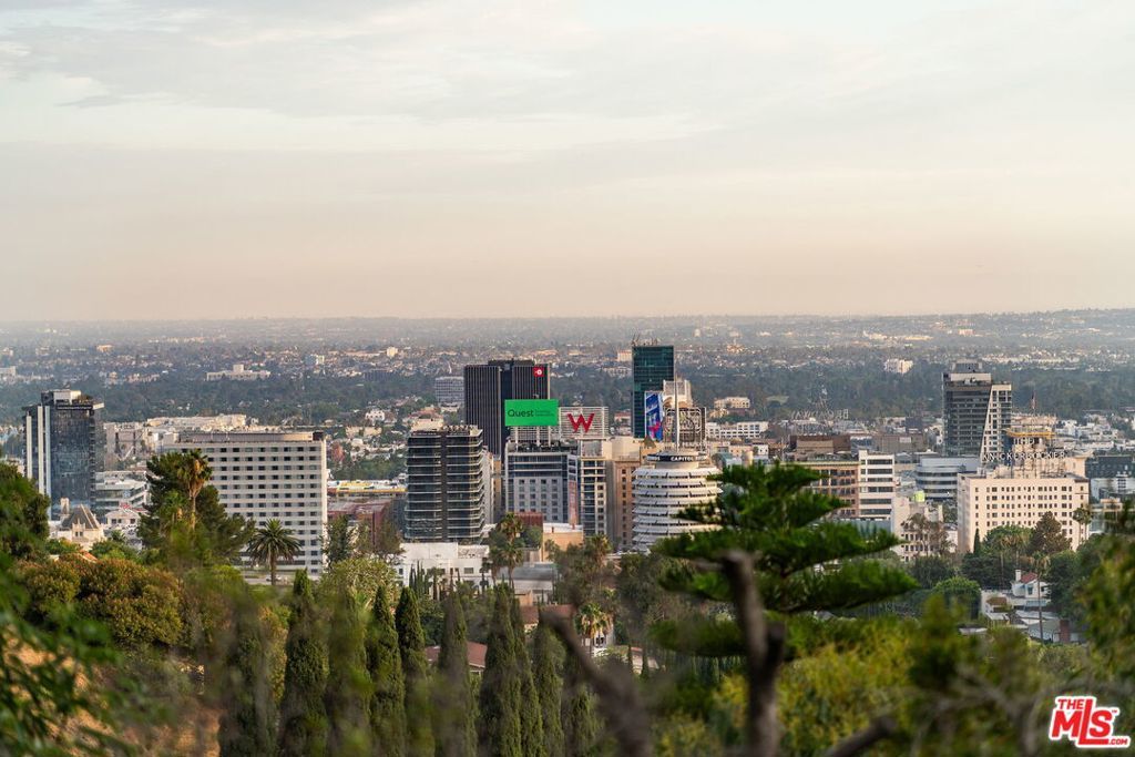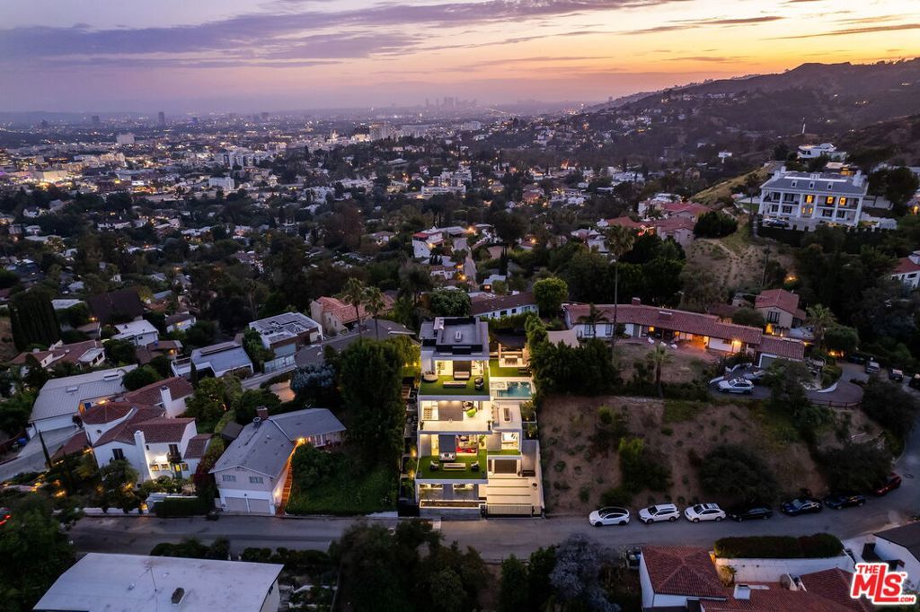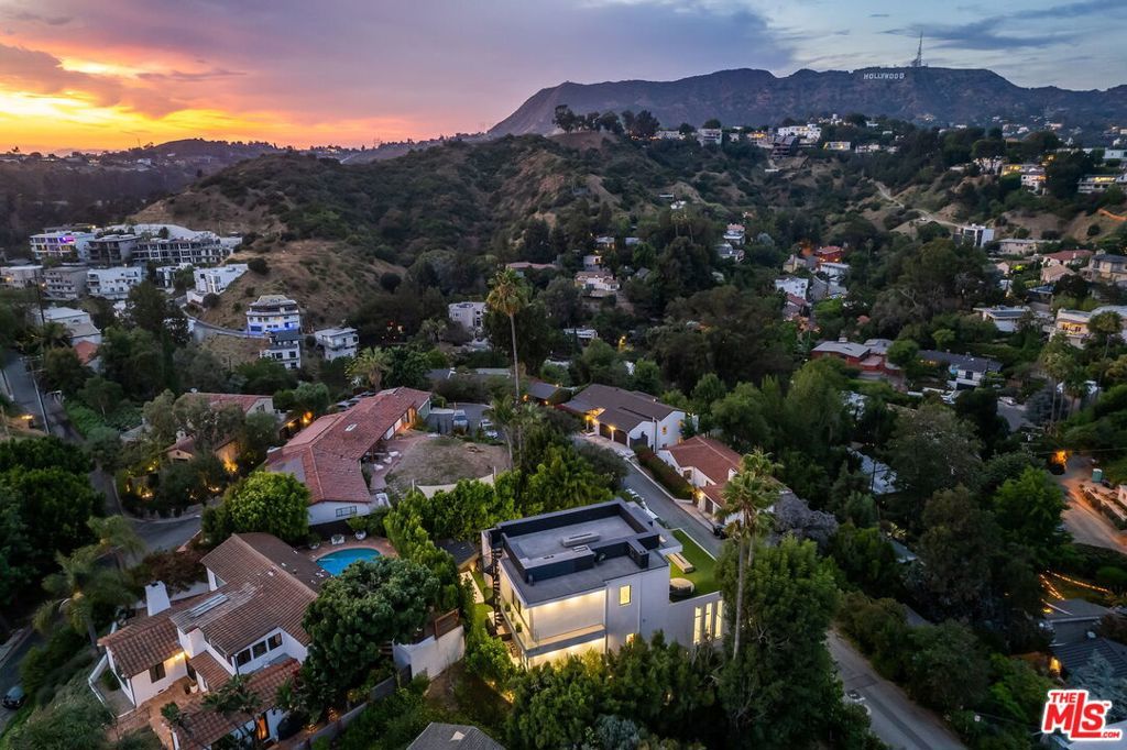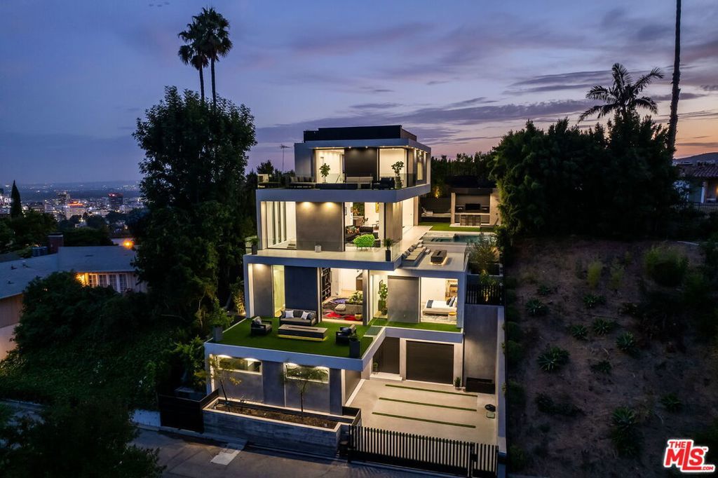 This multi-tiered modern sited hillside home embraces the Hollywood/Beachwood area with full advantage of the city lights and scene stealing views of the Hollywood Hills iconic signage. Constructed in 2019, this homes meticulously planned architectural design maximizes natural light and has features of a height grand great room, open concept living with full floor to ceiling windows, complete with access to indoor/outdoor extensive entertaining grounds. The Chef's kitchen, includes, leather countertops, Italian porcelain floors, Miele appliances, and a sizable island with suitable seating. The great room opens to a relaxing atmosphere where you can swim in the in-ground pool, spa, and dine in the outdoor kitchen with an exterior powder room for you and your guests to relax and enjoy. The private primary suite has a lounge, private deck with it's own fire pit, and night life views with dual bathrooms featuring Porcelanosa vanities, Poliform closet, a grand soak-in tub with a separate steam shower. An additional feature includes an elevator which purposely brings you to every floor of your choosing while rounding out this unique interior with features of multi level patios, decks for private gathering spaces, and repurposed speak easy outdoor living with an abundance of low maintenance turf! There is a temperature controlled wine room, 2 garages: (1) 2 car garage, and (1) 1 car garage with 2 exterior parking spaces allowing for a total of 5 parking spaces on property. Completing the amenities is a Control 4 system which allows you to personally control the home with complete ease. If you want more, there is more! There is a roof top deck with 270 degree views, outdoor fire pit, complete with a kitchen allowing for an abundance of Hollywood Sunsets! This is the best the Hollywood Hills has to offer and you must preview to witness how you can make this your own!