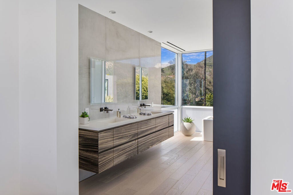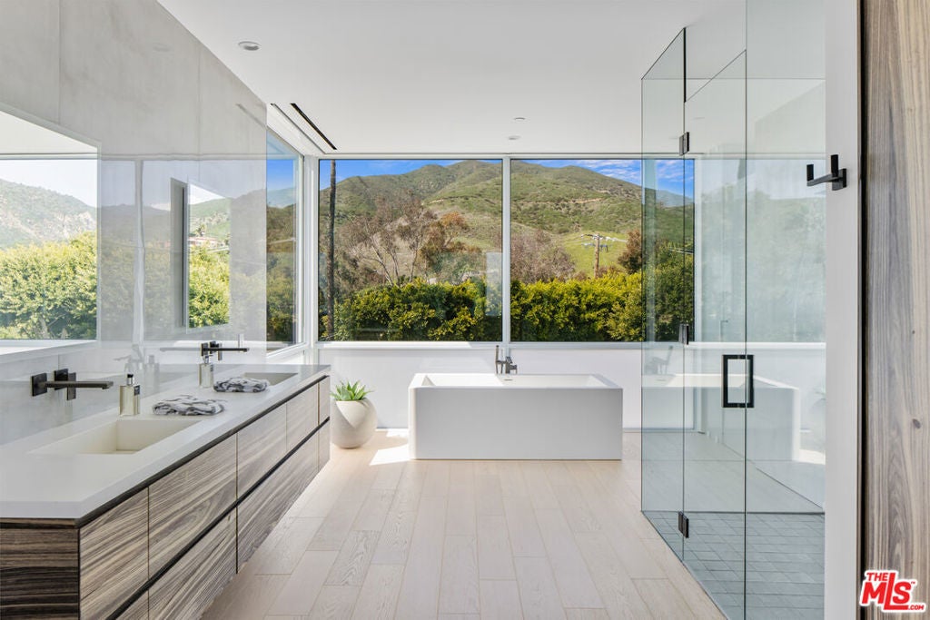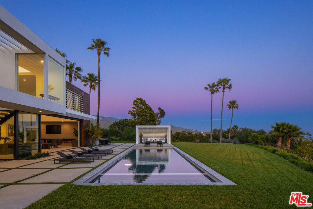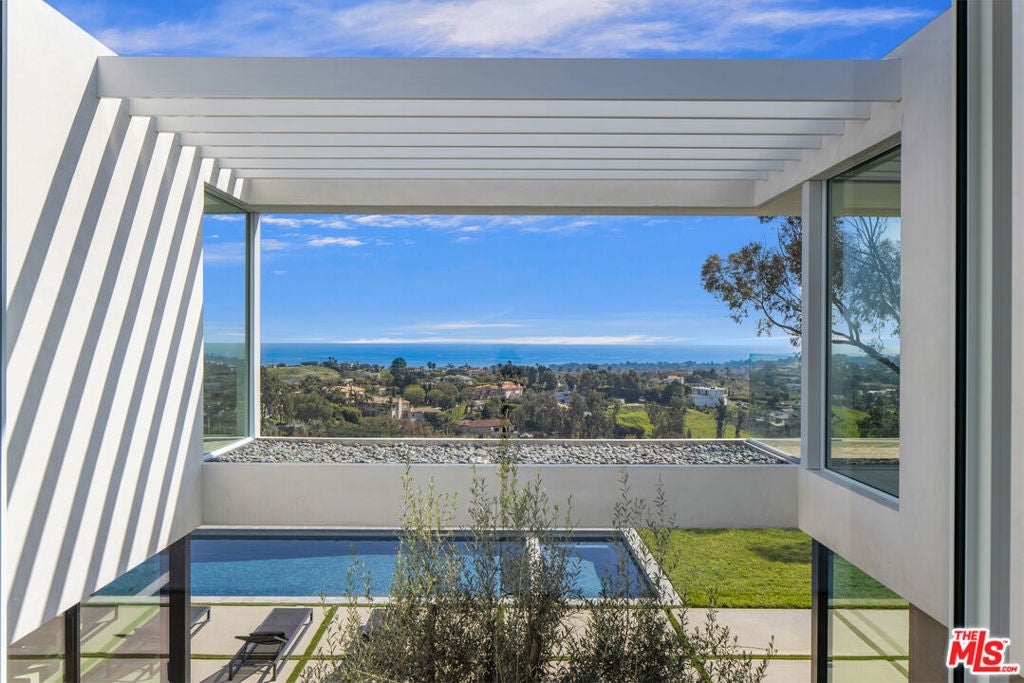 Nestled on a serene 2.8 acre bluff overlooking the Pacific Ocean, this architectural masterpiece epitomizes coastal luxury. Newly completed and designed by renowned architect Steven Kent, this 5-bedroom, 5.5-bathroom residence offers unparalleled privacy and breathtaking ocean views. Step into sophistication as you're greeted by a meticulously crafted interior, where an expansive double-height living volume overlooks the spacious backyard entertainment area and infinity-edge pool. Floor-to-ceiling glass doors and windows seamlessly connect the indoor and outdoor spaces, allowing for effortless entertainment and relaxation. Architectural elegance abounds with board-formed concrete walls, creating a harmonious blend of contemporary design and natural elements. Ascend the open staircase to discover a bridge that offers panoramic views of the ocean. Indulge in the epitome of luxury in the primary suite, featuring dual walk-in closets, a private balcony, and a spa-inspired ensuite with sweeping hillside views from the soaking tub. Each additional bedroom boasts its own ensuite, walk-in closet, and private balcony. Embrace the Southern California lifestyle in the expansive backyard retreat, featuring a 60 ft. zero-edge swimming pool, oversized spa, chic cabana and firepit, tennis court, and mesmerizing city and sunset views. Additional amenities include a gourmet kitchen with Miele appliances and a built in wine refrigerator, imported Italian Doca cabinetry, a Control 4 Smart Home system, custom DaVinci gas fireplace, motorized Lutron shades throughout, wide-plank Italian flooring, solar-powered pool heating, and an attached 3-car garage with hydraulic doors.