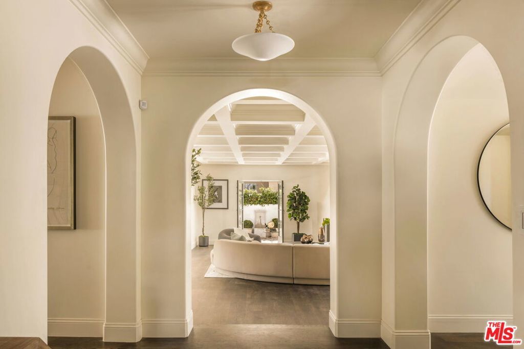 Private, Majestic, gated Spanish Revival compound in the heart of Hancock Park, masterfully reimagined with designer finishes while preserving its timeless architectural integrity.A dramatic entry sets the tone, leading to expansive living and dining rooms where walls of steel-framed French doors open seamlessly to the outdoors, creating the ultimate indoor-outdoor California lifestyle. Designed for both intimate evenings and large-scale entertaining, the home exudes warmth, scale, and effortless elegance throughout.The chef's kitchen is beautifully appointed with top-of-the-line appliances, custom cabinetry, and refined finishes, offering both functionality and elevated design.The residence features five luxurious ensuite bedrooms, including a main-level suite ideal for guests or a private office, and four upstairs retreats that provide exceptional comfort, privacy, and space.The resort-style backyard is a true sanctuarycomplete with a newly built pool, multiple lounge and dining areas, and lush, curated landscaping that creates a serene, boutique hotel-like setting.Enhancing the property's versatility and value, a newly constructed detached guest residence (ADU) with its own address offers a full kitchen and living space on the main level, a one-bedroom suite above, and a stunning rooftop balcony perfect for guests, a private workspace.A rare offering that seamlessly blends historic character, modern luxury, and a true compound lifestyle in one of Los Angeles' most prestigious neighborhoods.
