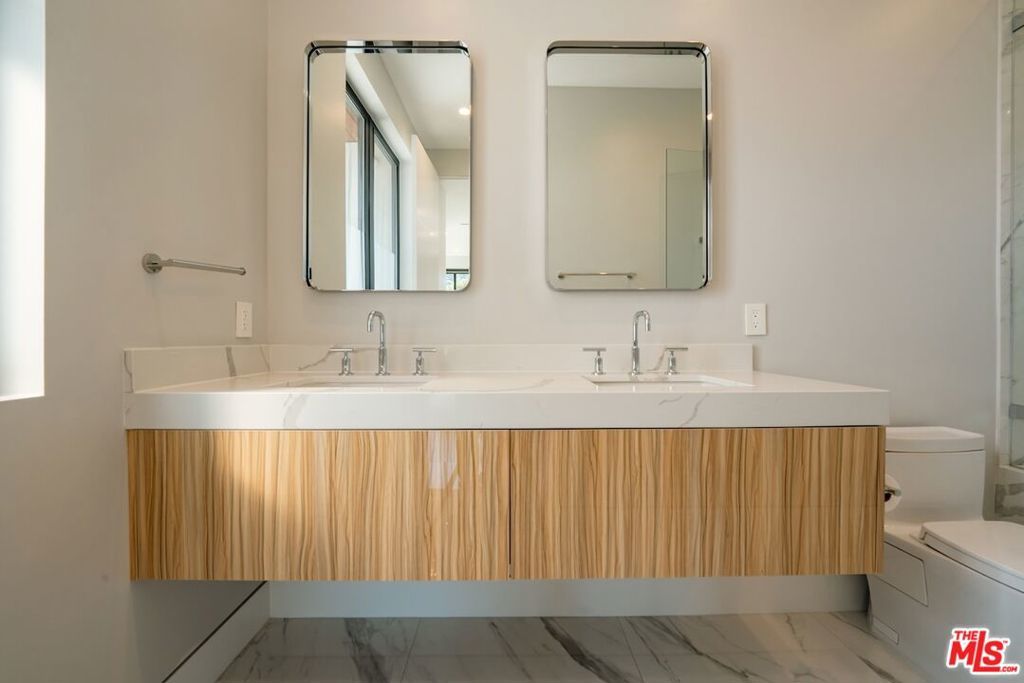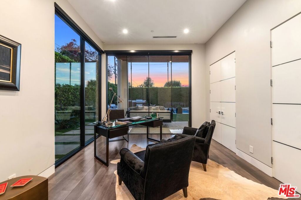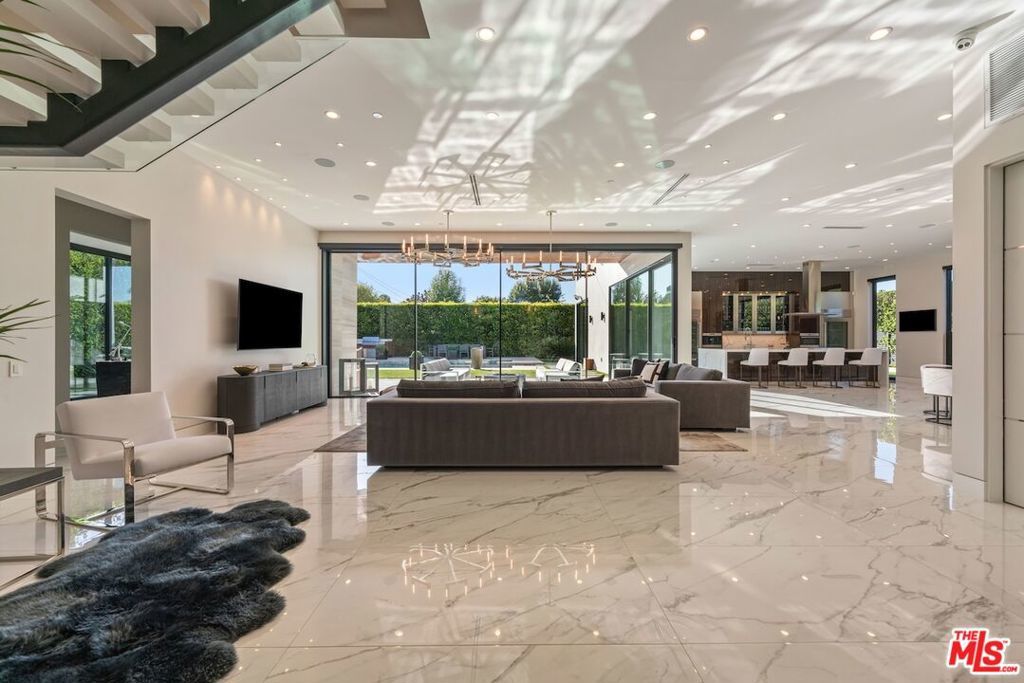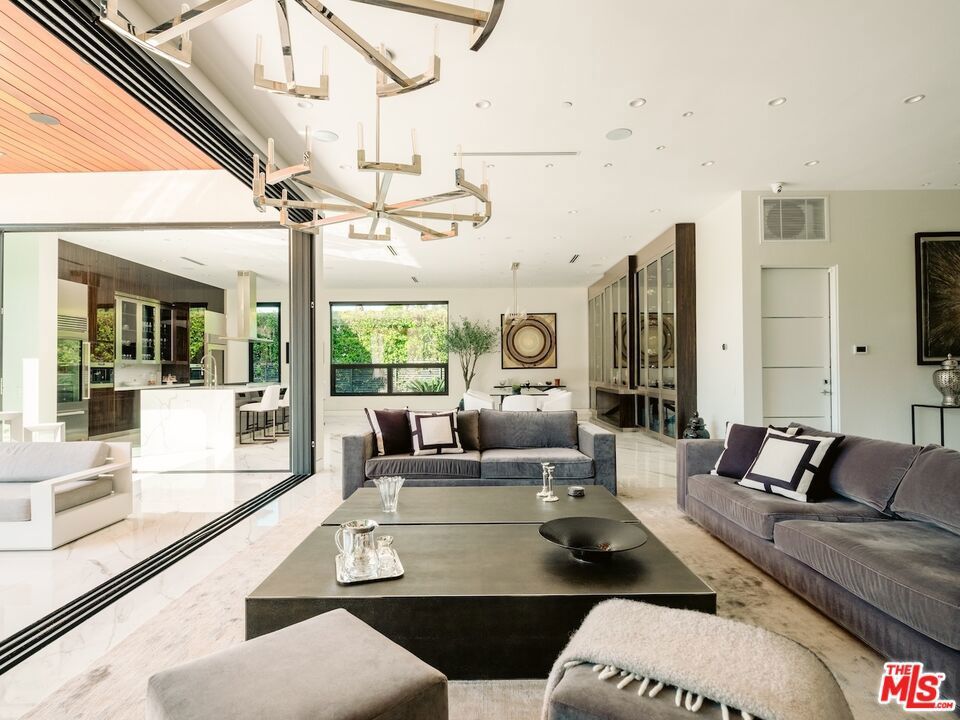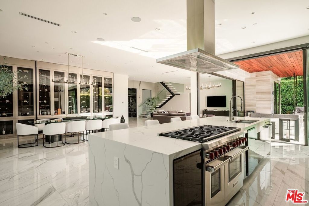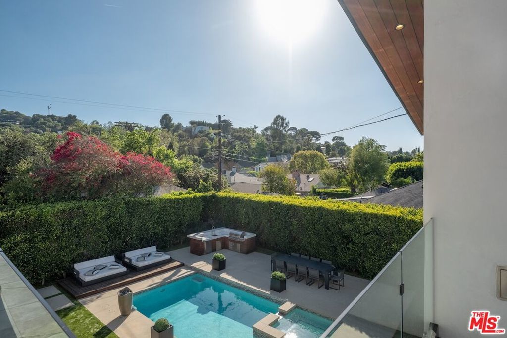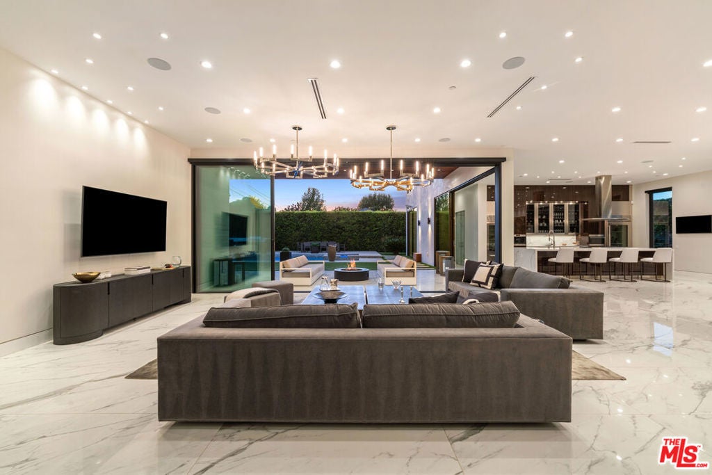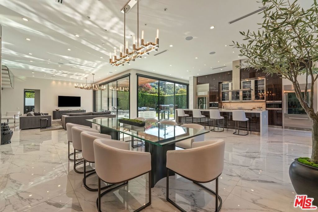 Experience luxury in this meticulously maintained modern estate, ideally positioned in highly sought-after Studio City just south of the boulevard on the corner of Dickens Street. Sitting on a flat corner lot, this residence showcases exceptional craftsmanship and design, blending sophistication, comfort, and contemporary elegance in perfect harmony.Featuring 6 bedrooms and 7 baths, this stunning home offers every amenity imaginable, including a private theater, a dedicated pool room, and seamless indoor-outdoor living spaces ideal for entertaining. Expansive floor to ceiling sliding doors flood the home with natural light, highlighting the Calacatta marble flooring that exudes timeless style.The chef's kitchen is a true centerpiece equipped with Wolf appliances, including a built-in espresso machine, and two Sub-Zero see-through glass-door refrigerators that combine luxury with functionality. A waterfall-edge kitchen island/breakfast bar and floor to ceiling wine storage elegantly complement the connected dining area, making it both beautiful and practical for culinary enthusiasts.The oversized owner's suite offers a tranquil retreat with a spa-inspired bathroom featuring designer finishes, a walk-in shower, soaking tub, dual vanities, and access to an expansive 700+ sq. ft. private deck perfect for * a relaxing morning or evening sunsets.The back bedroom (*a large, private bedroom) and bathroom provide flexible space that can serve as nanny's quarters, housekeeper accommodations, or a private guest suite, offering versatility for any lifestyle.Outside, the resort style backyard impresses with lush landscaping and privacy hedging, a covered patio with outdoor fireplace, sparkling pool and spa, wooden sun deck, and a built-in outdoor kitchen and BBQ area designed for effortless entertaining. A privately gated circular driveway and two-car garage complete this exceptional home.This residence presents a rare opportunity to own a modern architectural gem capturing the essence of Southern California luxury living in one of Los Angeles' most desirable neighborhoods.